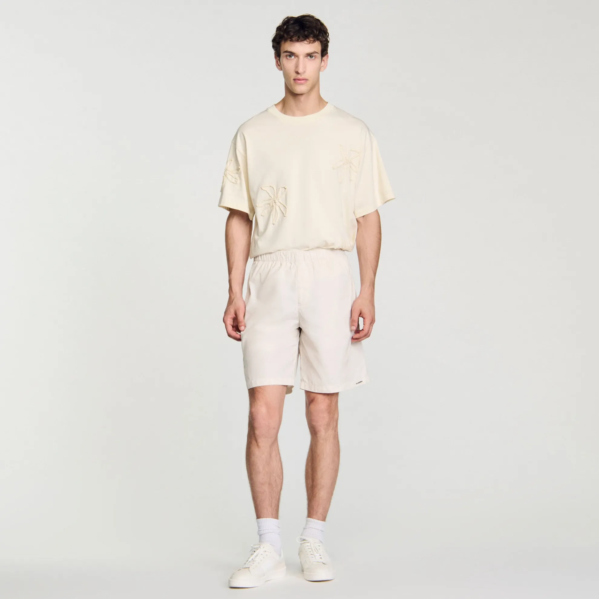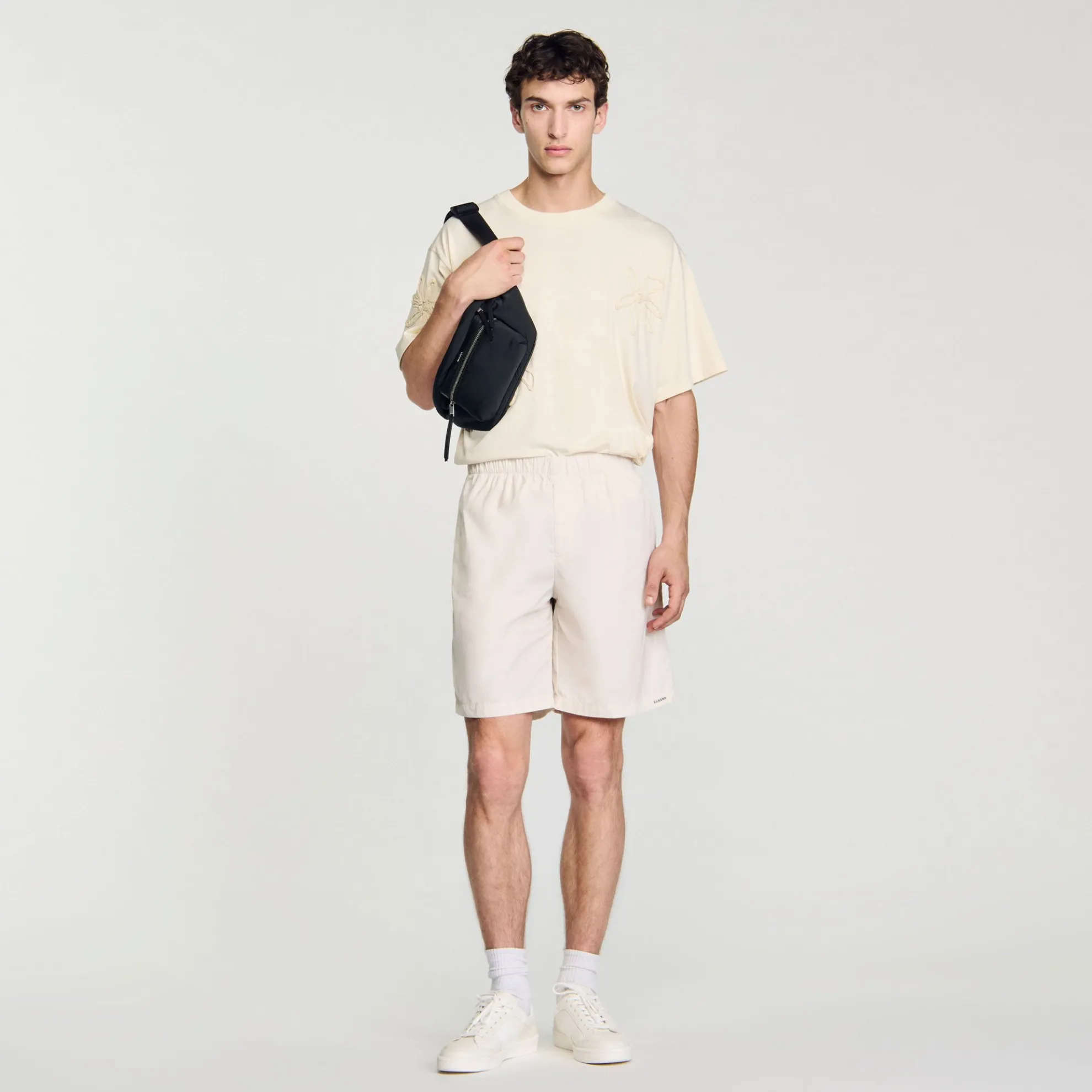 Bermuda short van technische stof met elastische tailleband, steekzakken en een metalen SANDRO-logo.