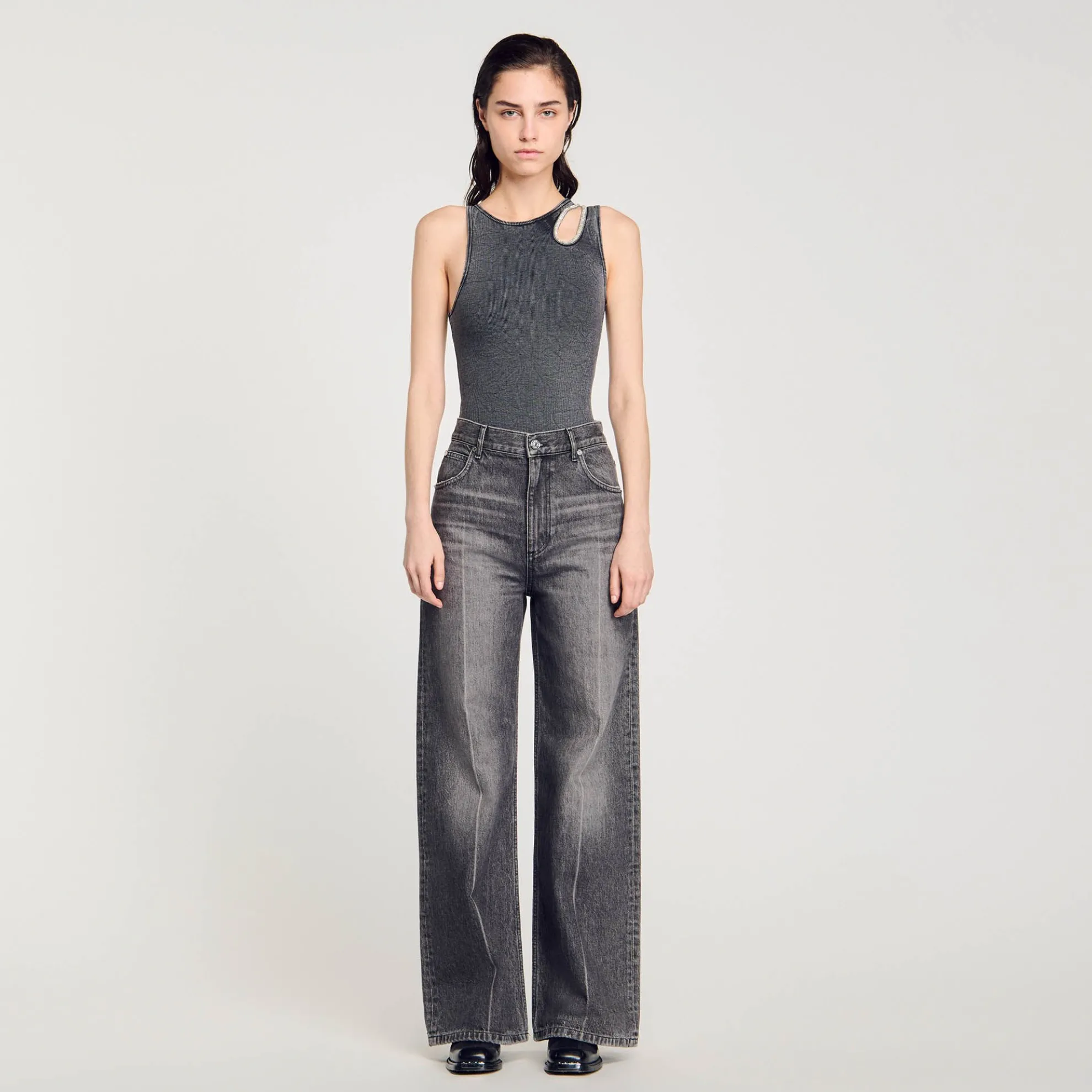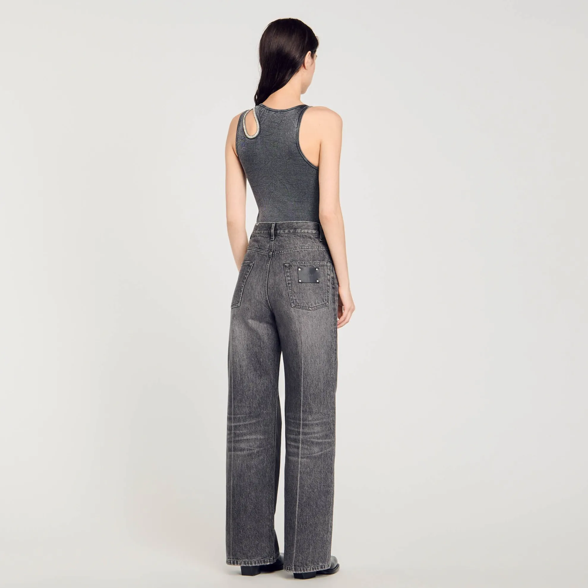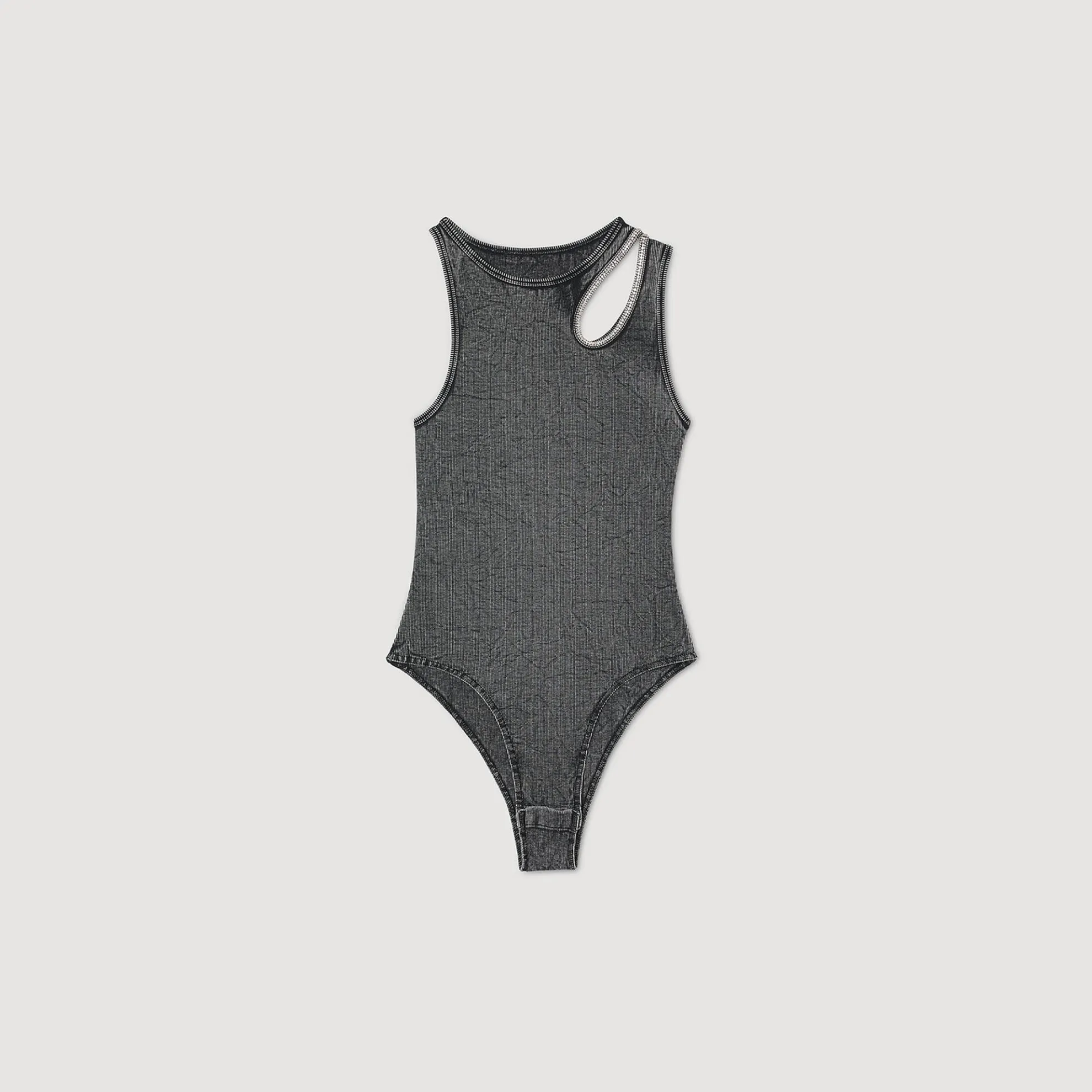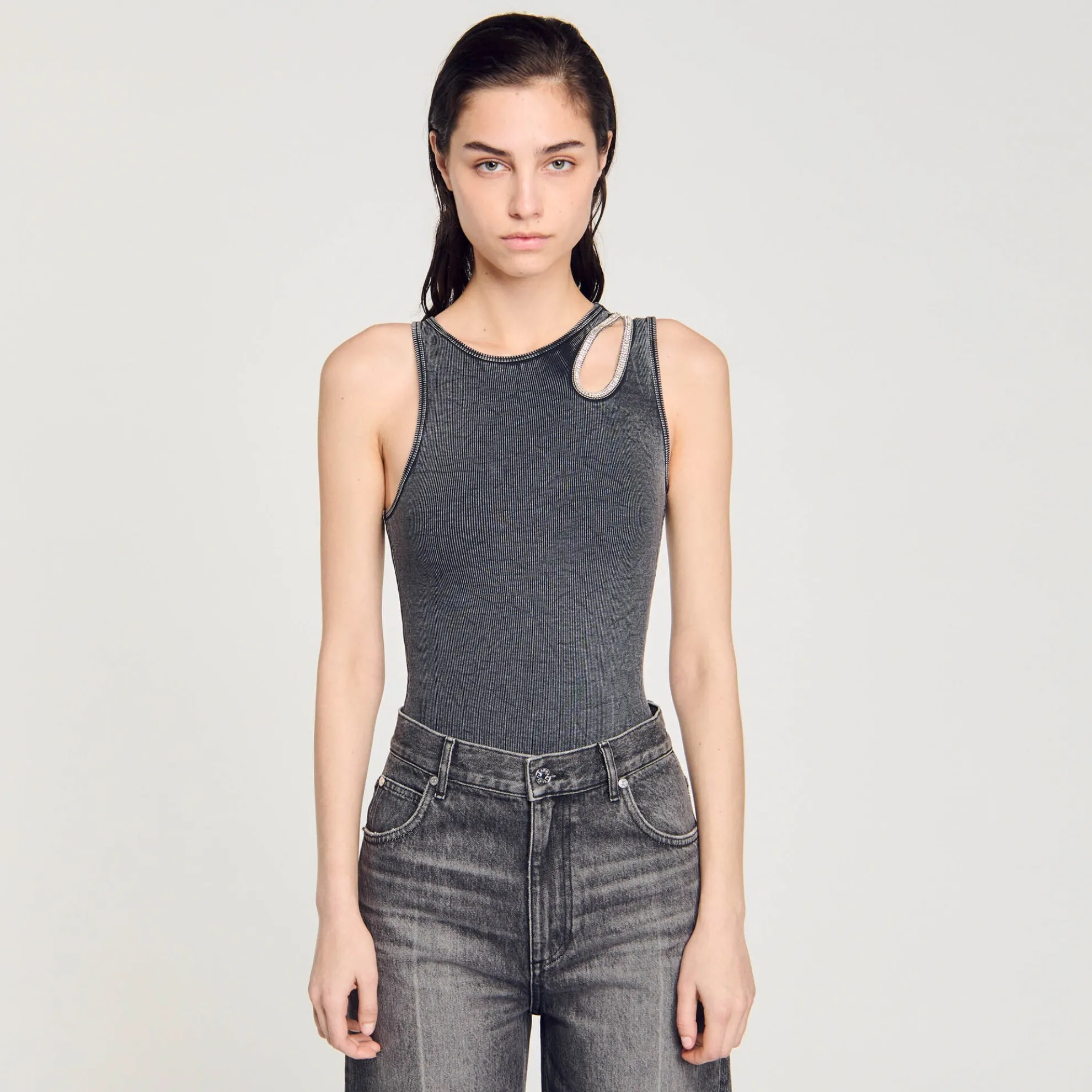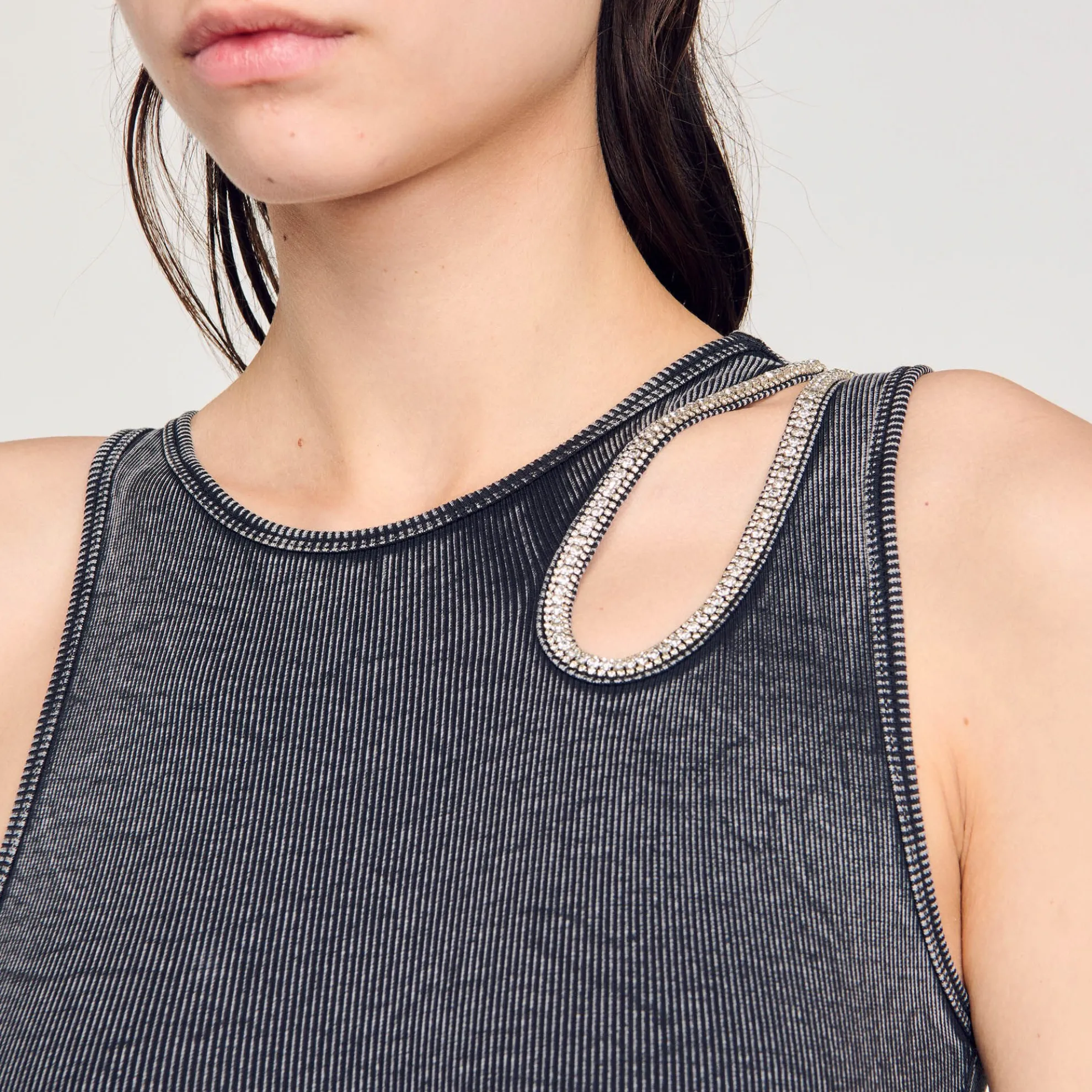 Mouwloze geribde body van washed jersey met stras in druppelvorm op de schouder.