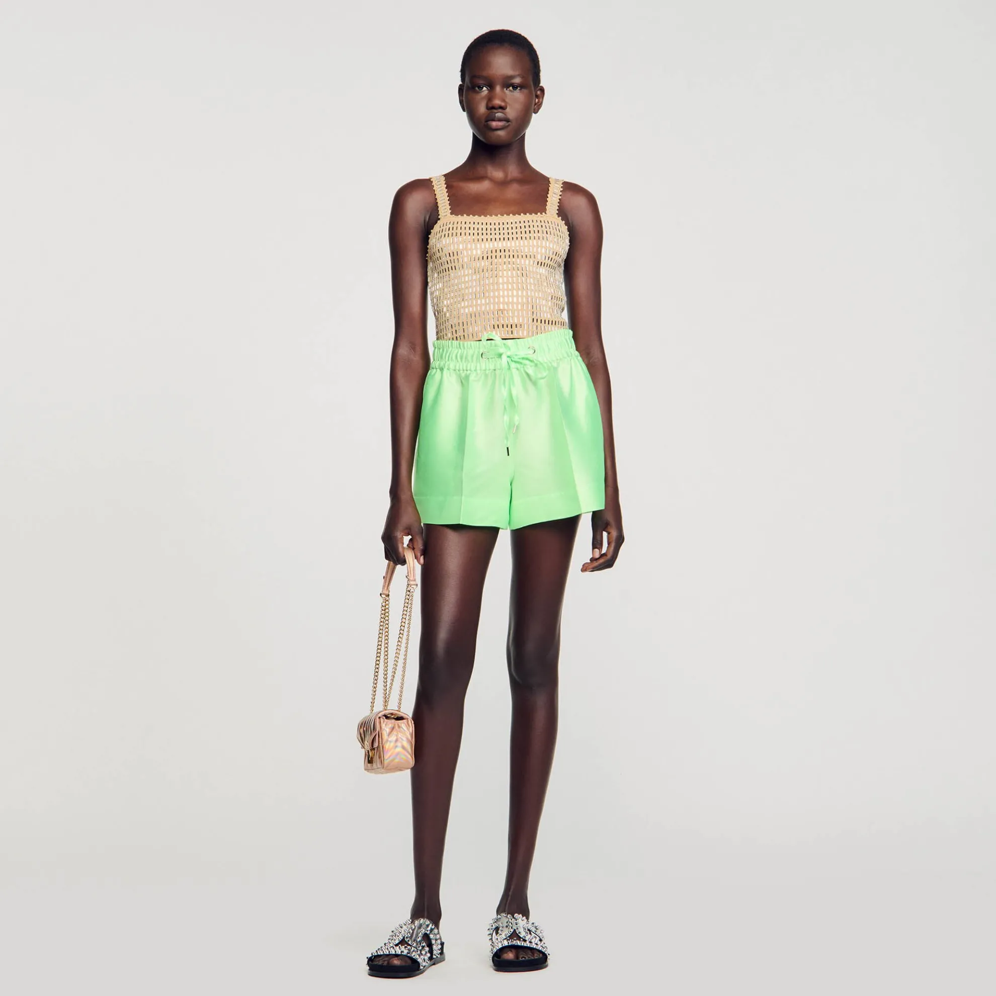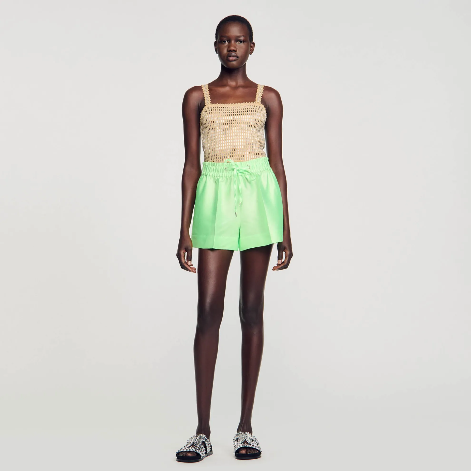 Korte gebreide brassière met all-over stras, een rechte halslijn en schouderbandjes.
