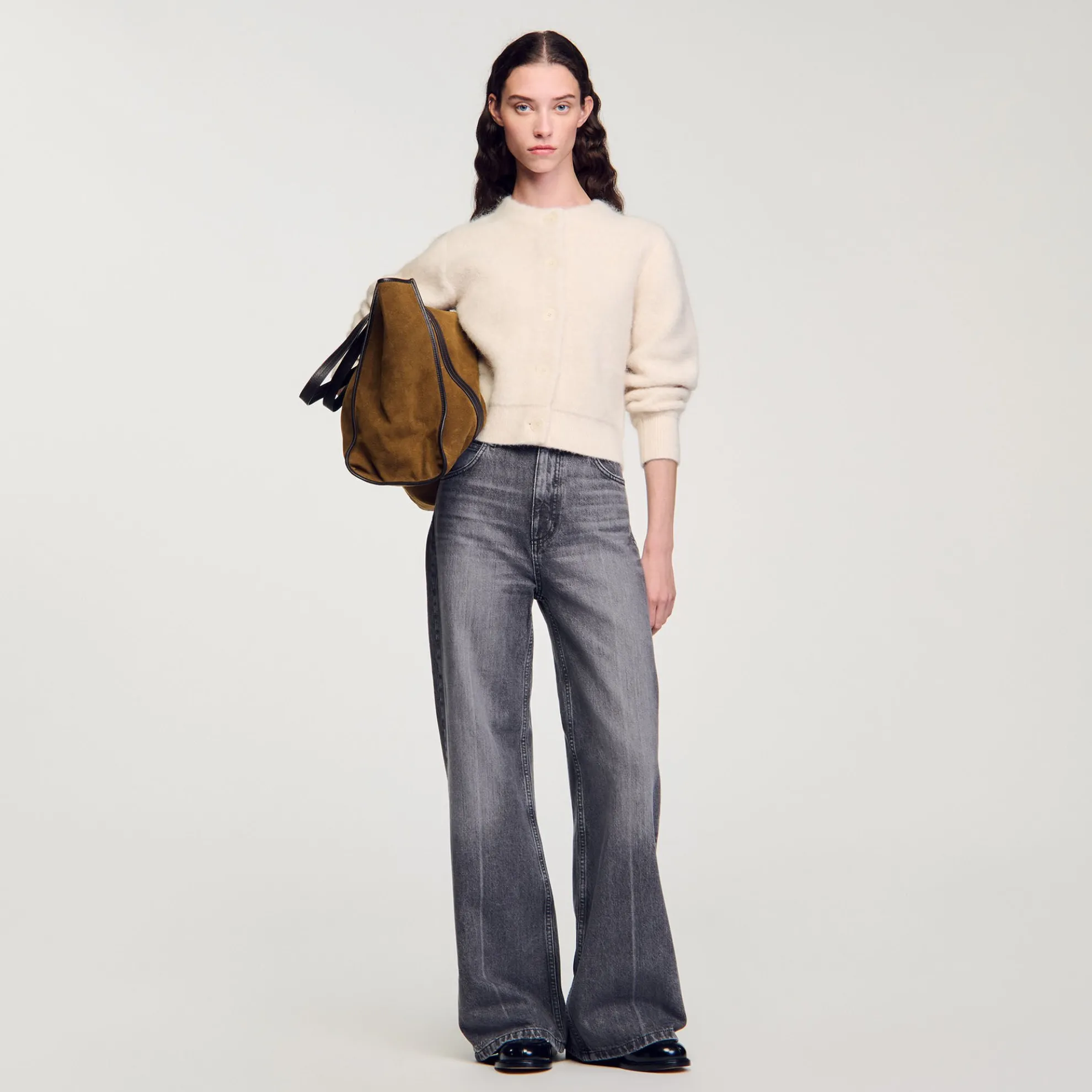 Donzig gebreid kort cardigan vest met ronde hals, lange mouwen, knoopsluiting en geribde boorden.