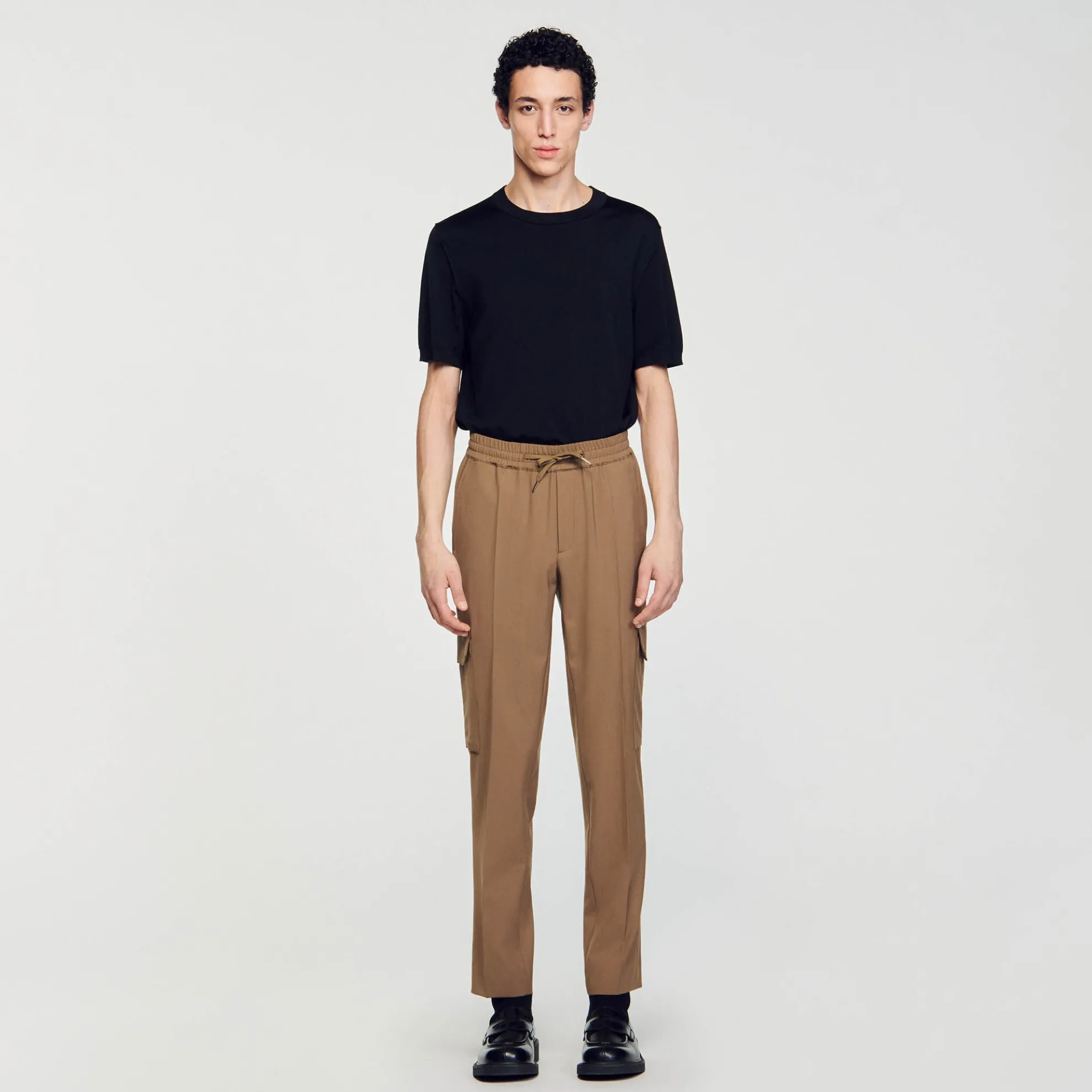 Cargobroek met elastische tailleband, twee grote zijzakken en een verstelkoord.