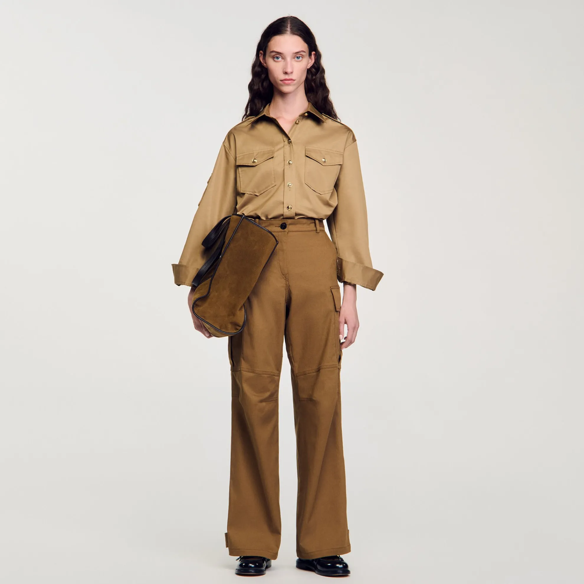 Rechte pantalon met cargozakken aan de zijkant en riemlussen.