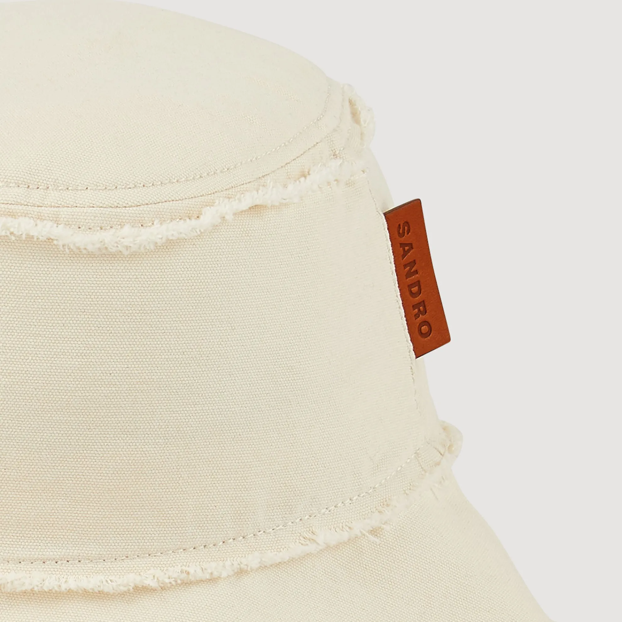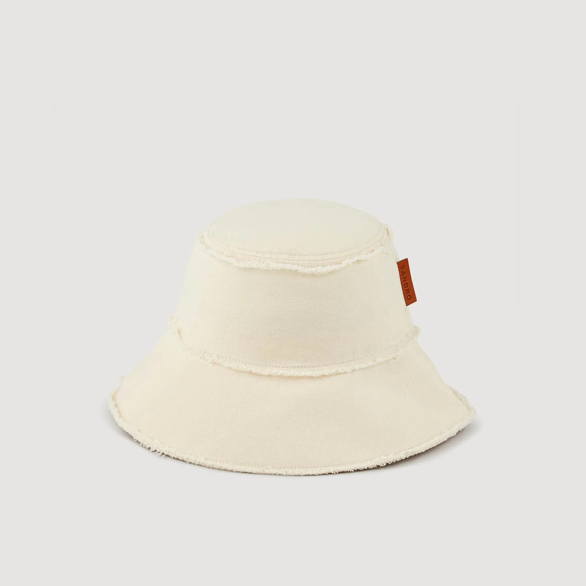 Hoed van katoenen canvas met een verlengde klep met gerafelde randen en een leren SANDRO patch.