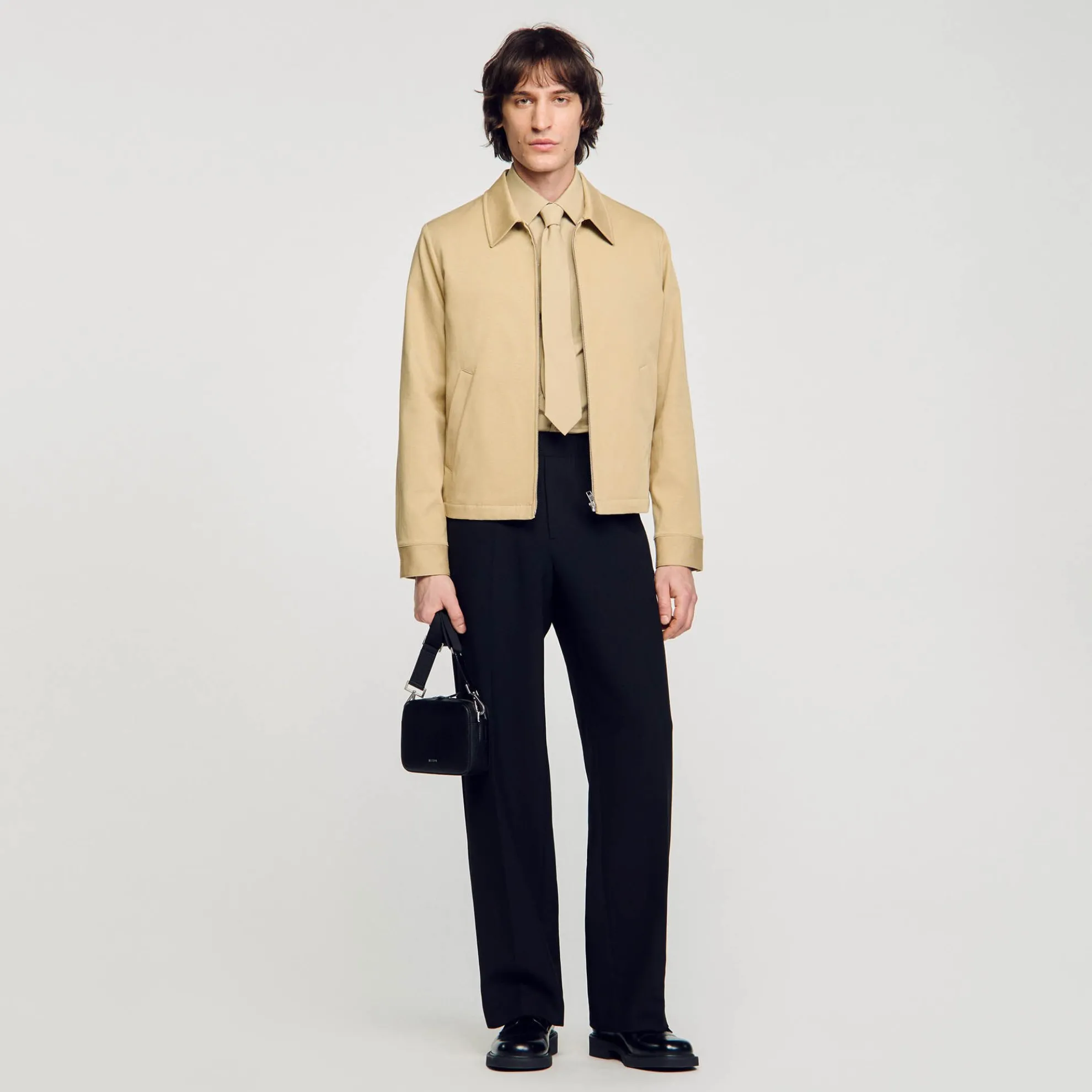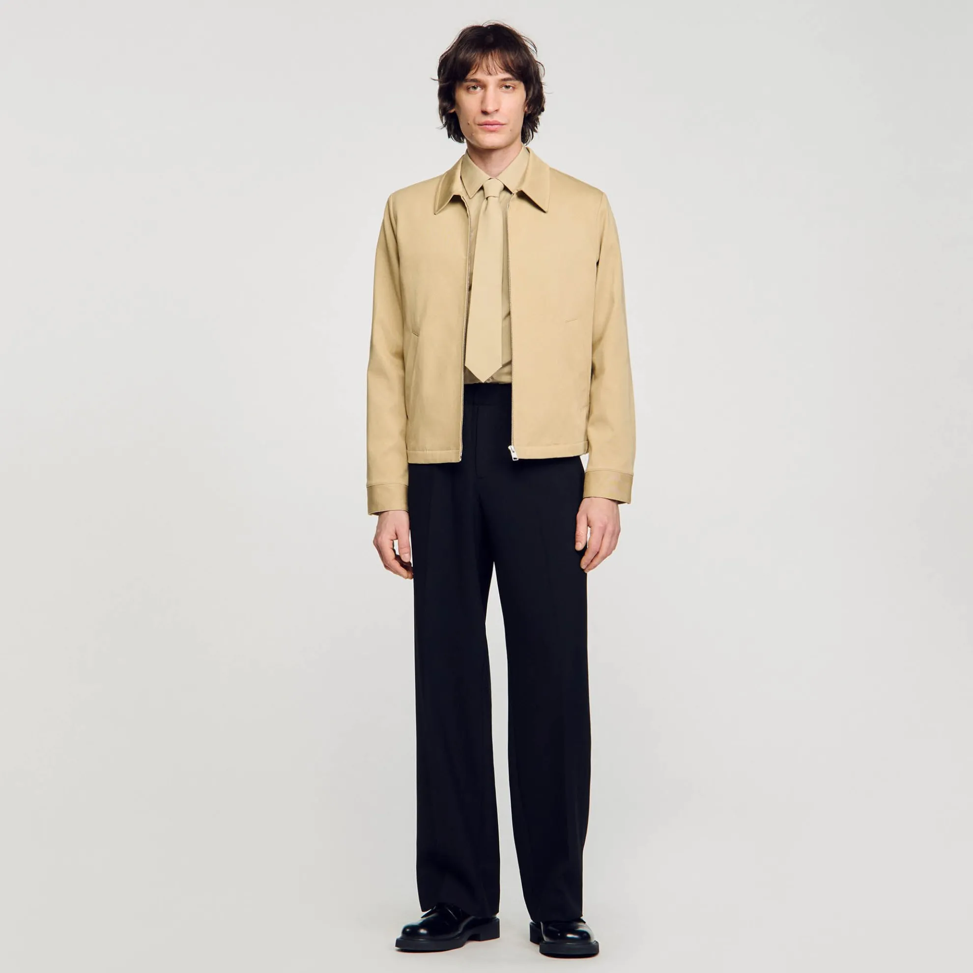 Katoenen jack met een kraag, een ritssluiting, lange mouwen met manchetten met knopen en paspelzakken.