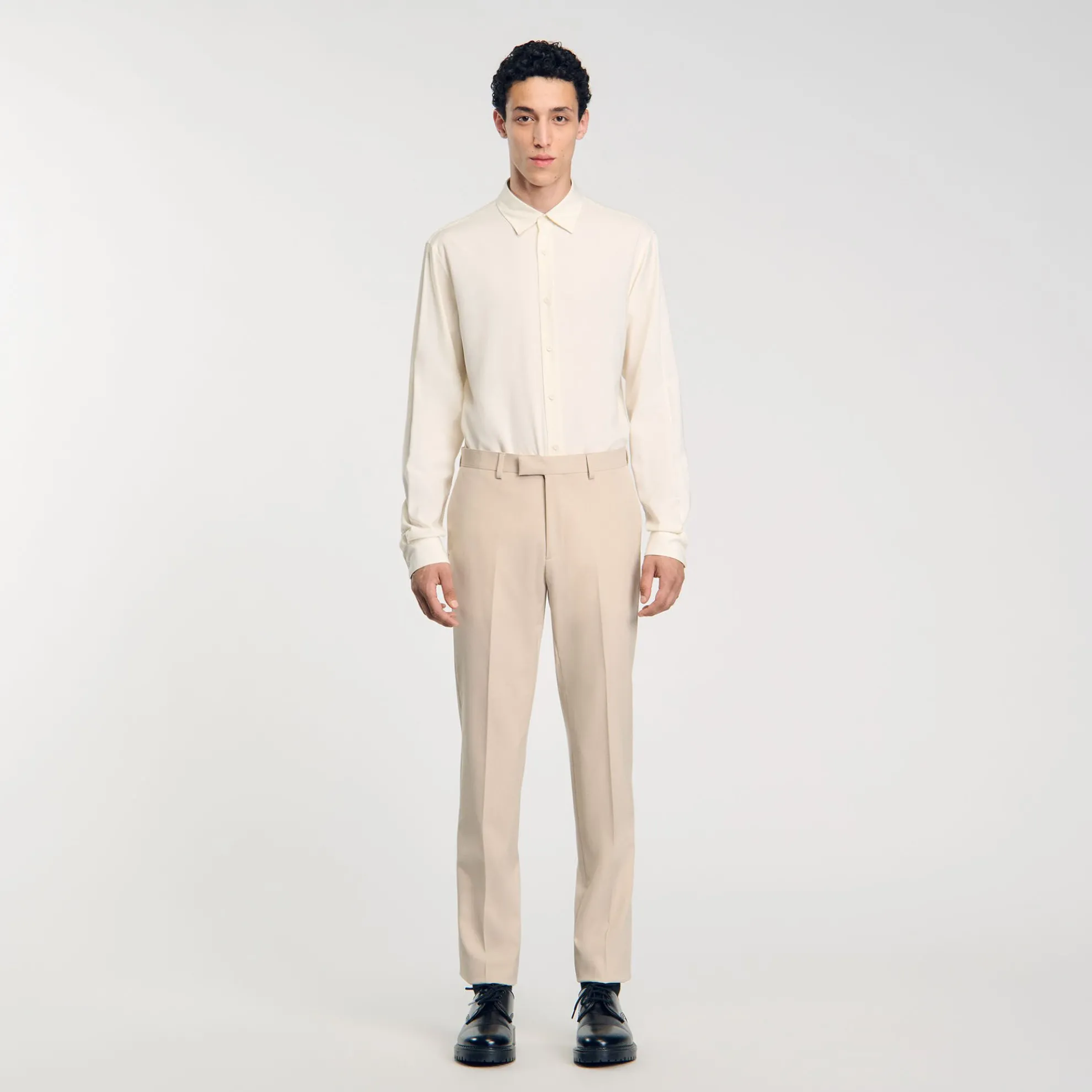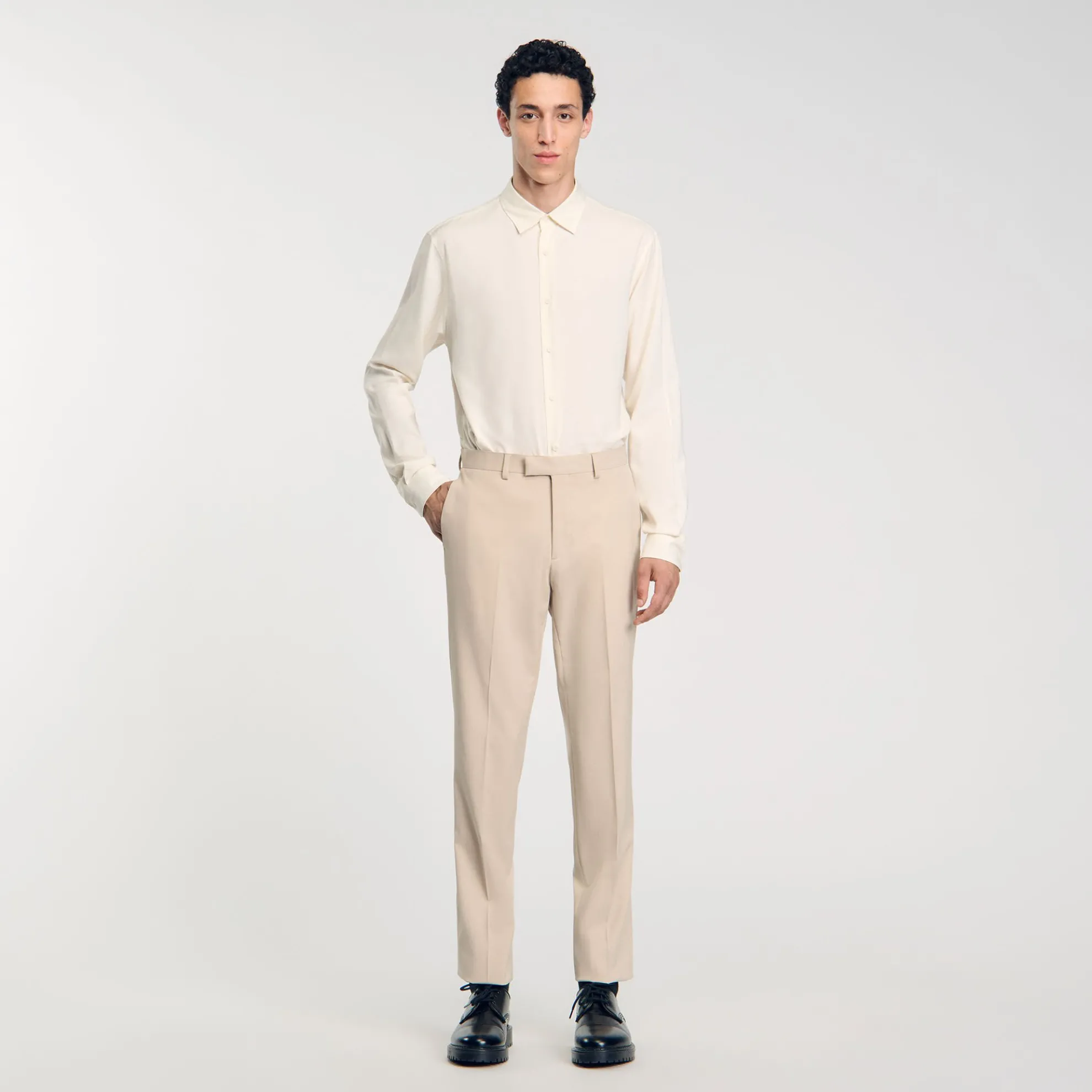 Kostuumbroek met klassieke pasvorm, riemlussen, zakken en rits met haaksluiting.