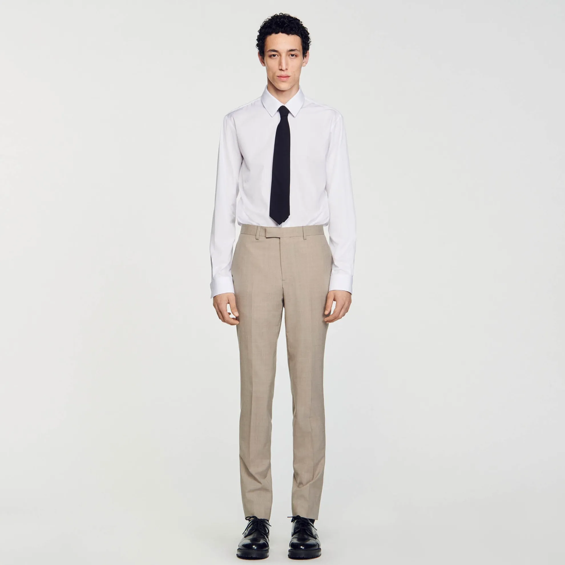 Wollen kostuumbroek met elastische tailleband met verstelkoord.