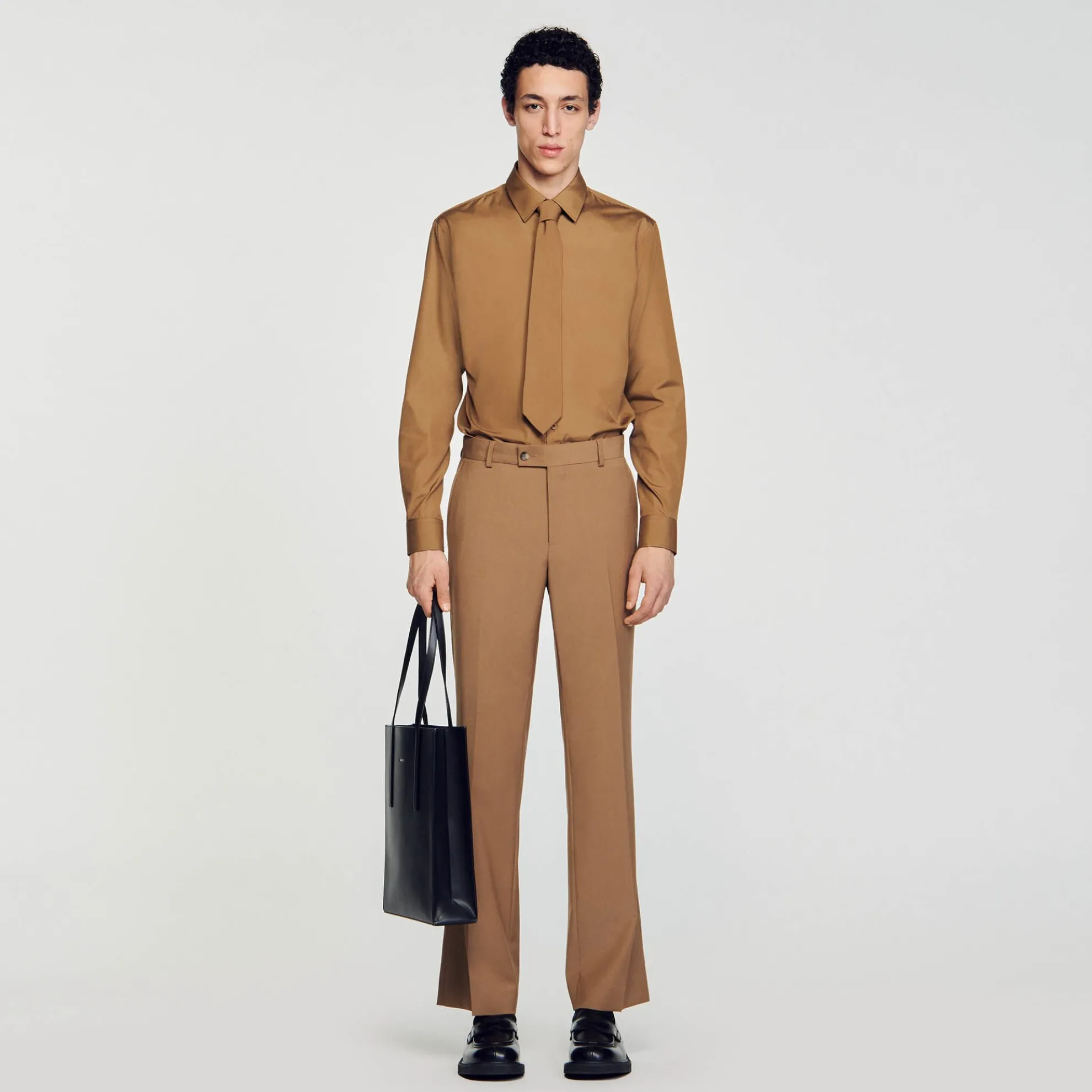 Ruimvallende kostuumbroek met hoge taille en voor- en achterzakken.
