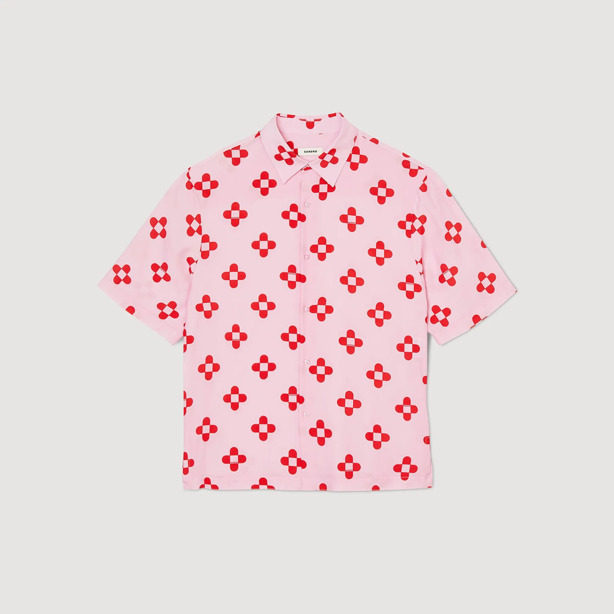 Overhemd met korte mouwen, knoopsluiting en contrasterende Cross Flower print.
