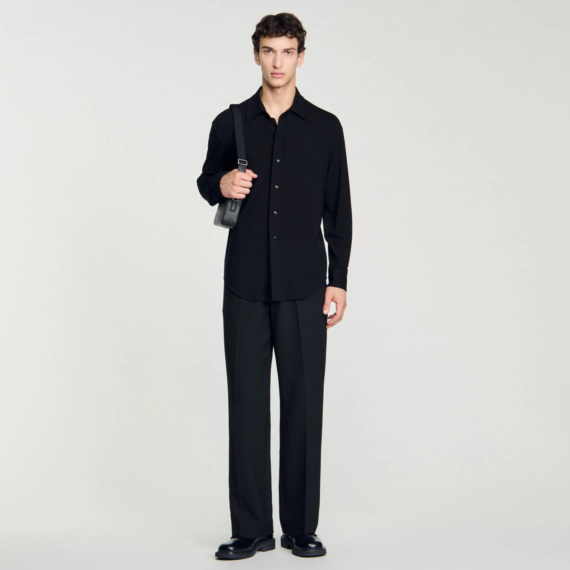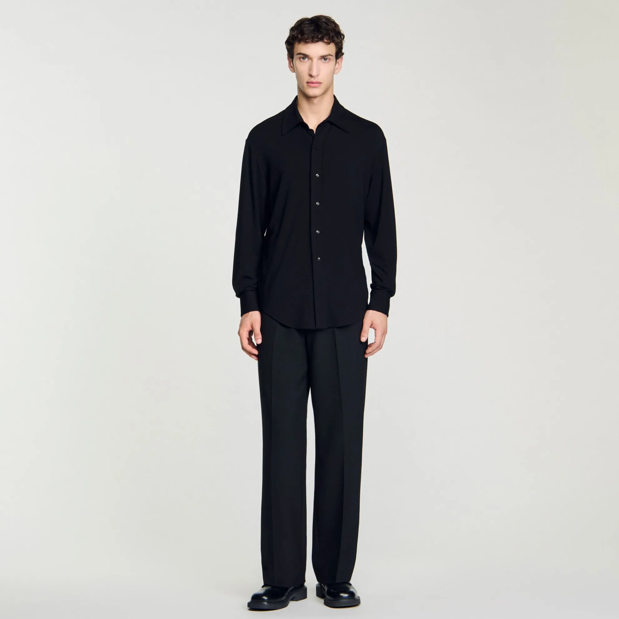 Soepel overhemd van jersey stof met lange mouwen met knoopmanchetten, klassieke overhemdkraag en knoopsluiting.