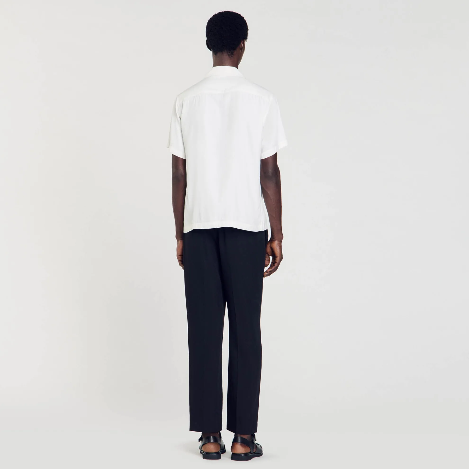Overhemd met korte mouwen, een haaienkraag en een knoopsluiting.