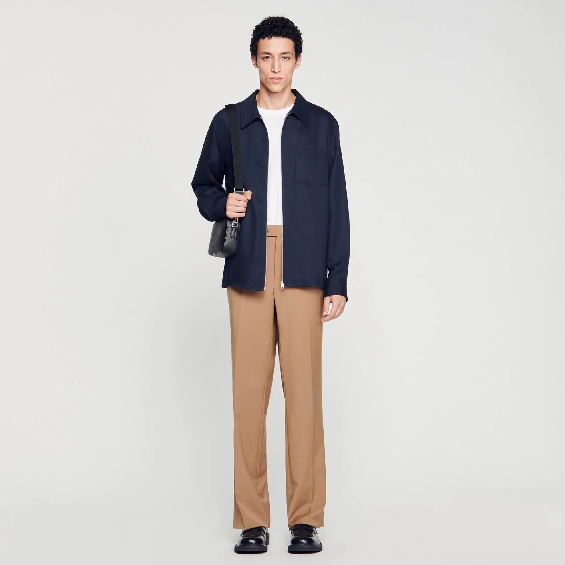 Soepelvallend overhemd met lange mouwen, klassieke kraag en ritssluiting.