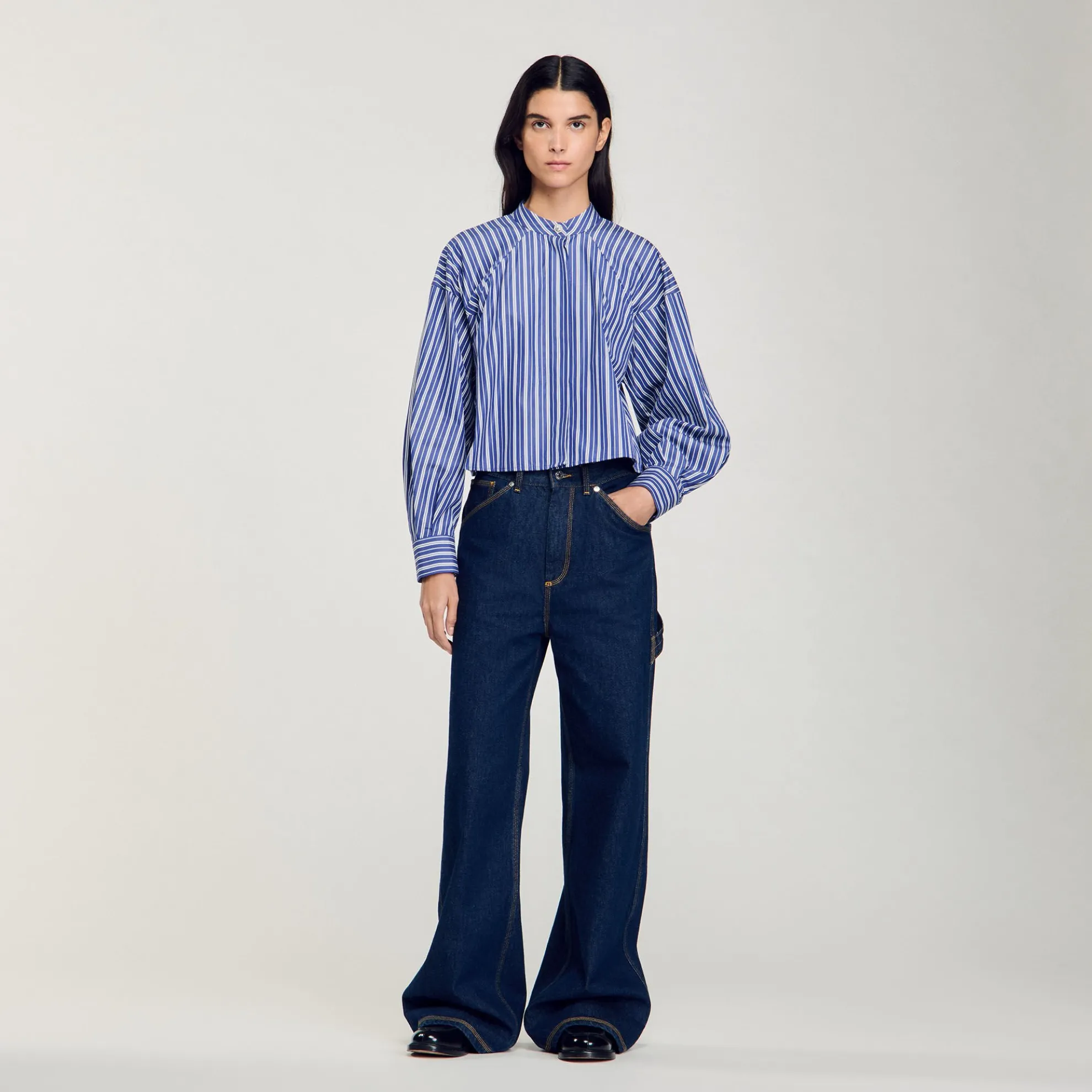 - Kort gestreept overhemd Sandro Dames