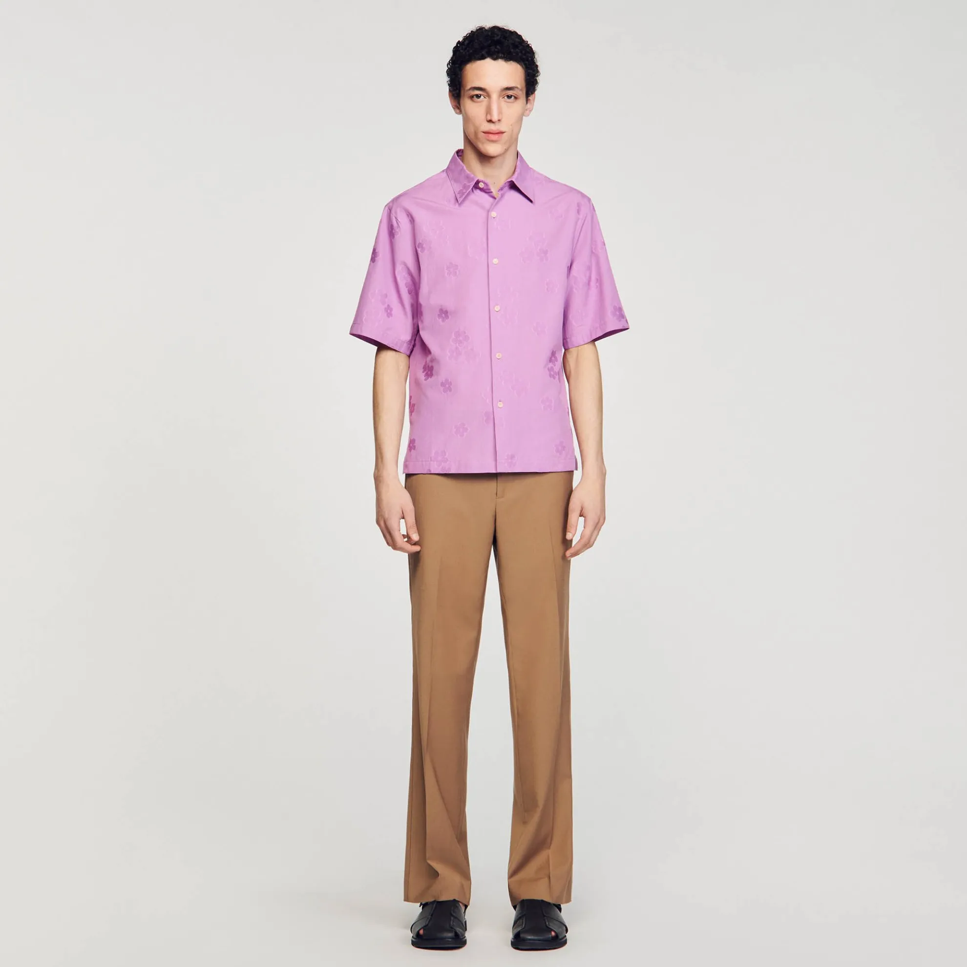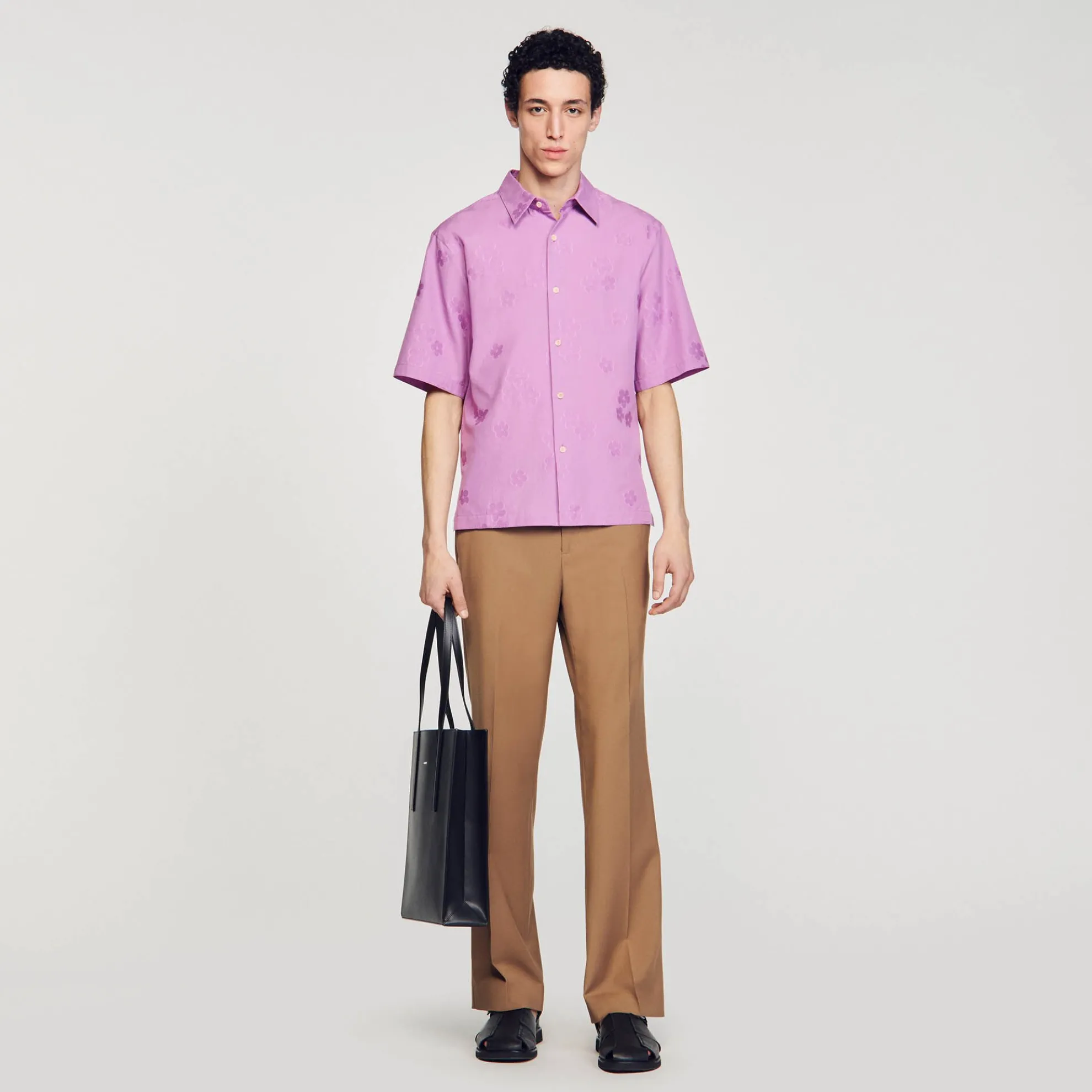 Oversized katoenen overhemd met jacquard met bloemmotief, overhemdkraag, korte mouwen en knoopsluiting.