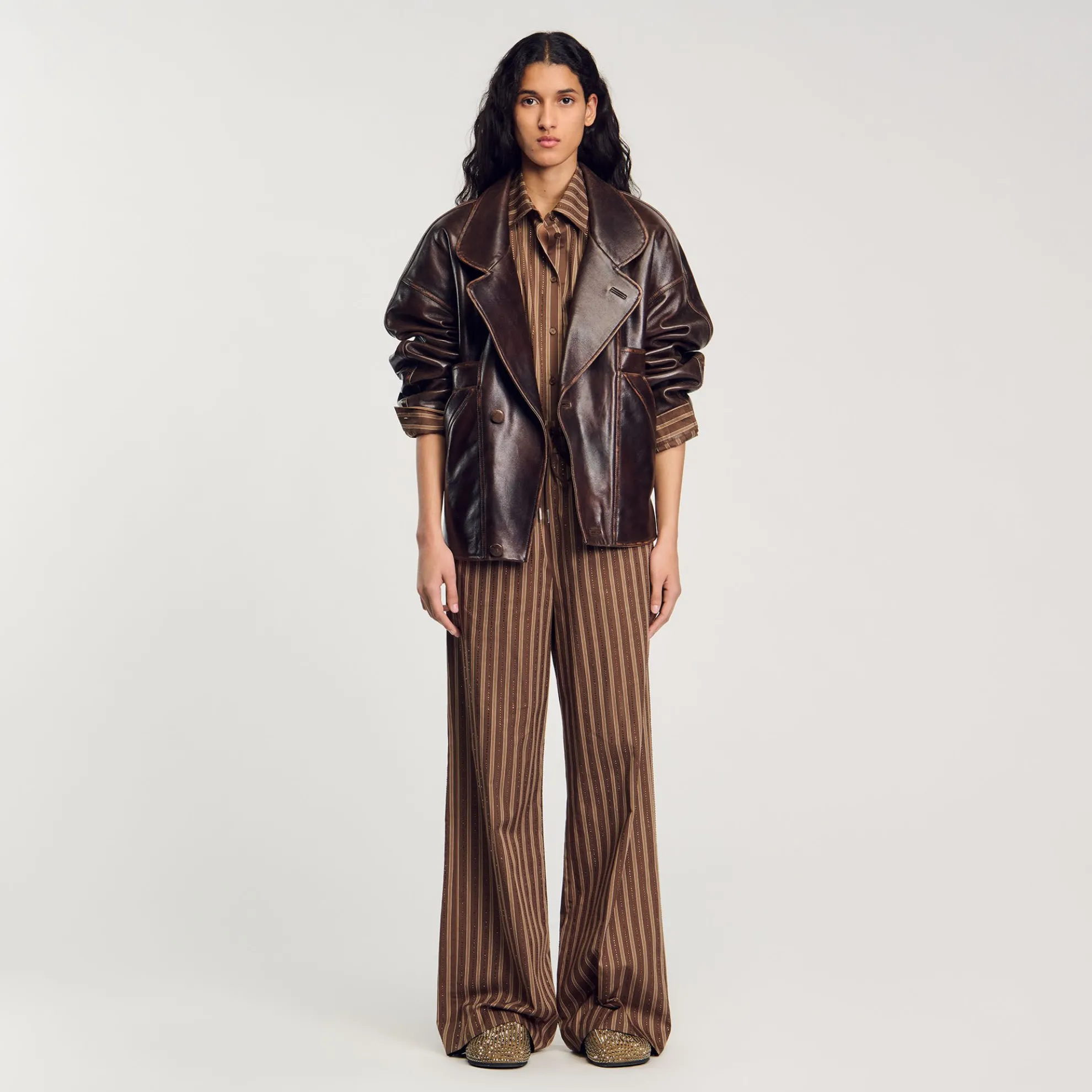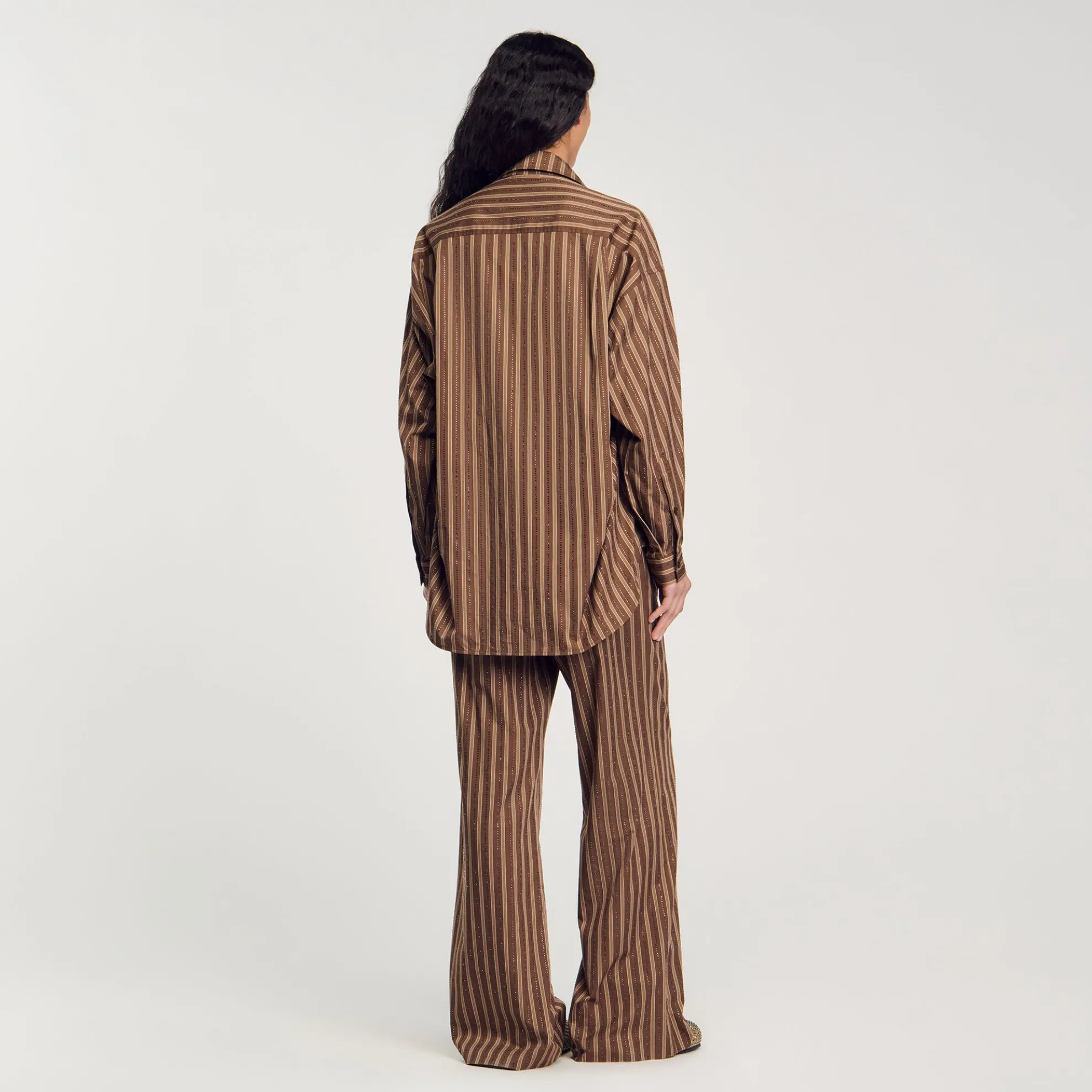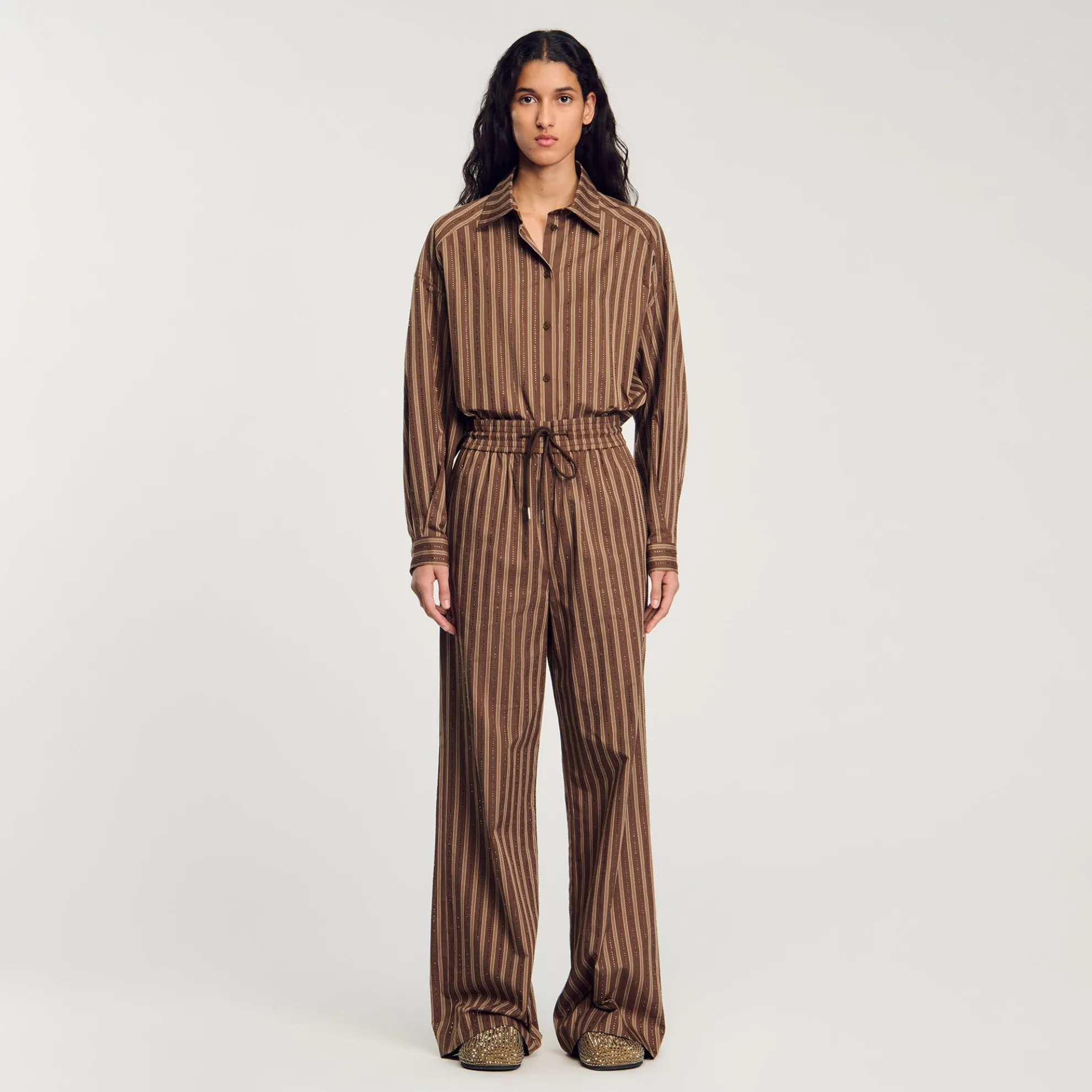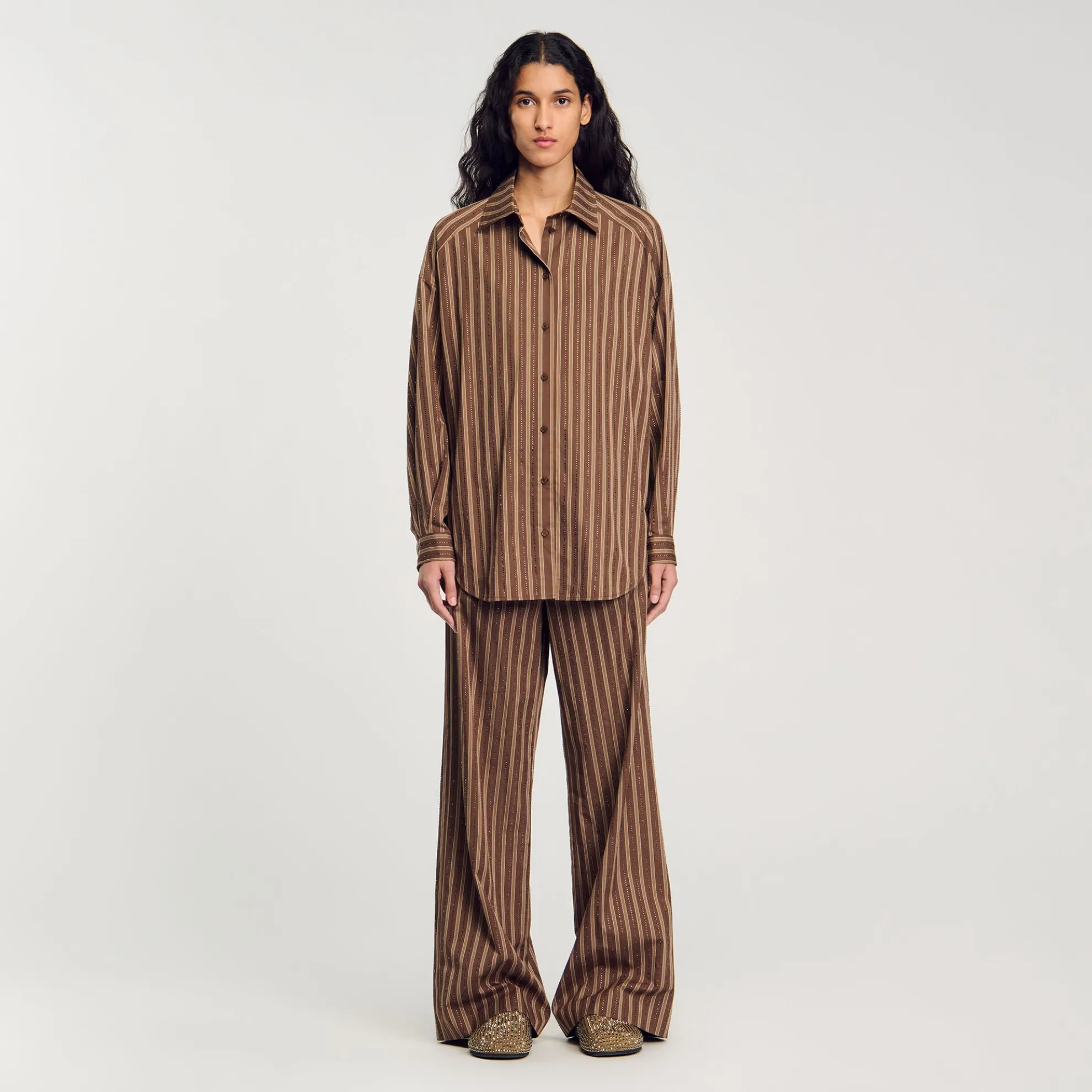 Oversized overhemd met verticale strepen volledig versierd met stras, lange mouwen, een knoopsluiting en een lange afgeronde onderkant.