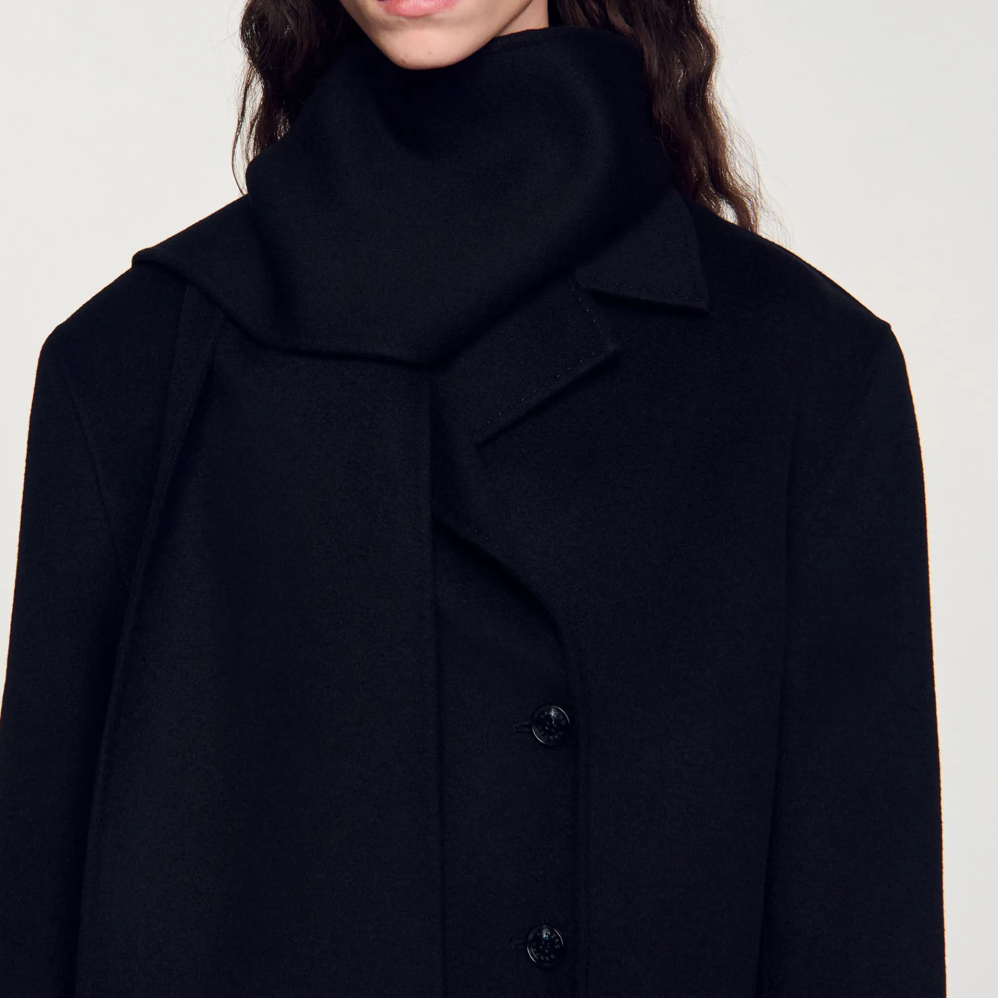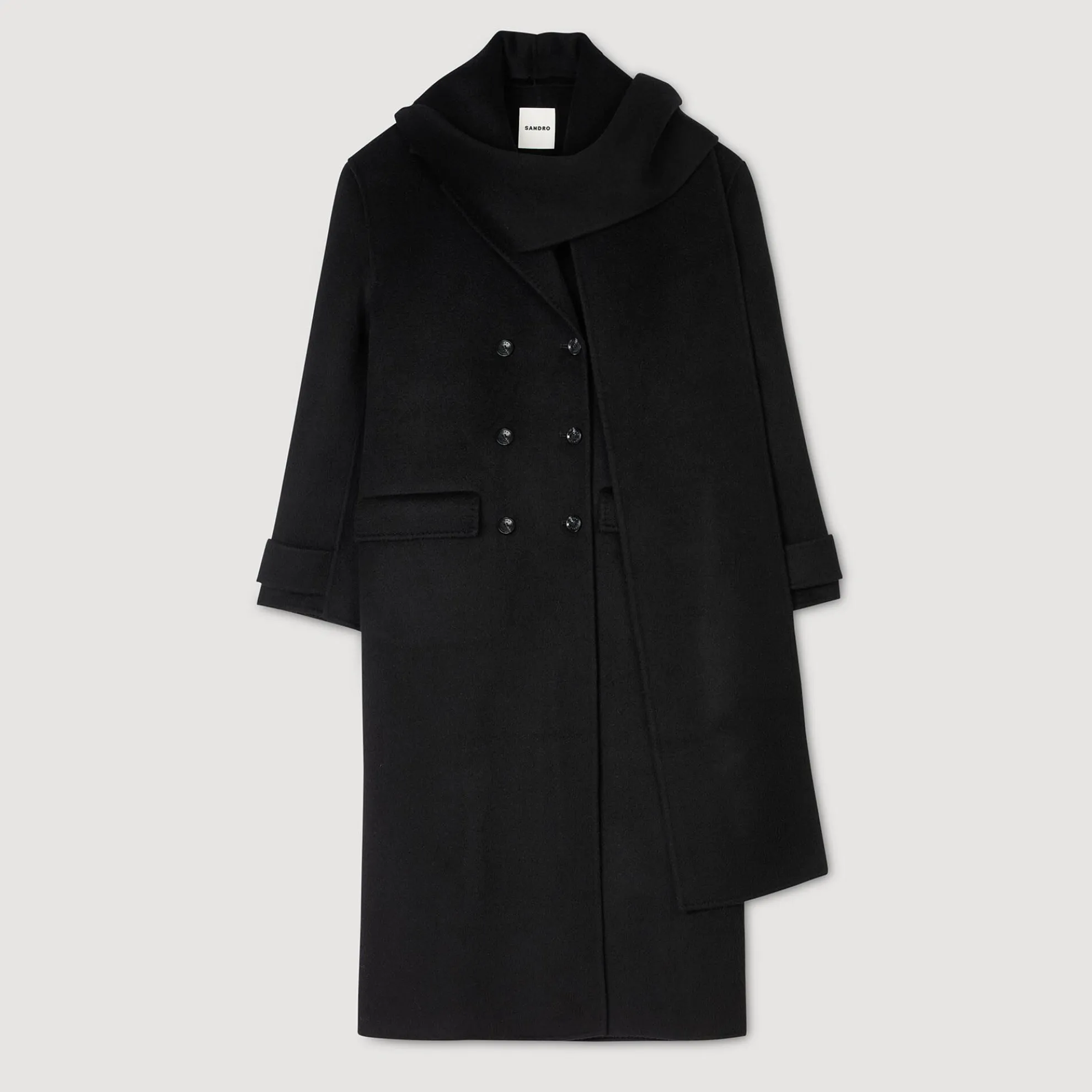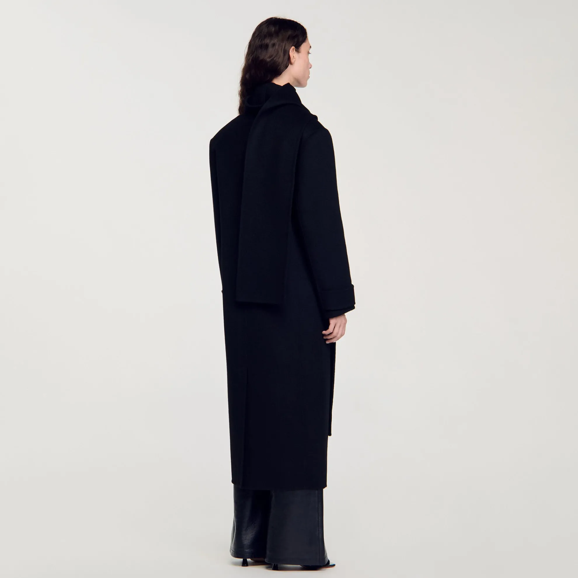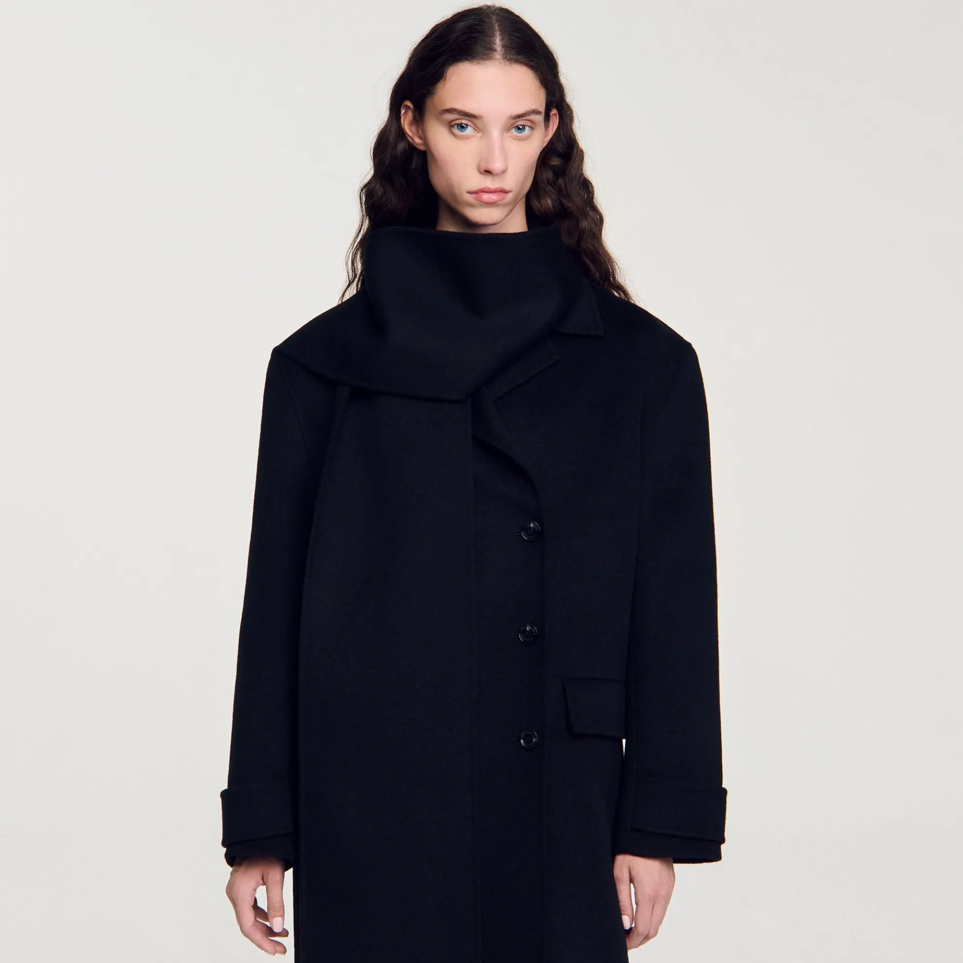 Dubbelzijdige oversized wollen jas met een geïntegreerde sjaal, gekruiste knopen, klepzakken op de heupen, een martingale en een split achter.