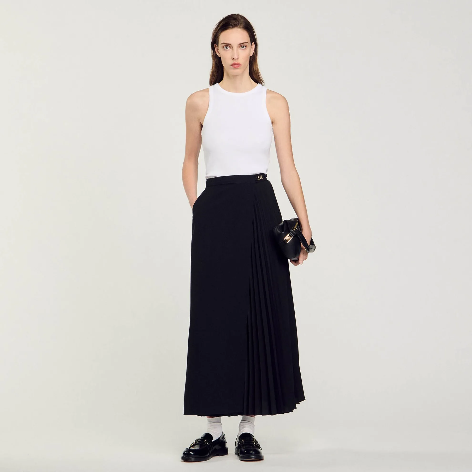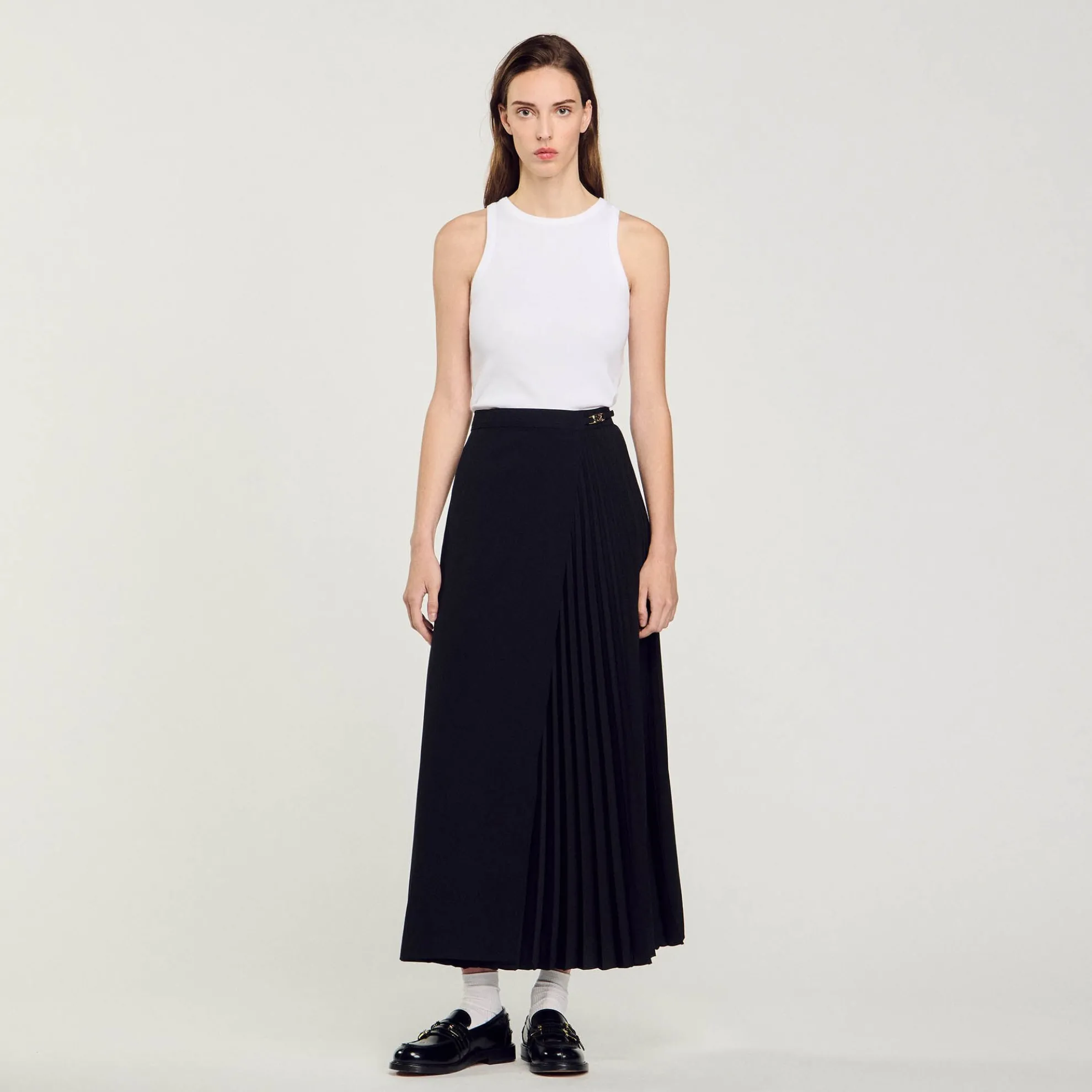 Lange gewikkelde plissérok met mooie schakels aan de zijkant van de tailleband.