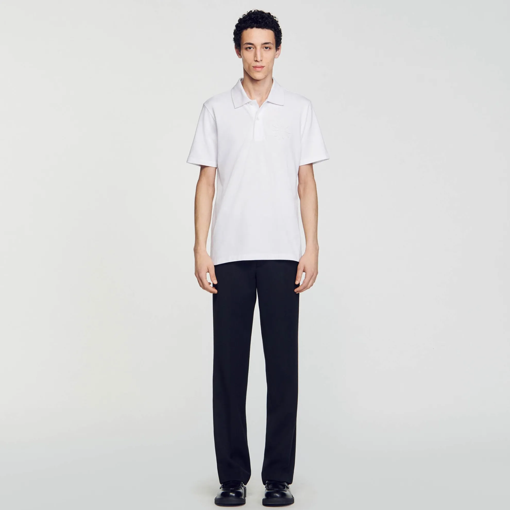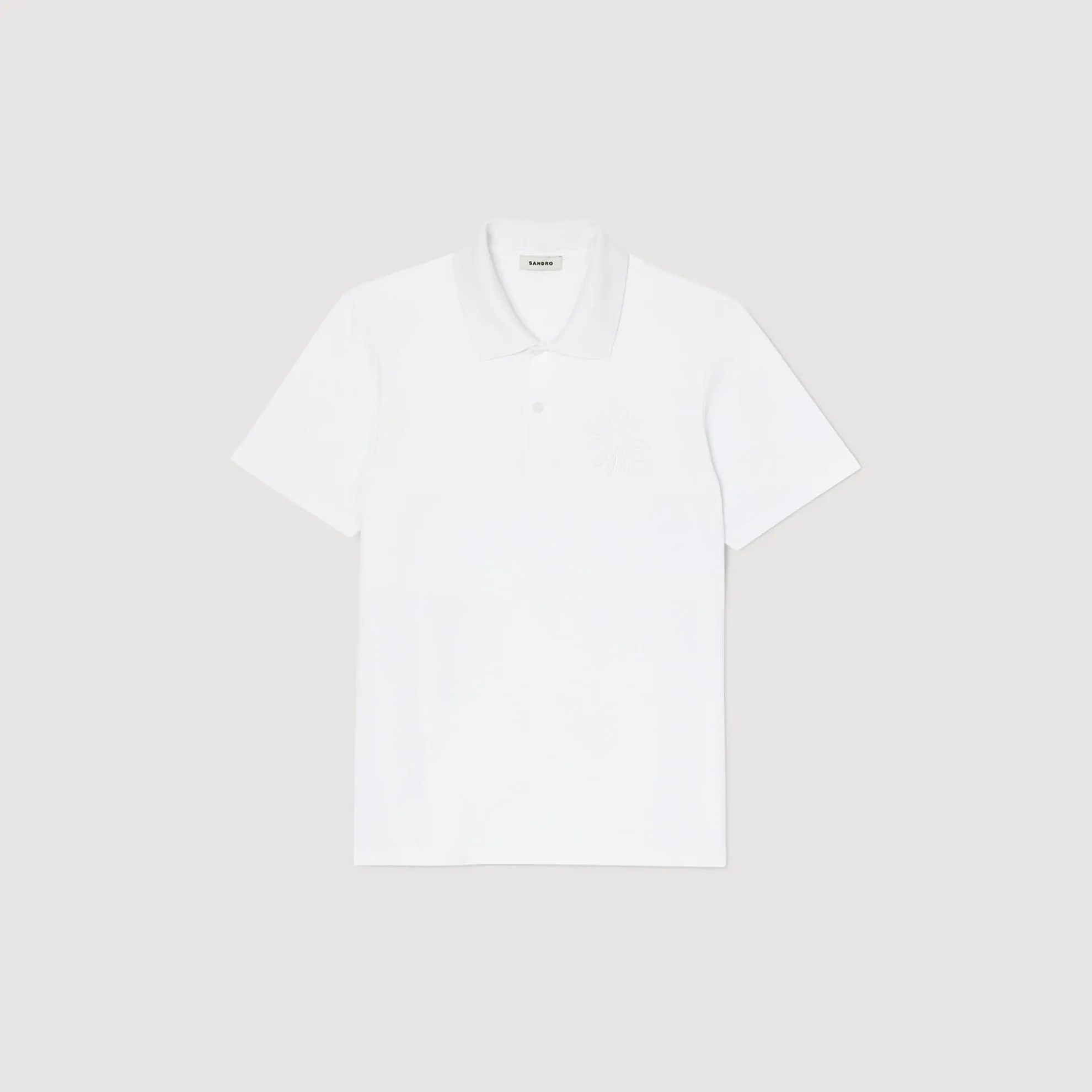 Poloshirt van piqué katoen met button-down kraag, korte mouwen, zijsplitten en bloem in reliëf op de borst.