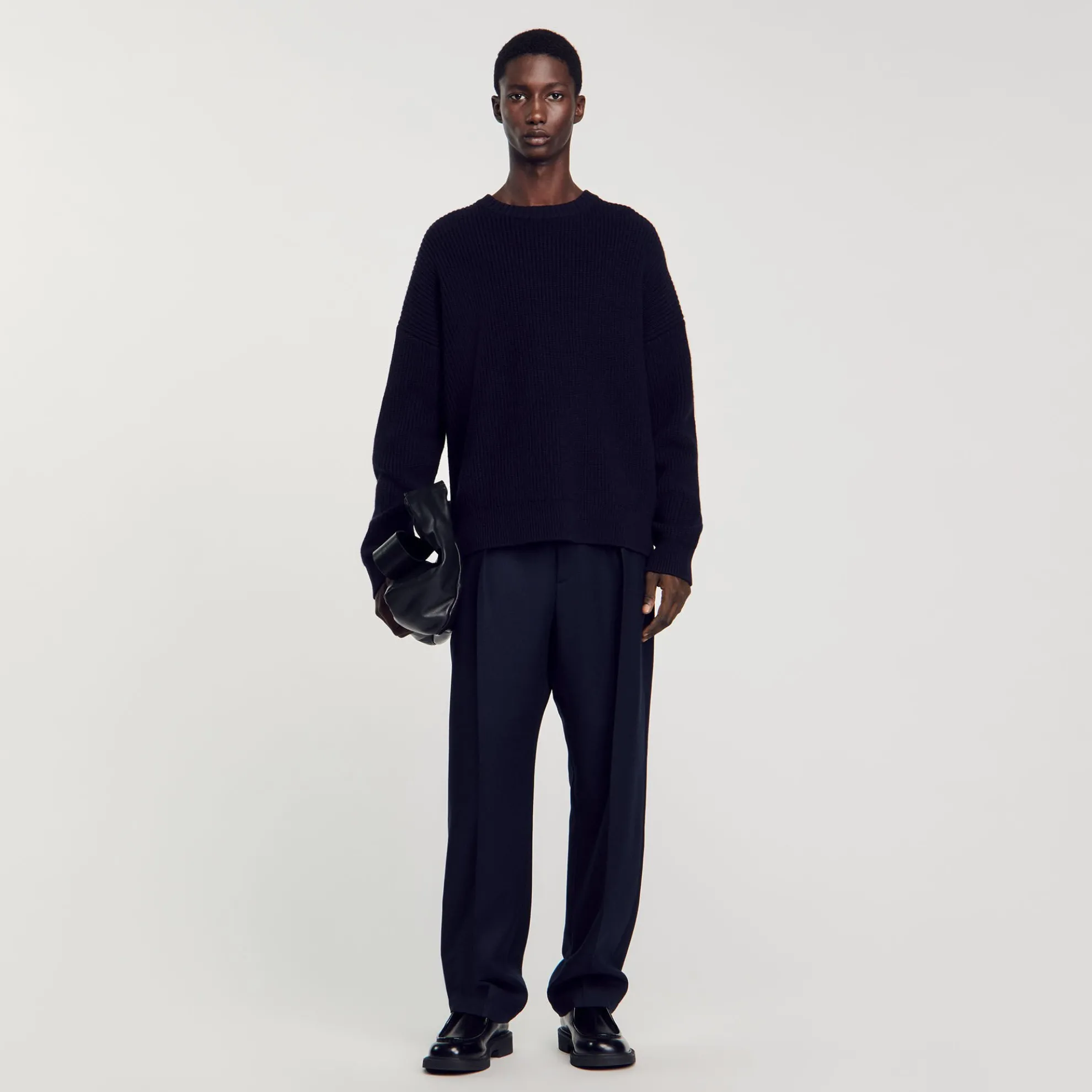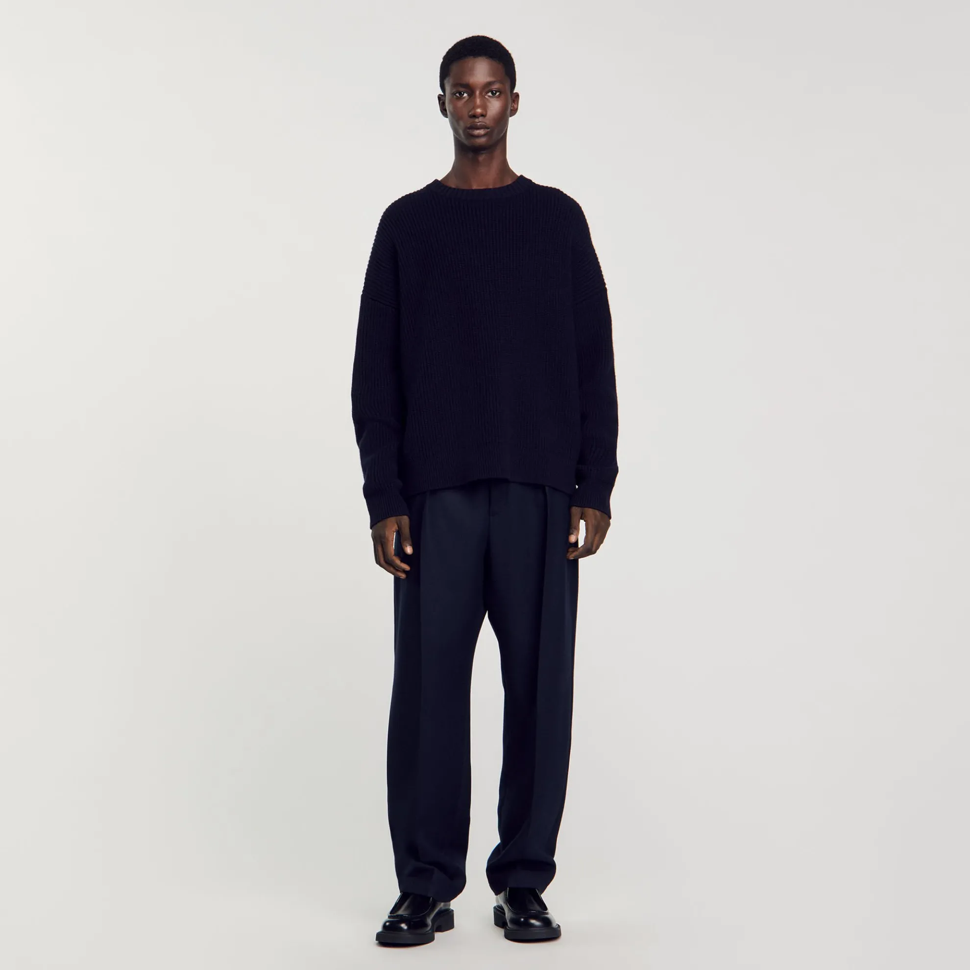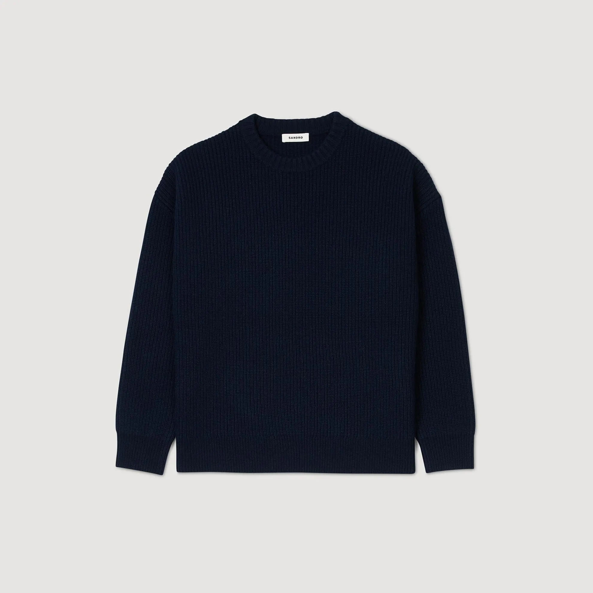 Oversized trui van dikke ribgebreide stof met een ronde kraag, lange mouwen en geribbelde randen.