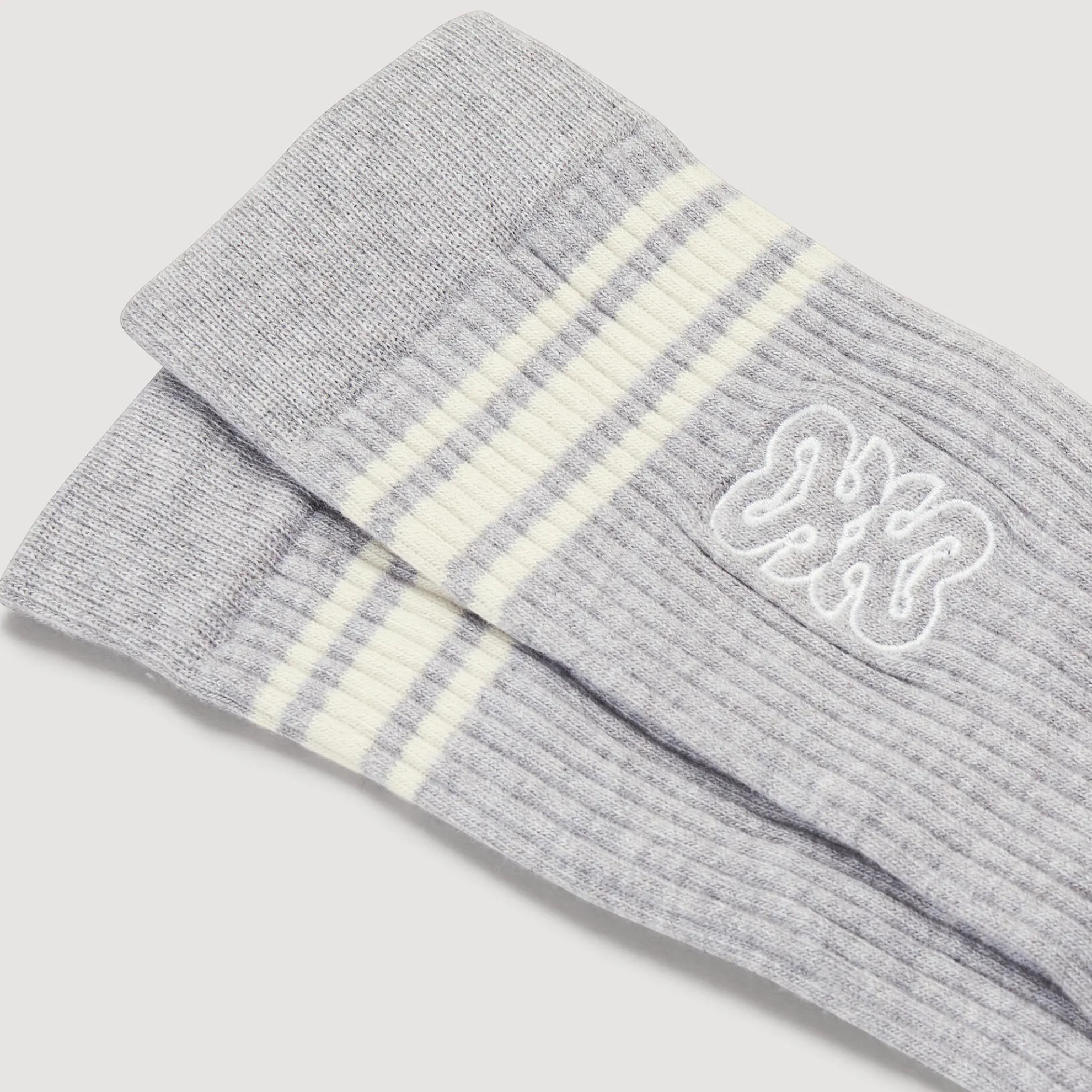 Geribde sokken met contrasterende banden en een geborduurd dubbel S-logo.