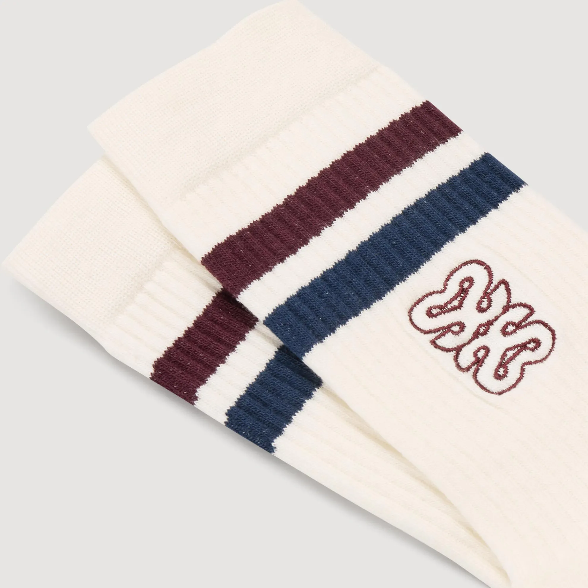 Geribde sokken met contrasterende banden en een geborduurd dubbel S-logo.