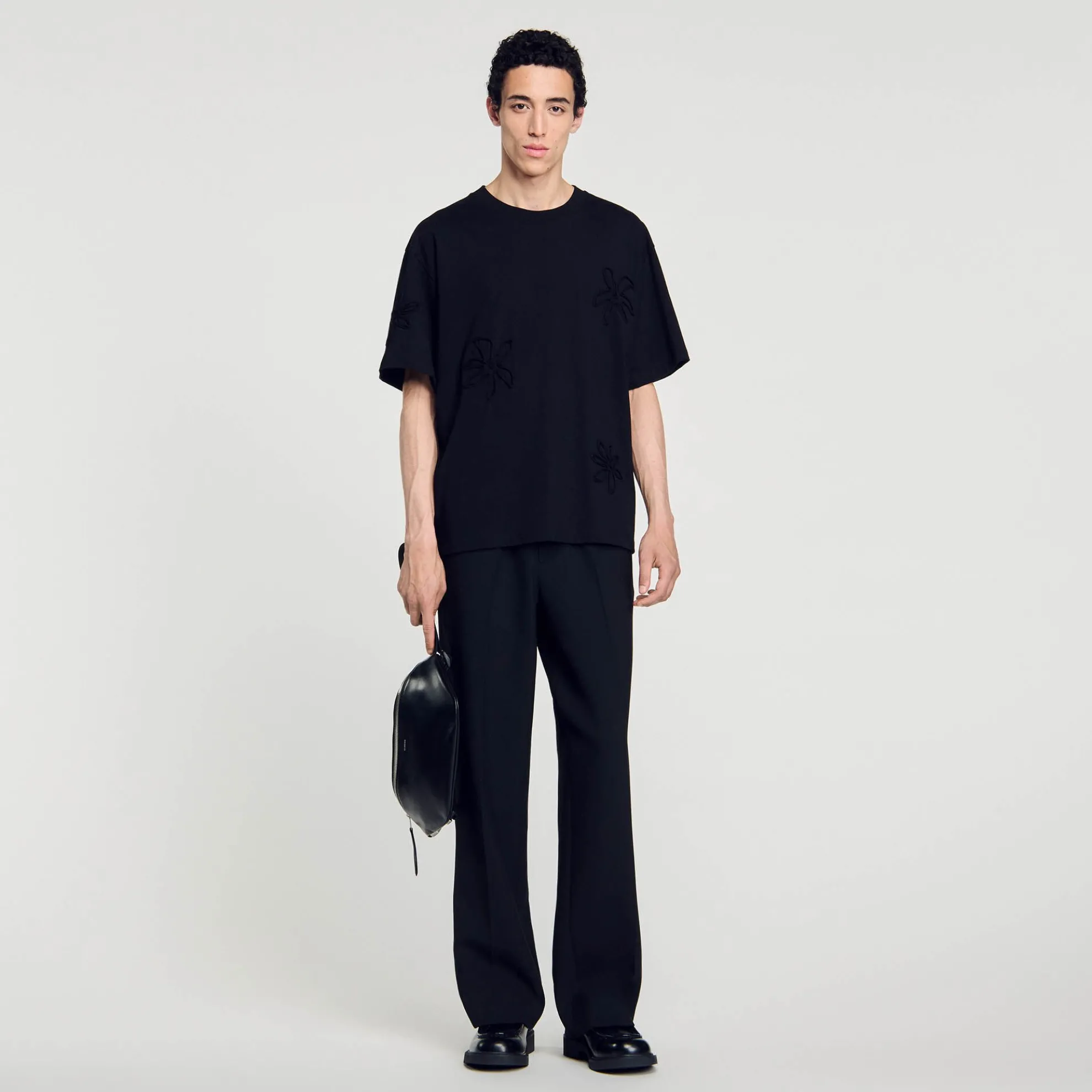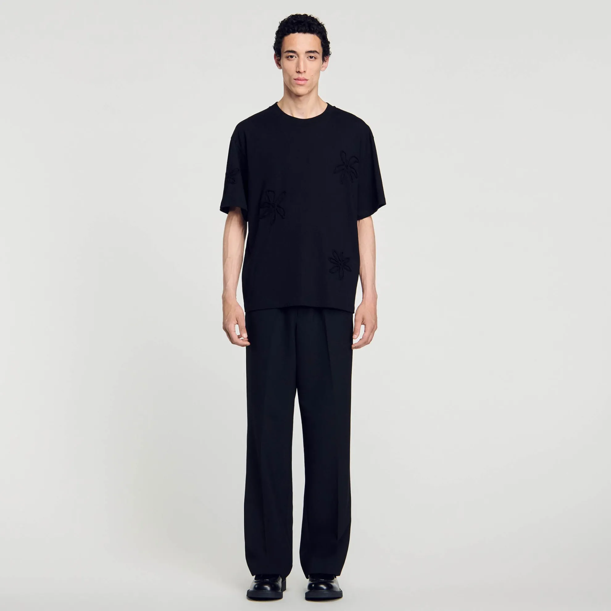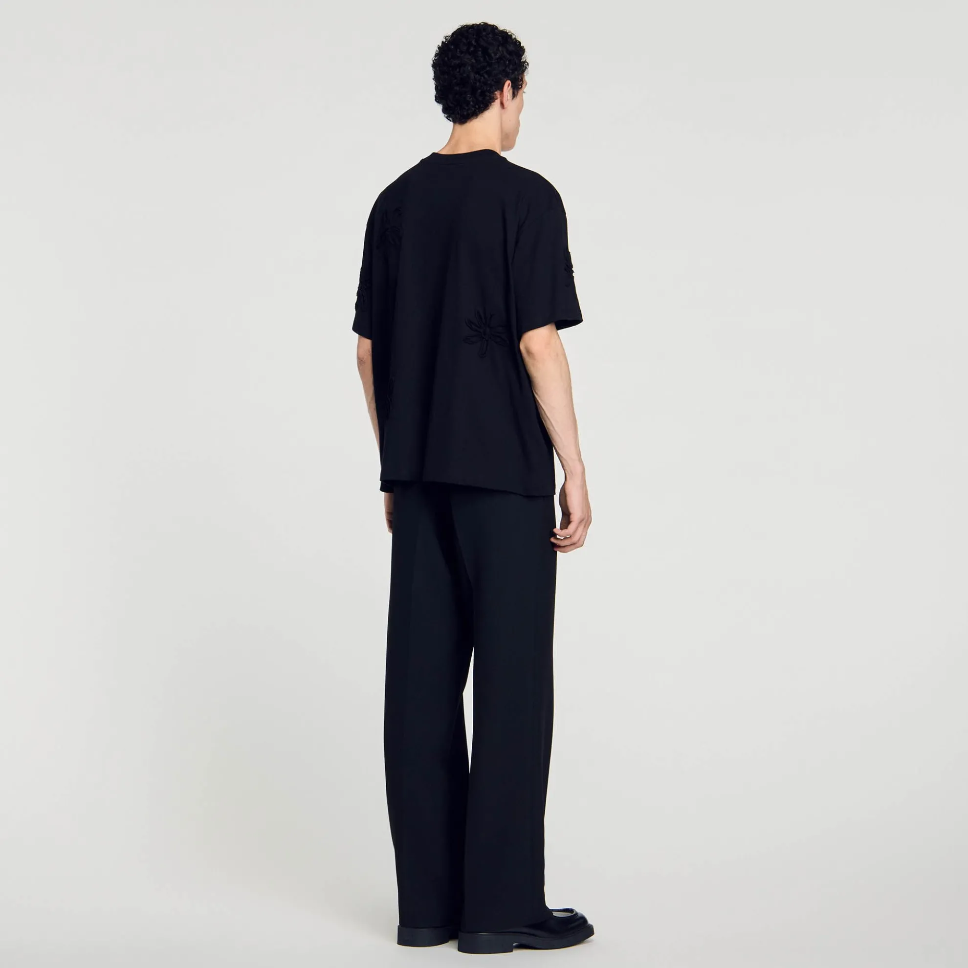 Katoenen T-shirt met ronde hals, korte mouwen en biais met ton-sur-ton bloemmotief.