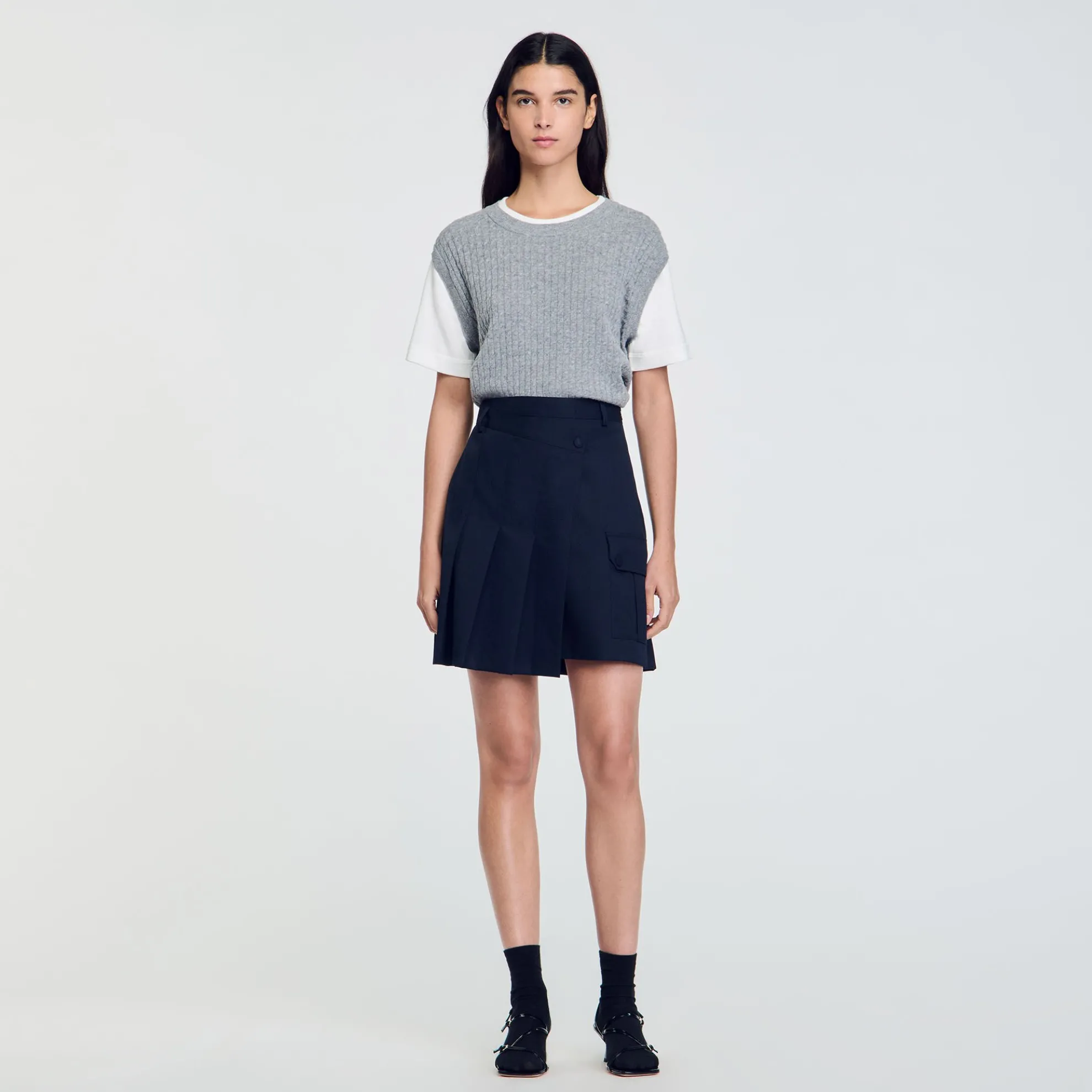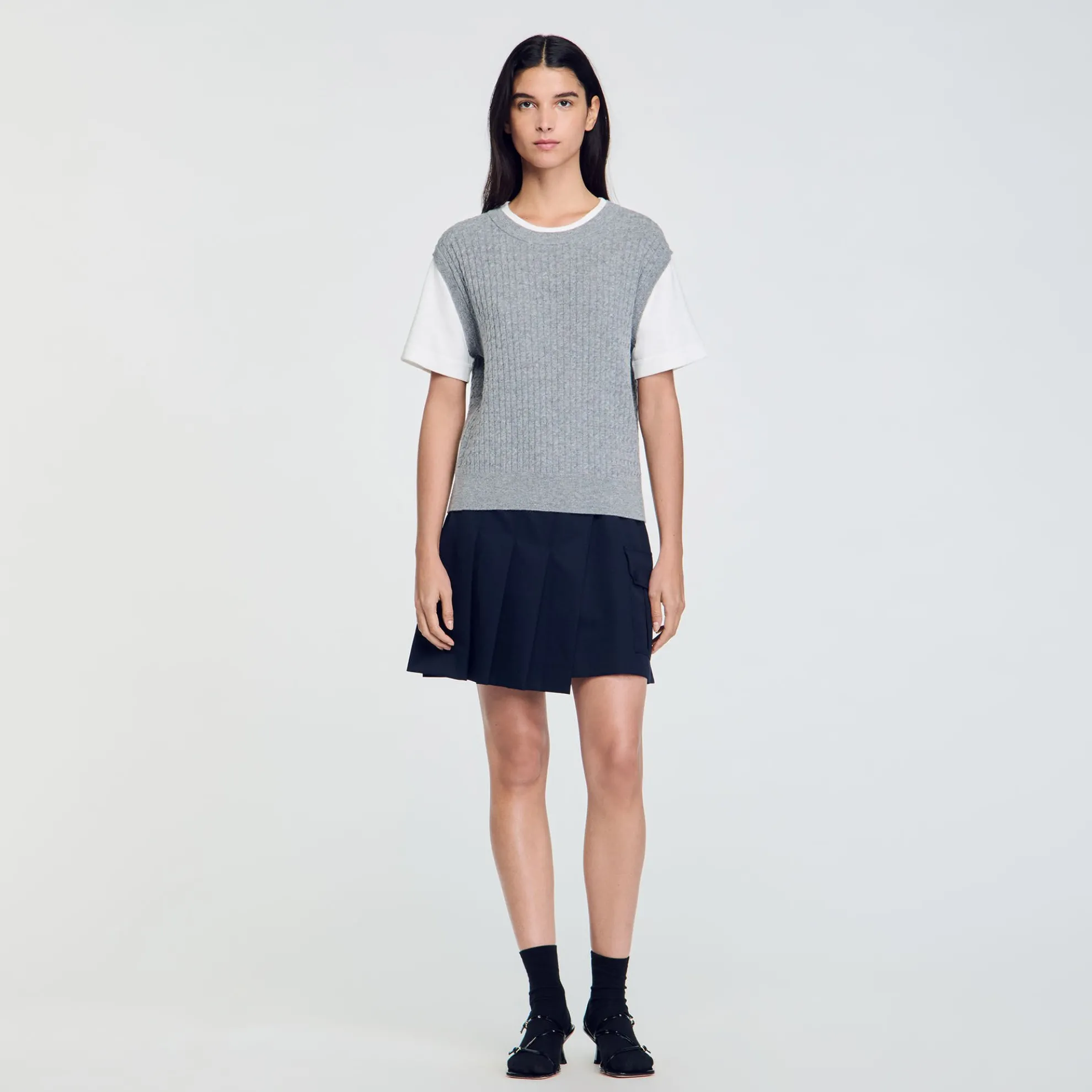 Trui trompe l’oeil van ribgebreide wol en kasjmier met een ronde hals en korte contrasterende mouwen.