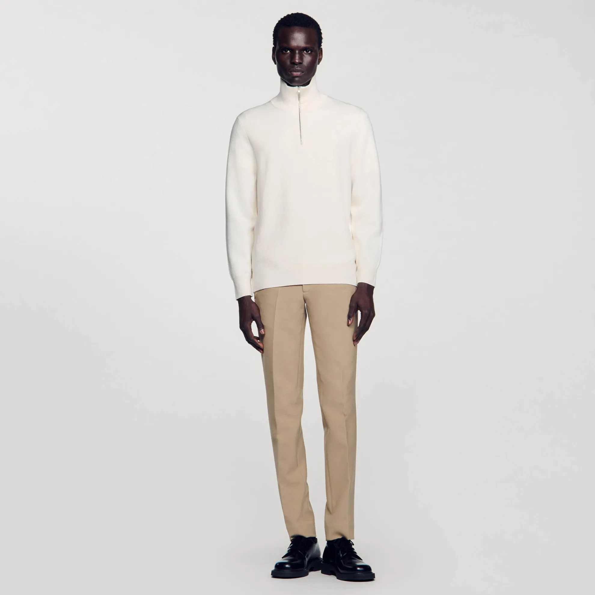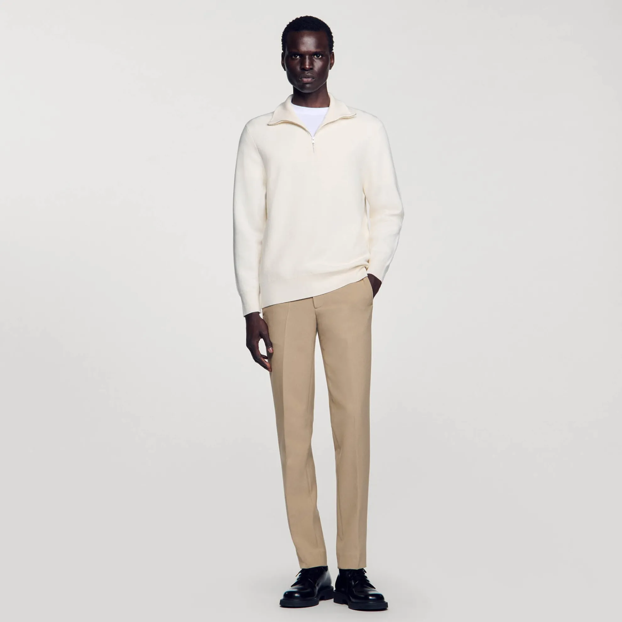 Trui van Milano breisel met geribde Troyer ritskraag, ritssluiting en lange mouwen.
