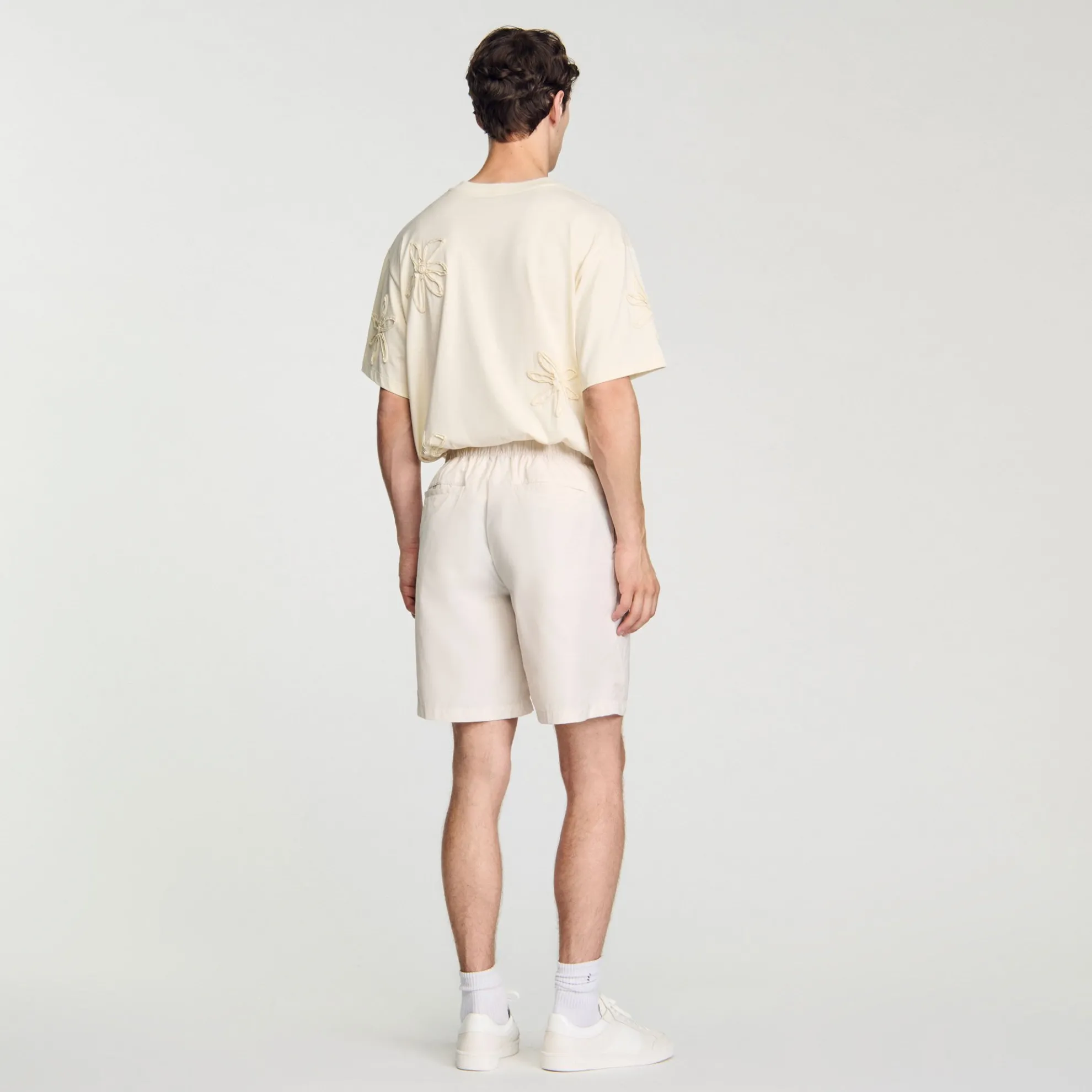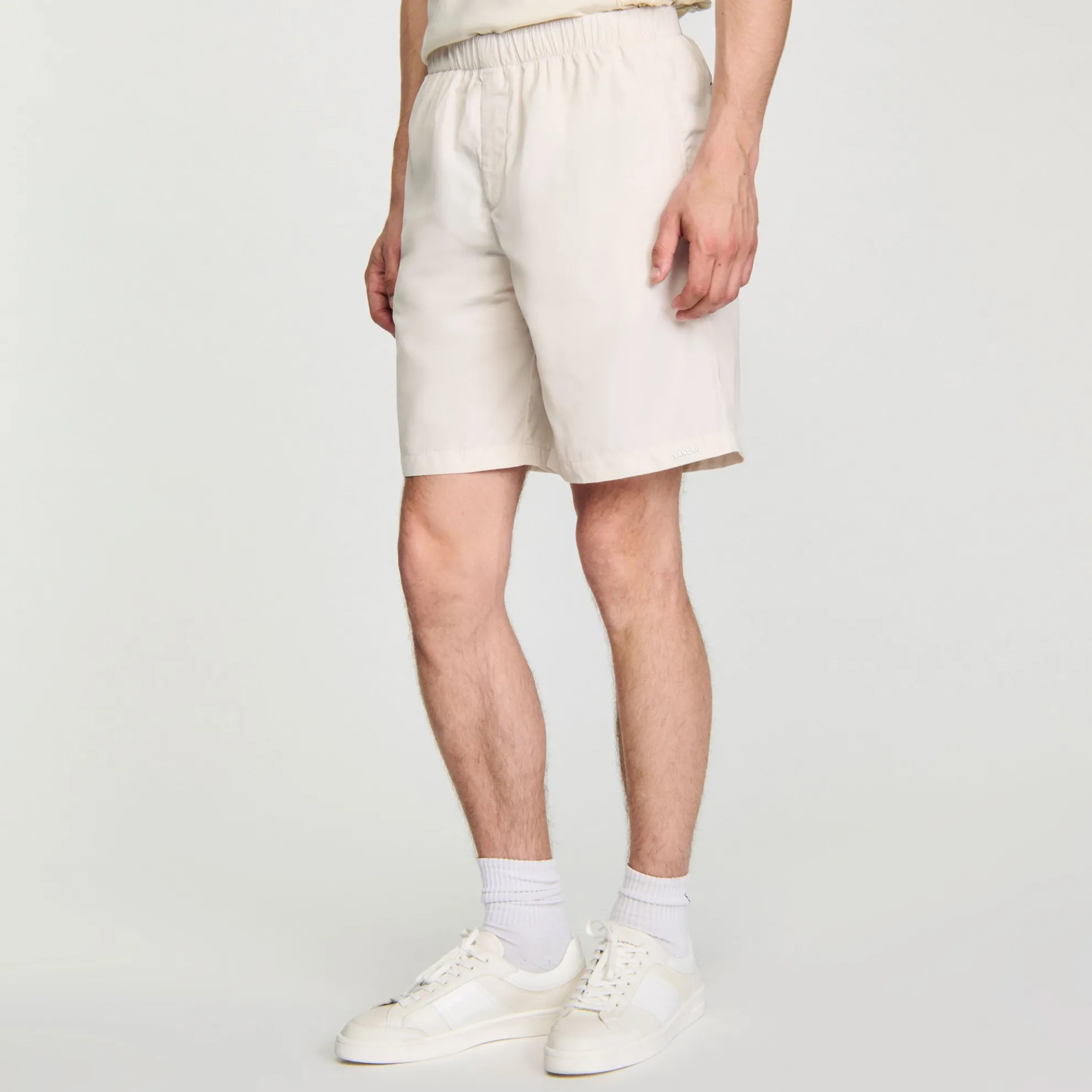 Bermuda short van technische stof met elastische tailleband, steekzakken en een metalen SANDRO-logo.