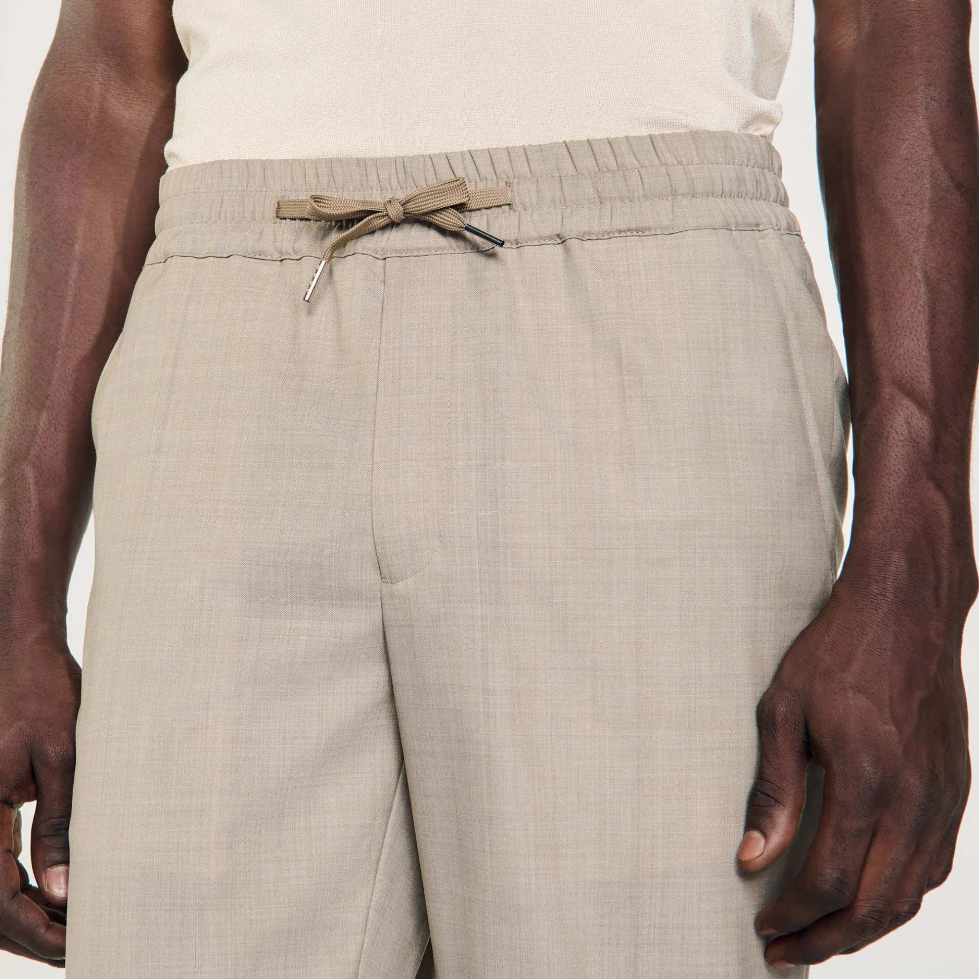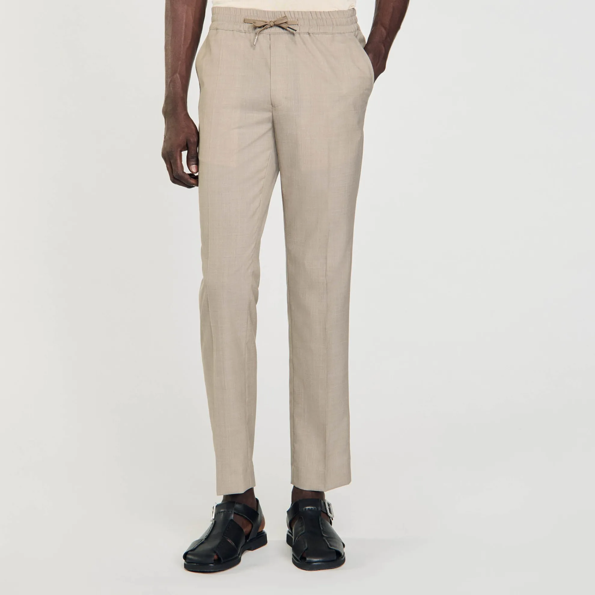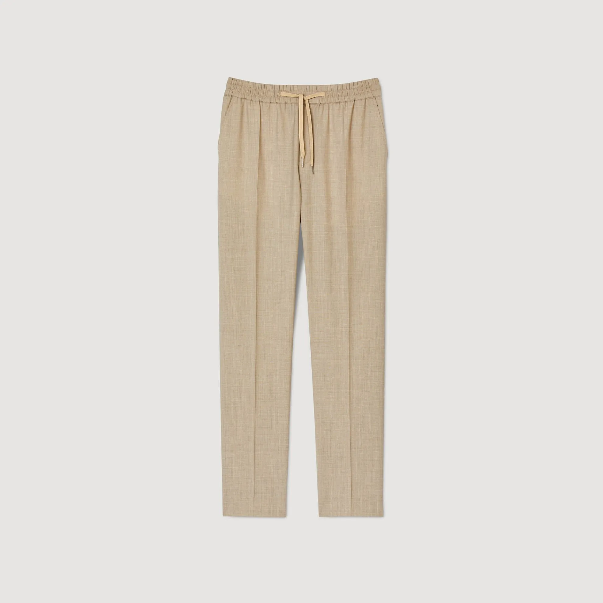 Rechte broek met elastische taille met trekkoord en zijzakken.
