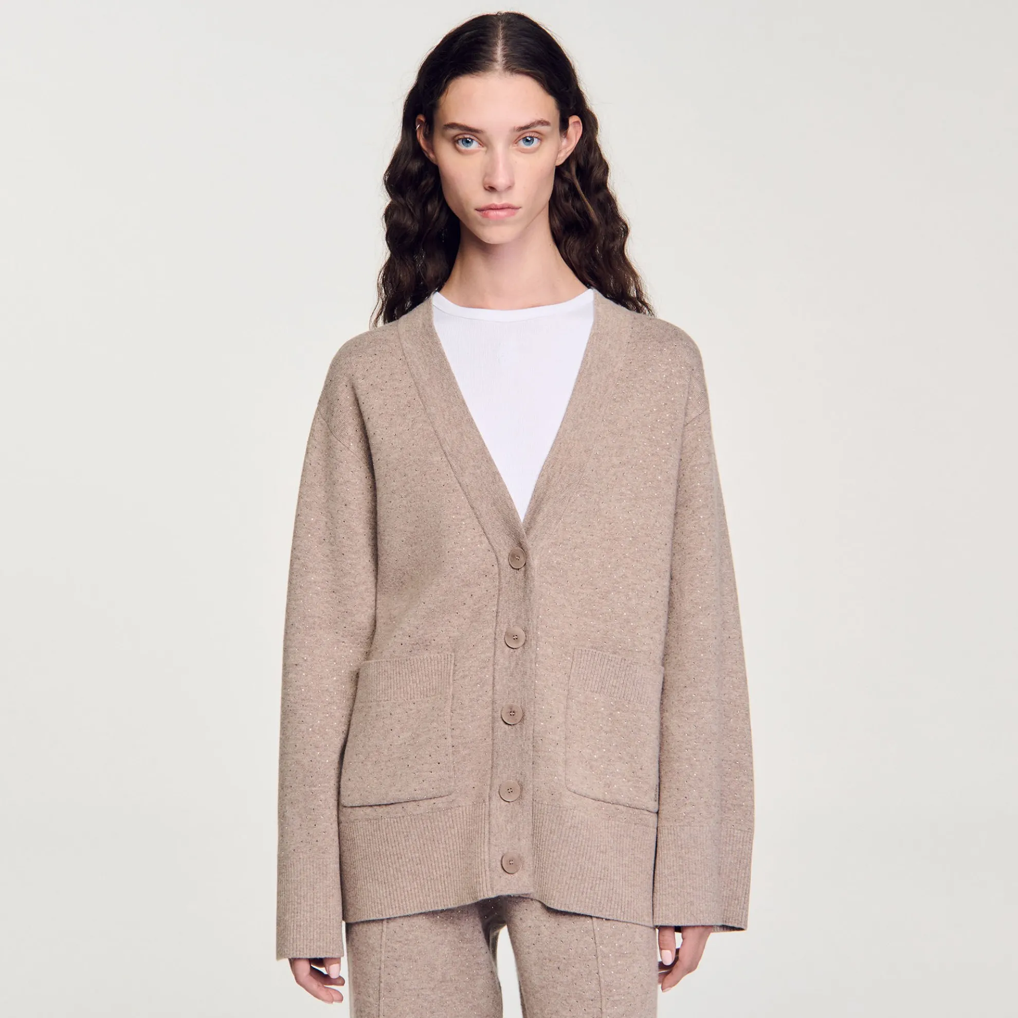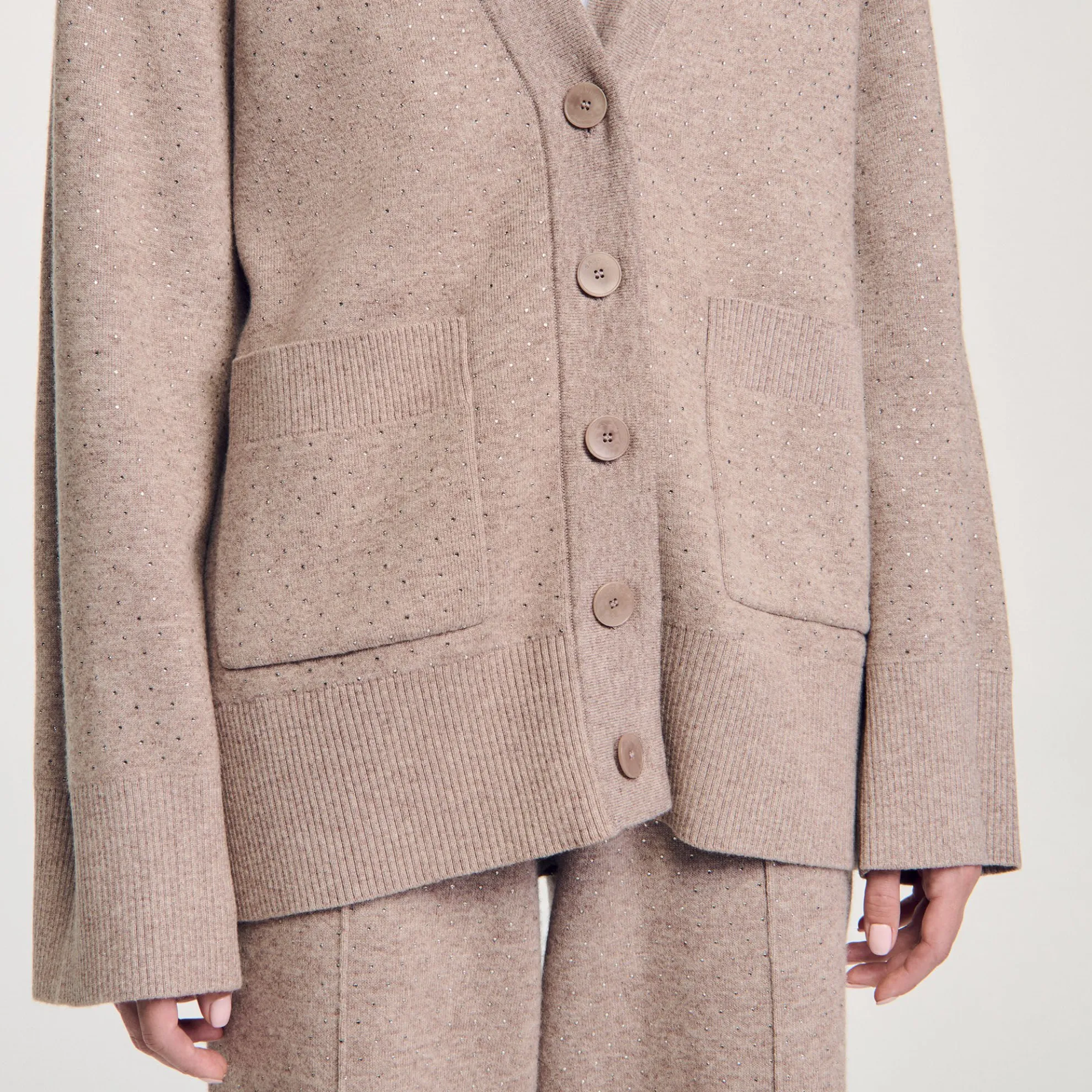 - Cardigan vest lang gebreid stras Sandro Dames