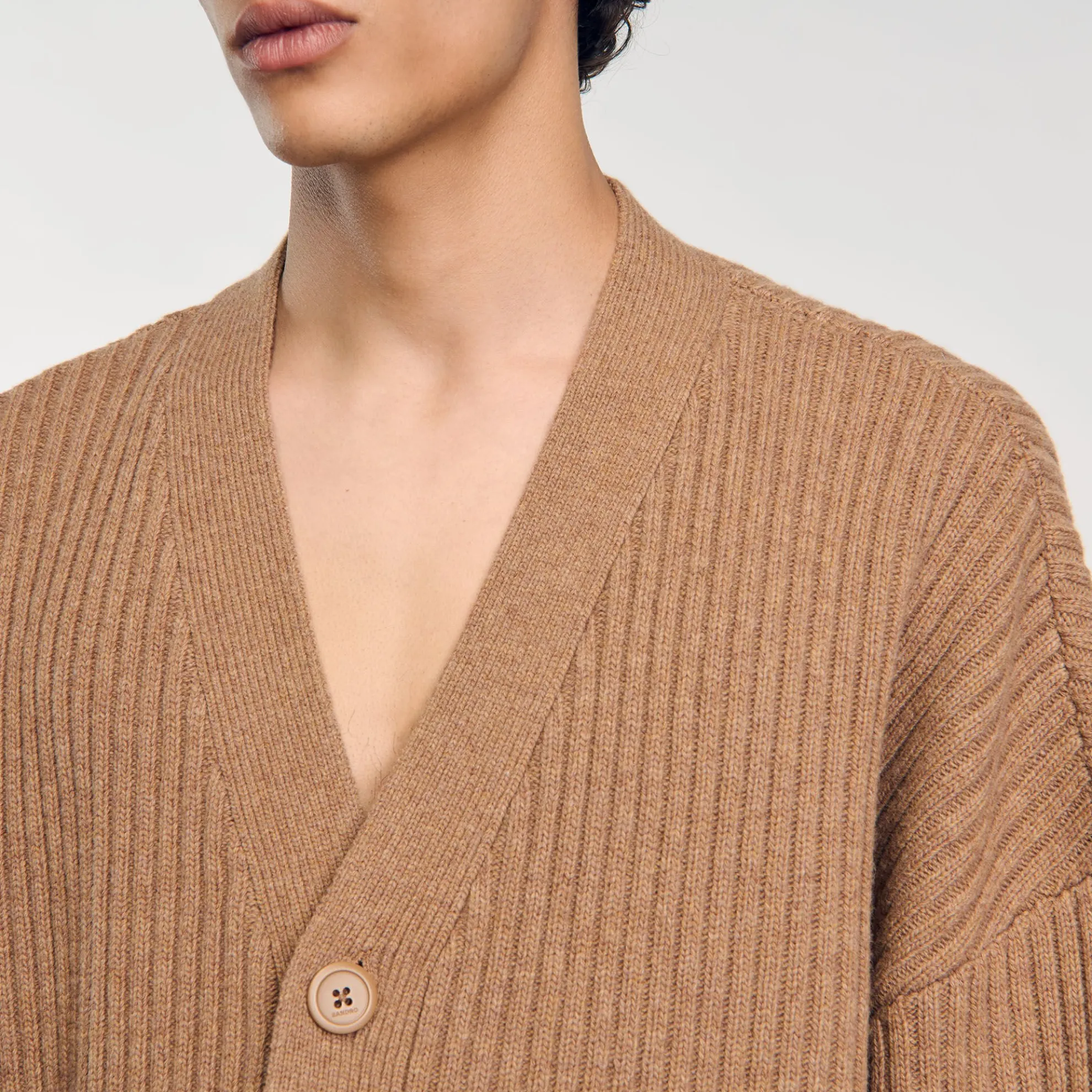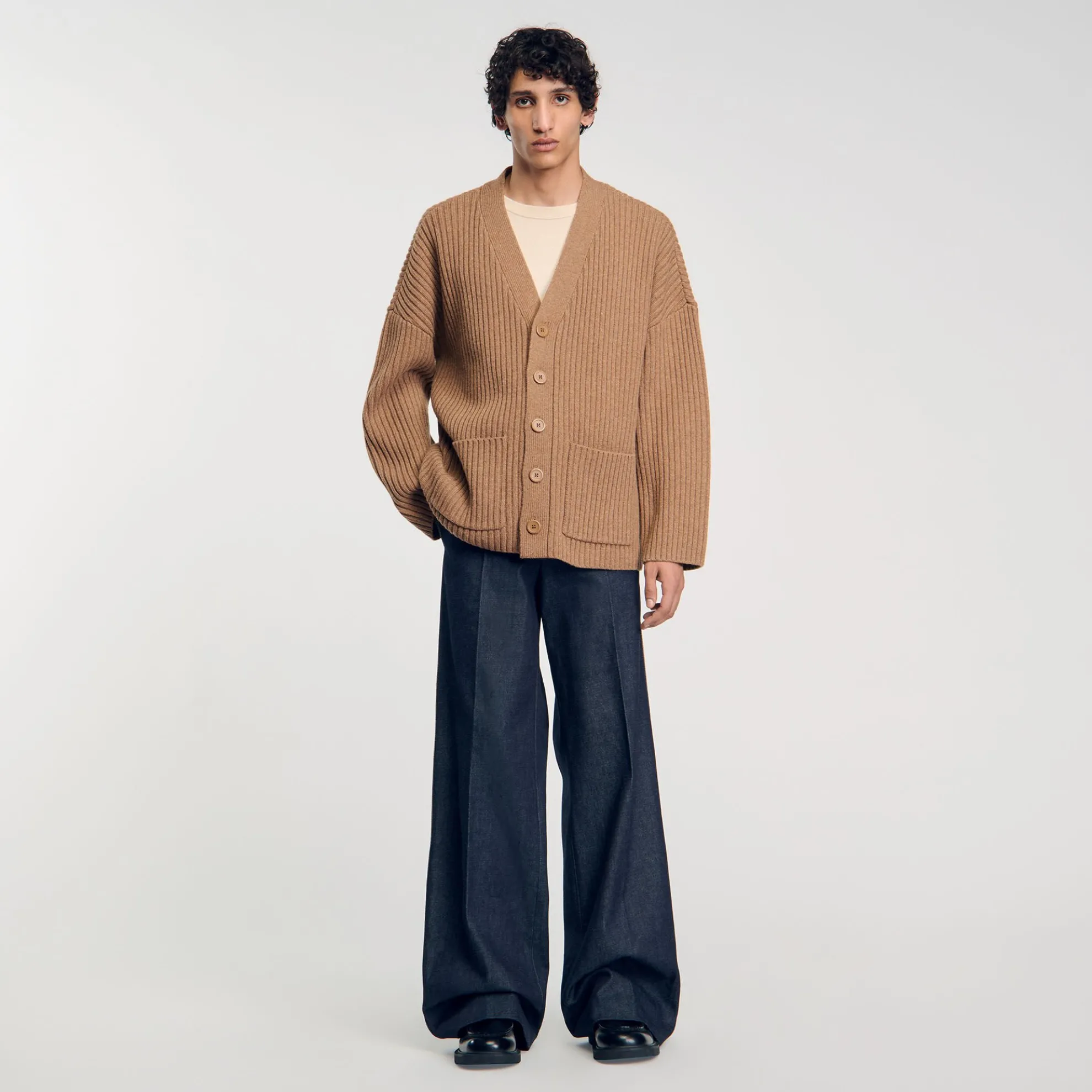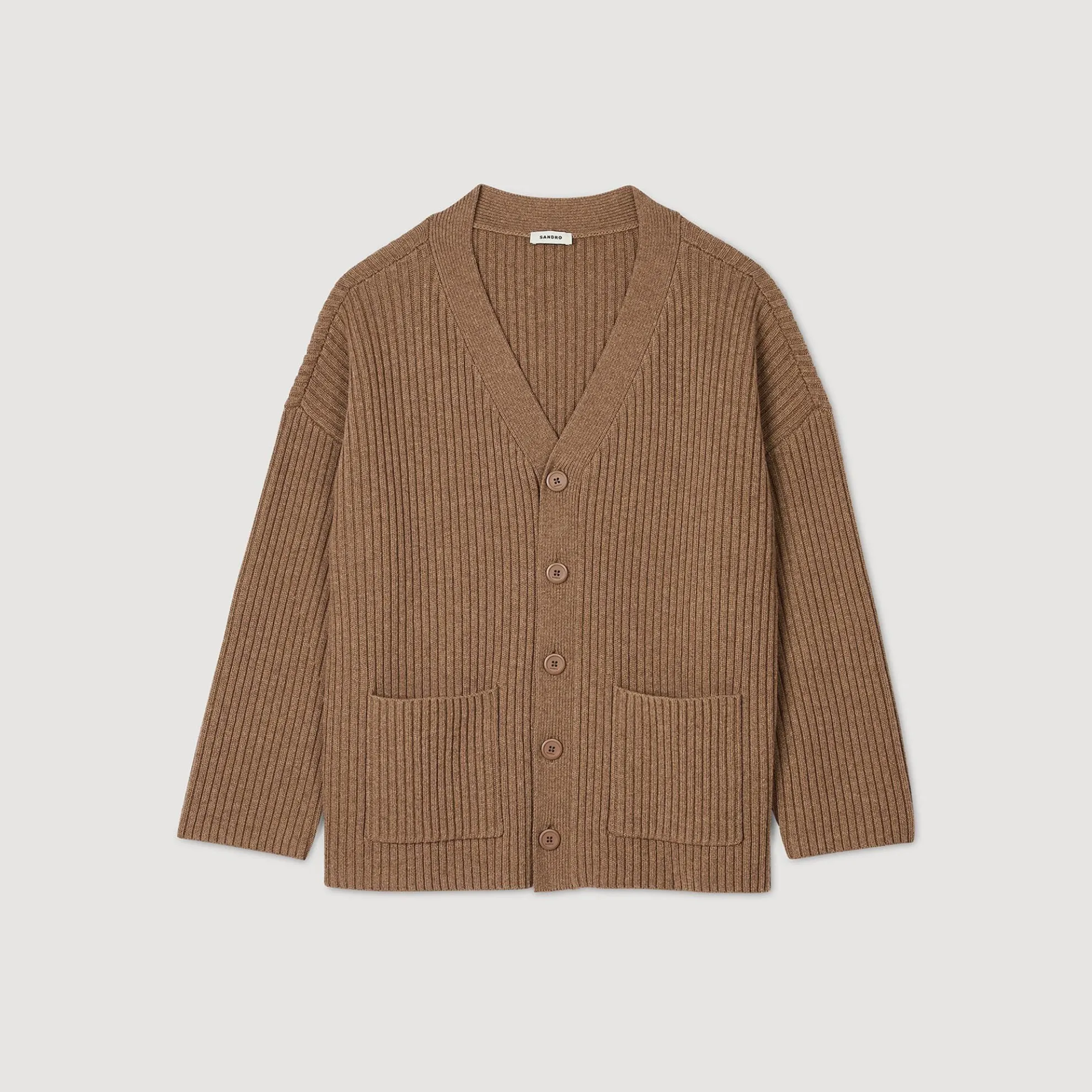Oversized cardigan vest van grofgebreide stof met volumineuze lange mouwen, V-hals, ton-sur-ton knoopsluiting en opgestikte zakken.