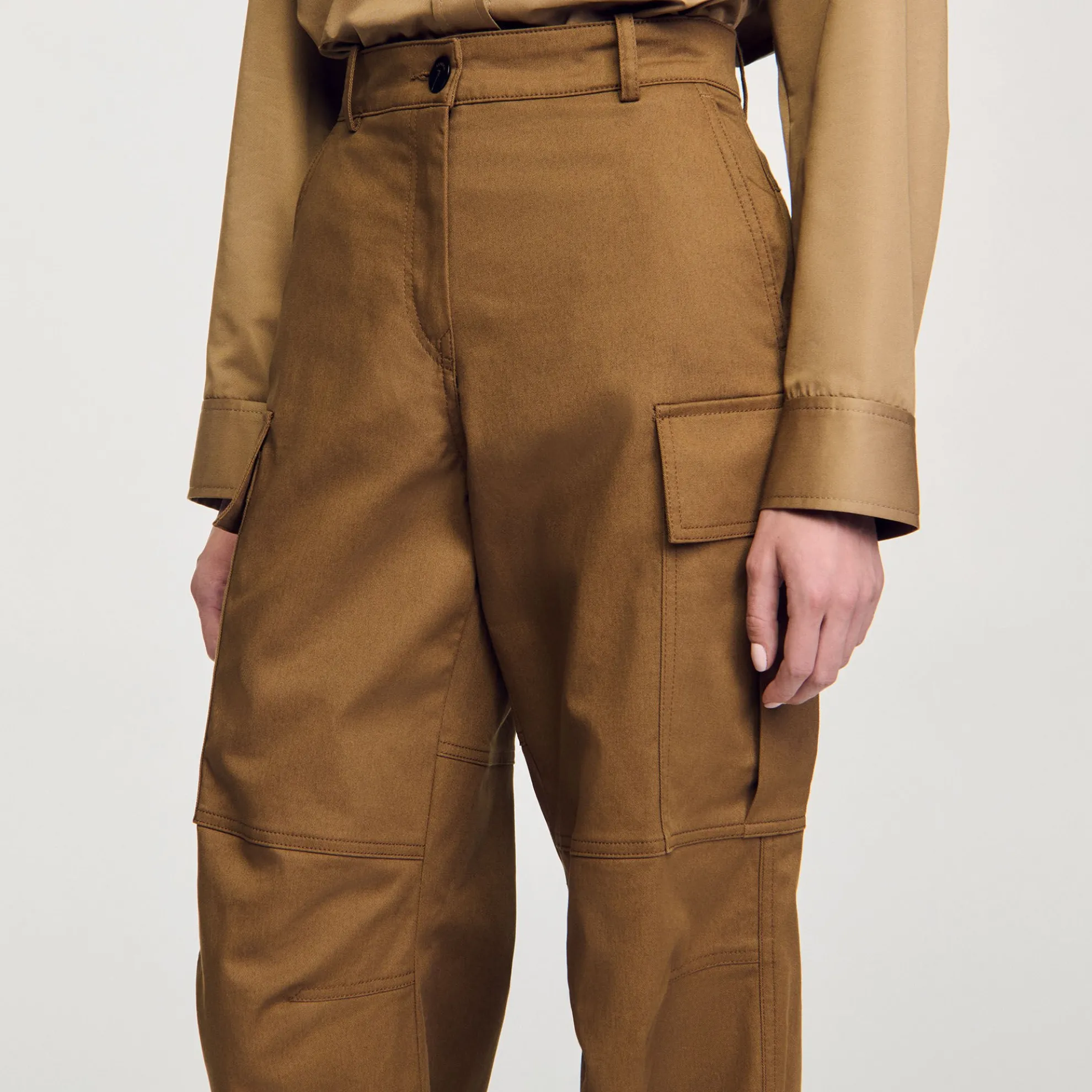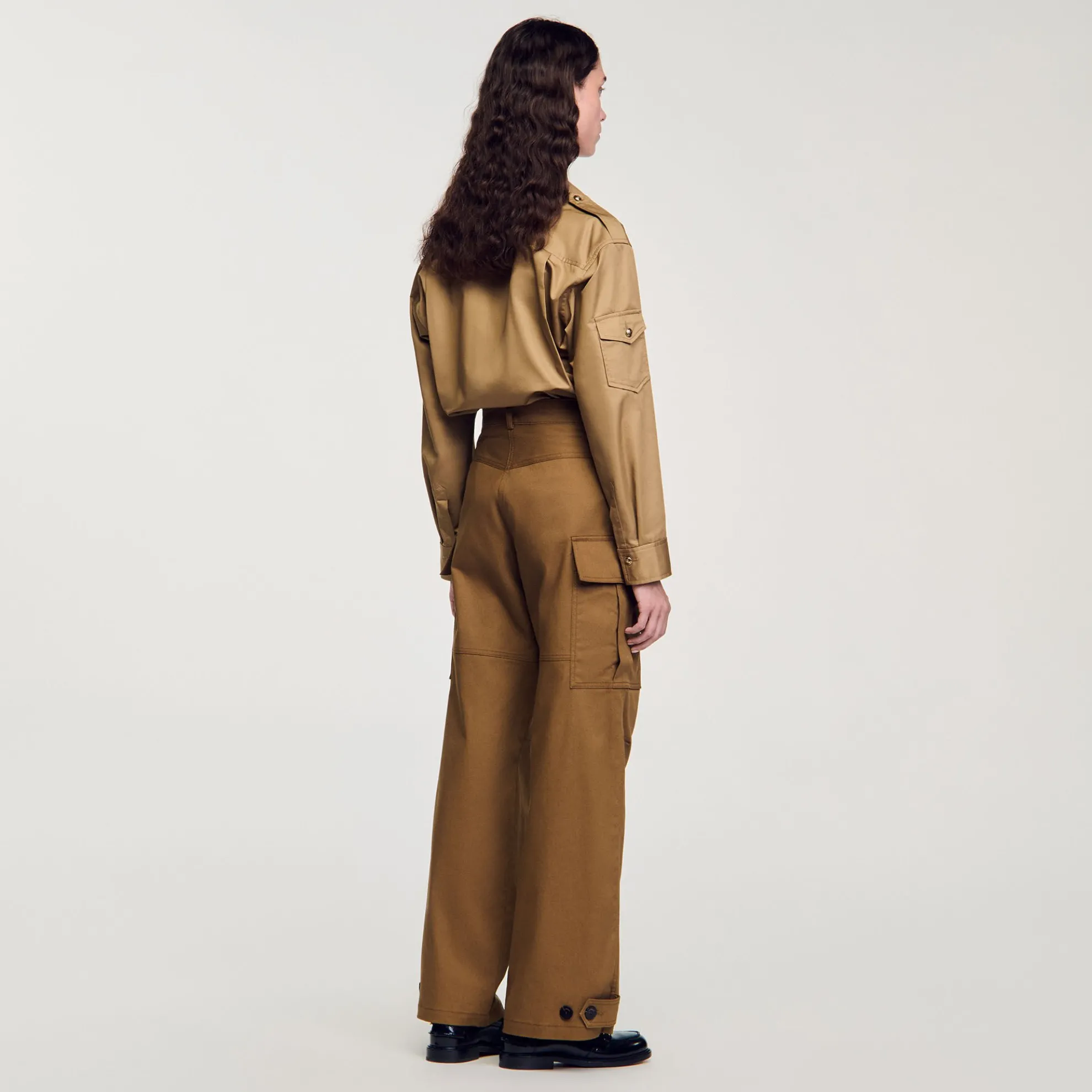 Rechte pantalon met cargozakken aan de zijkant en riemlussen.