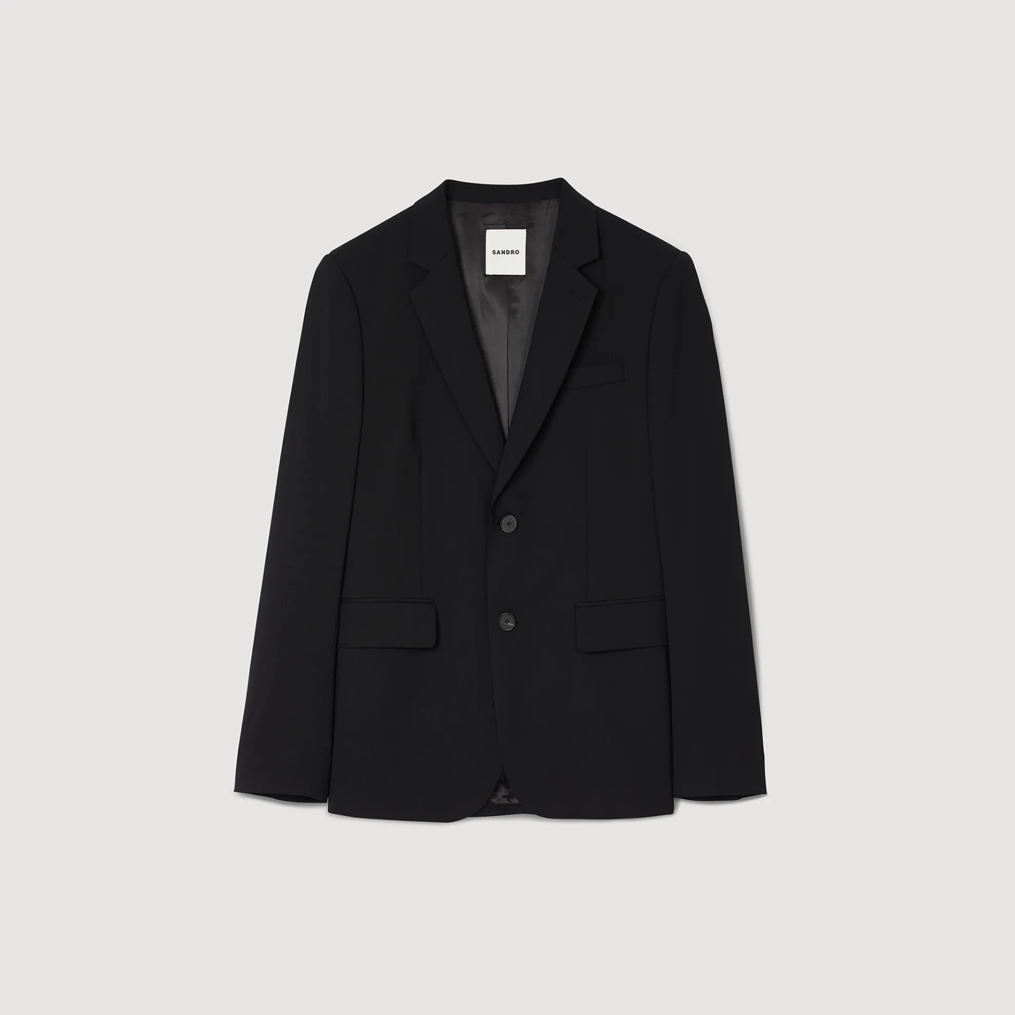 Colbert van scheerwol met klassieke snit en een sluiting met twee knopen.