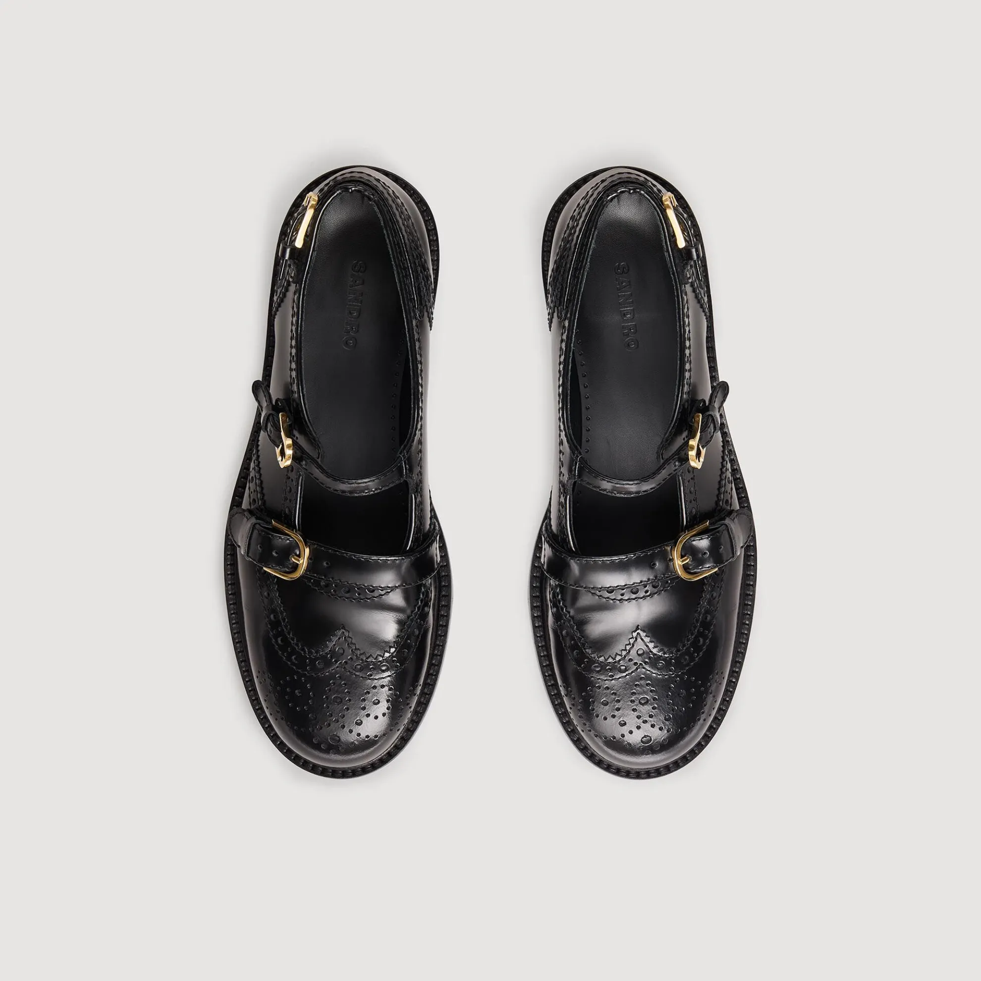 Derby schoenen in Maryjane stijl van glanzend lakleer met dunne bandjes met verstelbare gespen.
