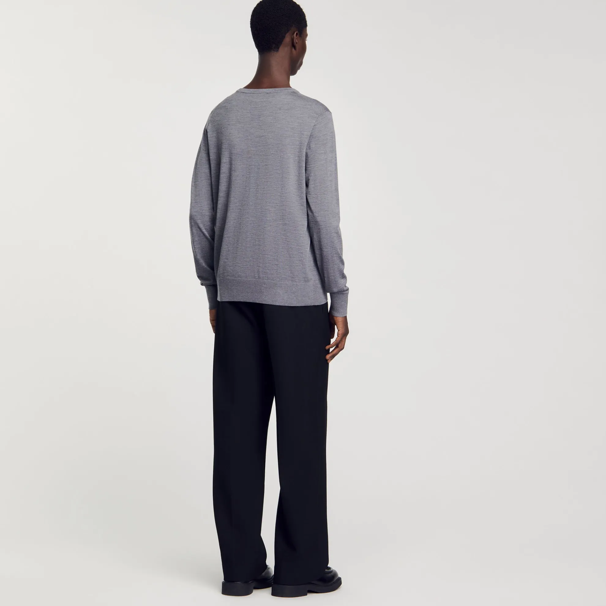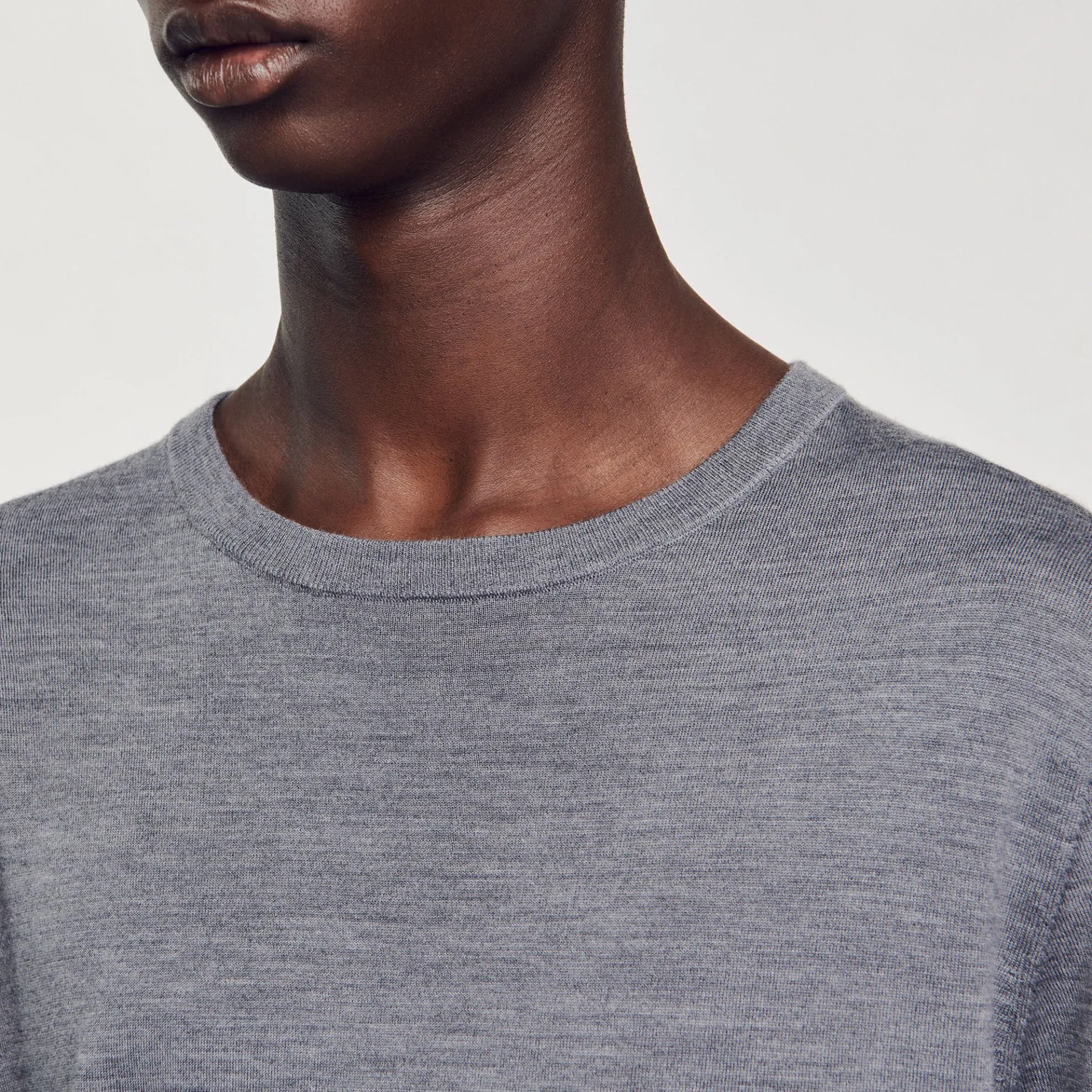 Soepele fijngebreide trui met ronde hals en lange mouwen.