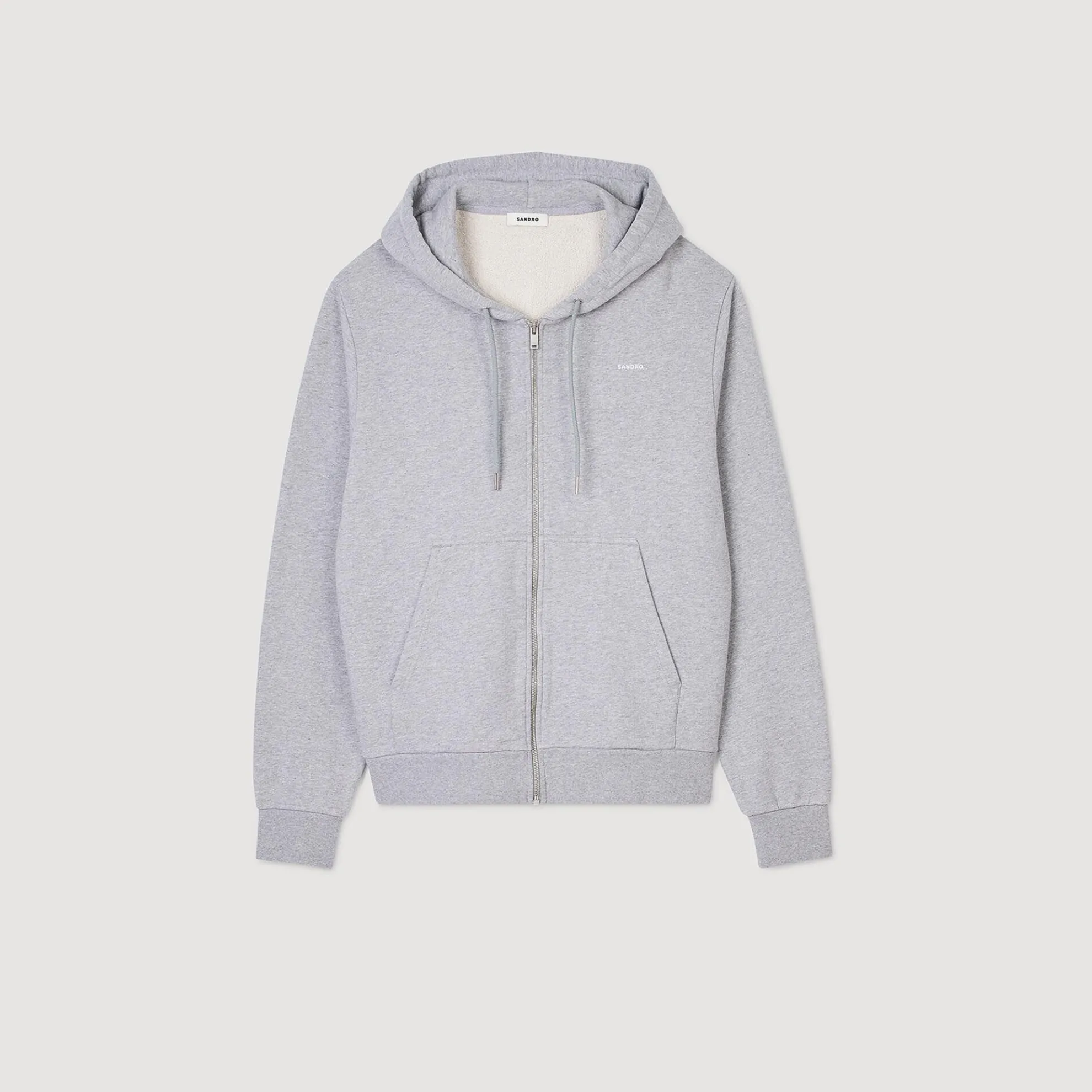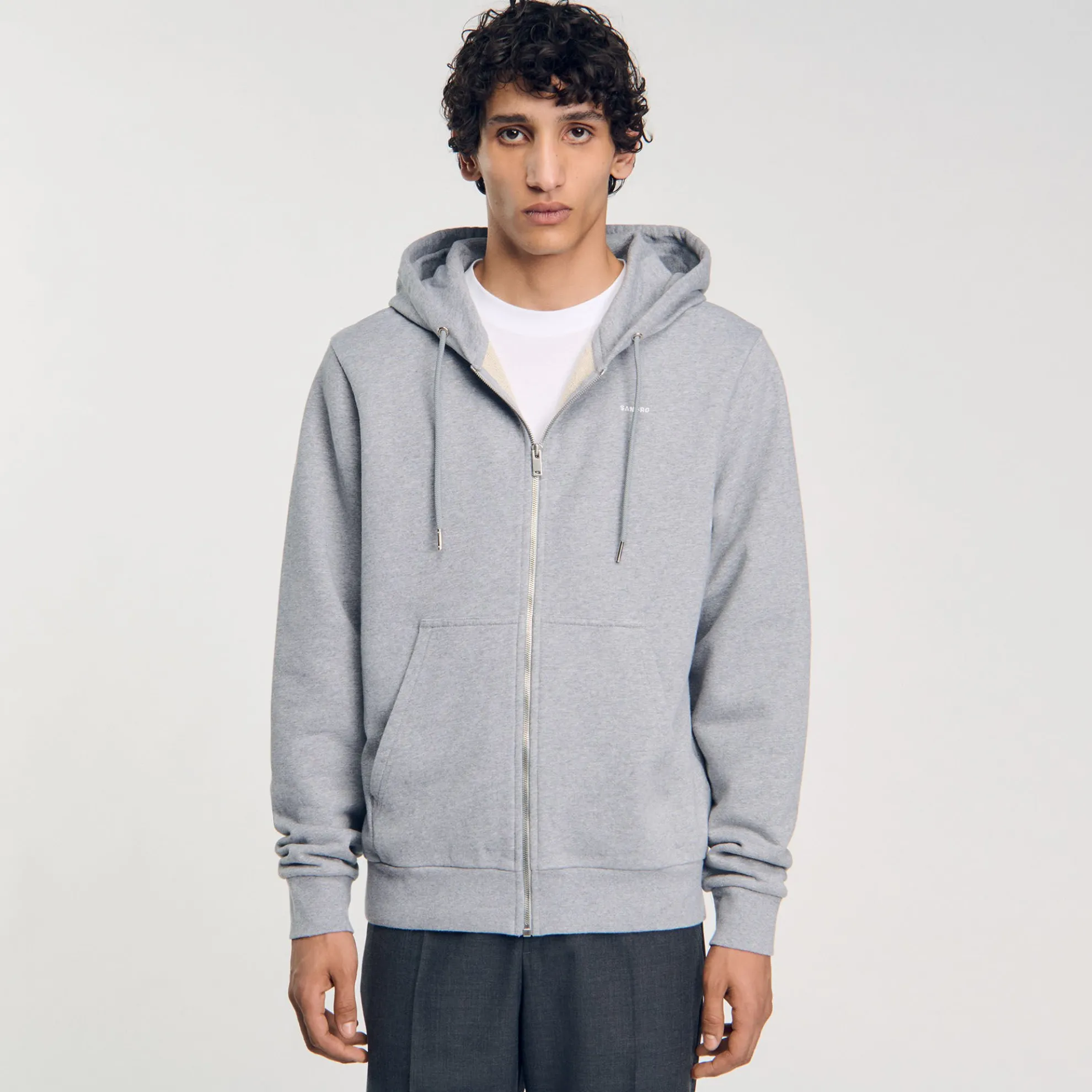 Hoodie met een capuchon met trekkoord en lange mouwen en een Sandro-borduursel op de voorkant. De nu al iconische Sandro hoodie is een unisex item dat de vrouw leent uit de kledingkast van de man.