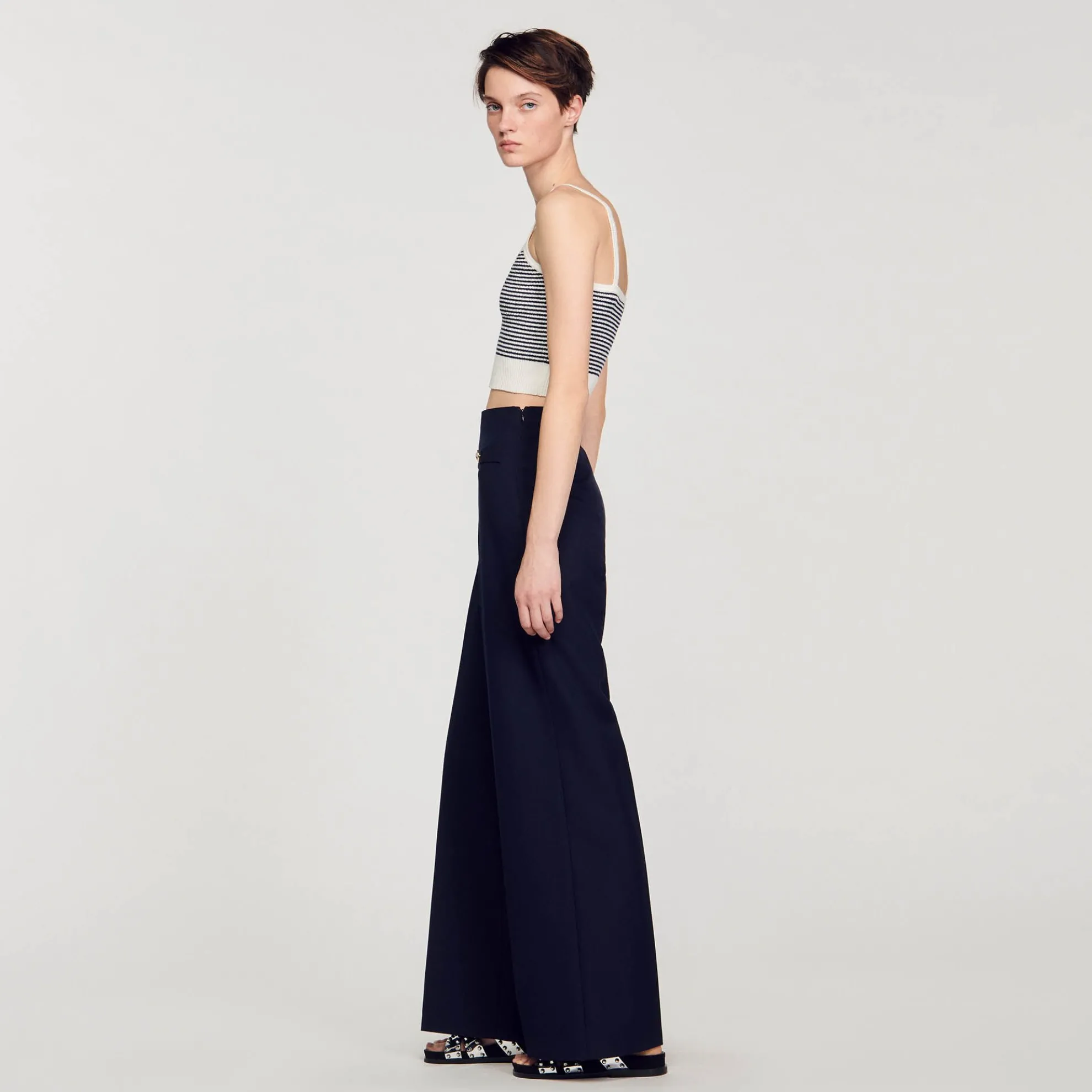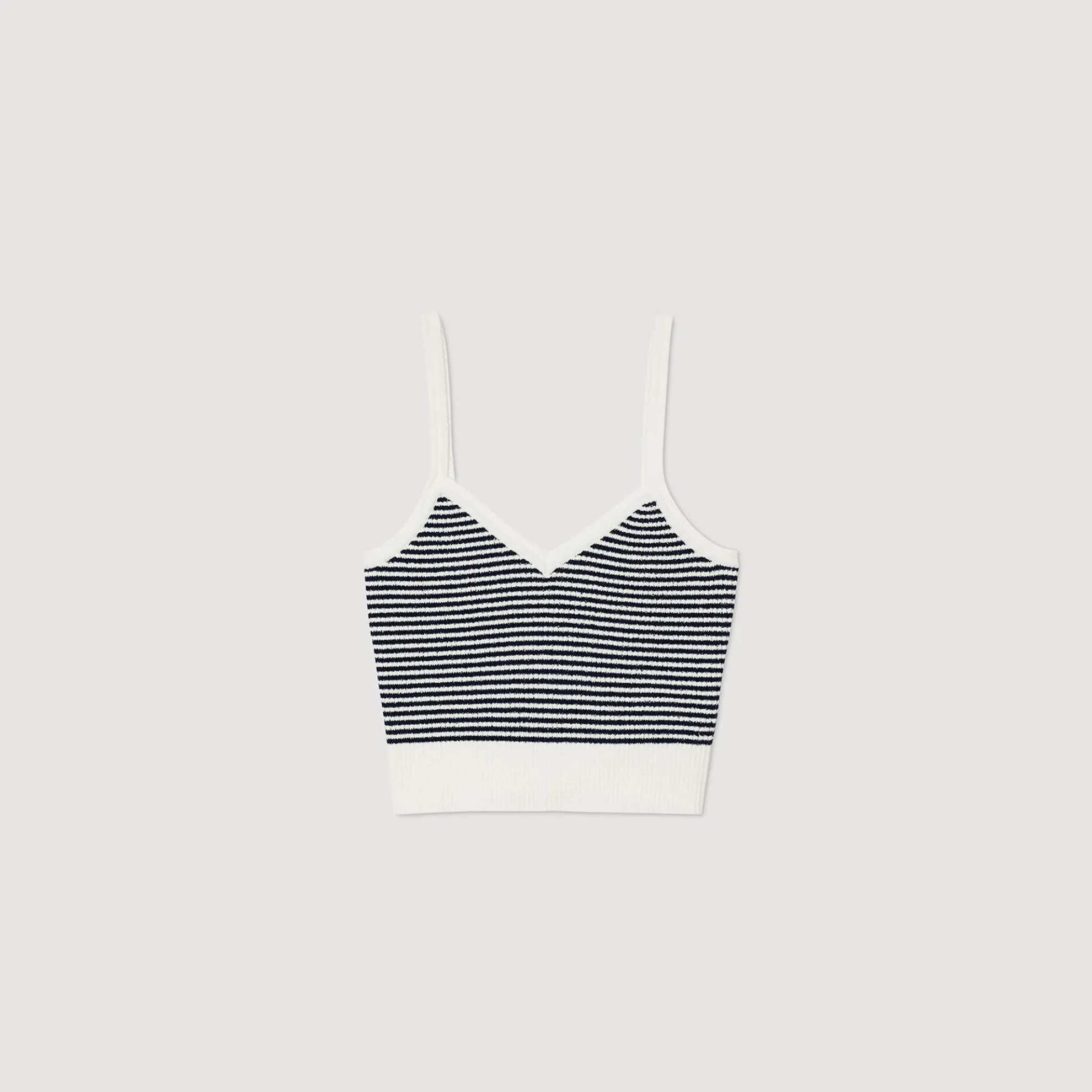 Gebreide korte brassière van gestreepte bouclé stof met dunne schouderbandjes en contrasterende geribde boorden.