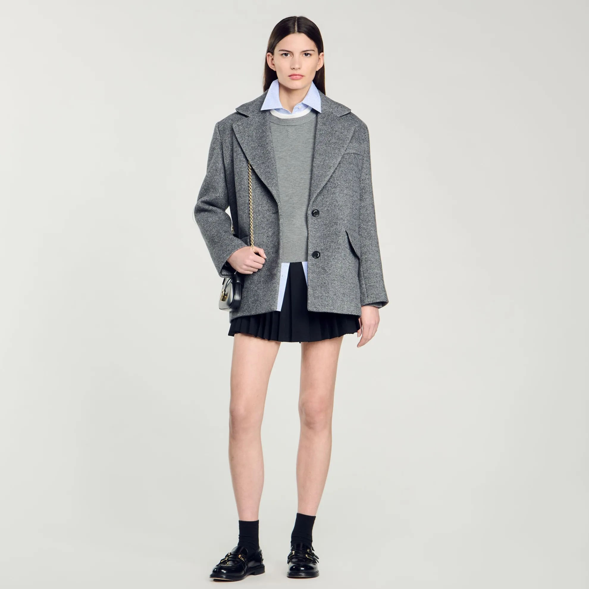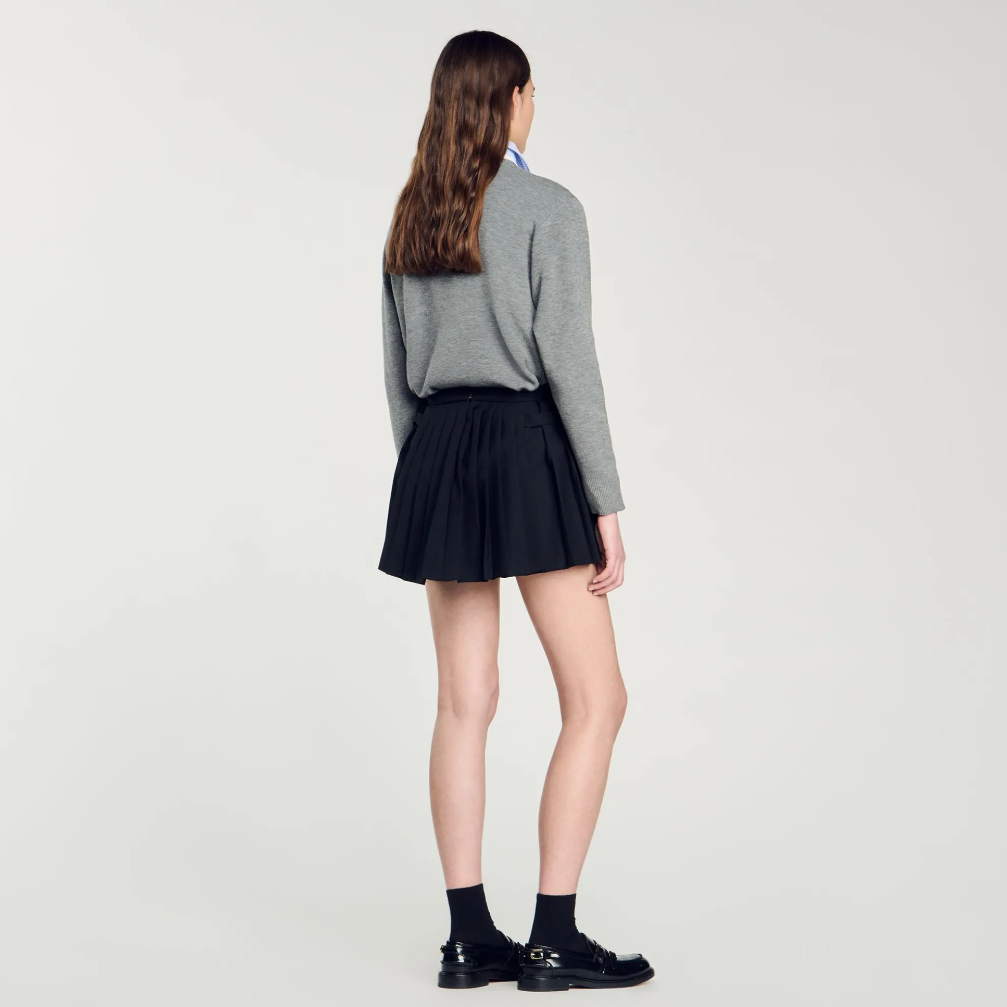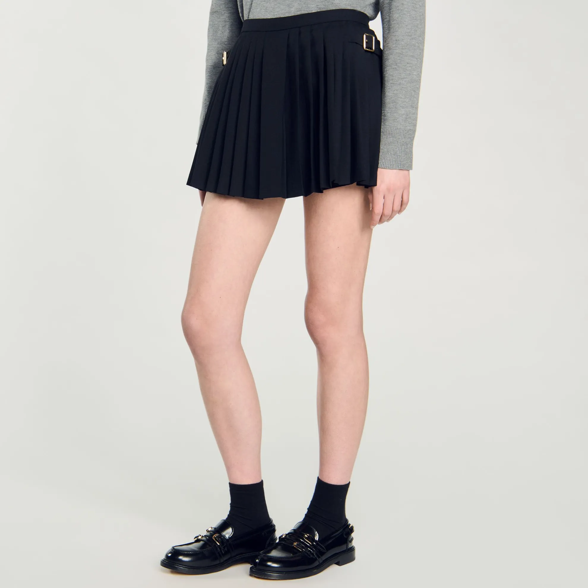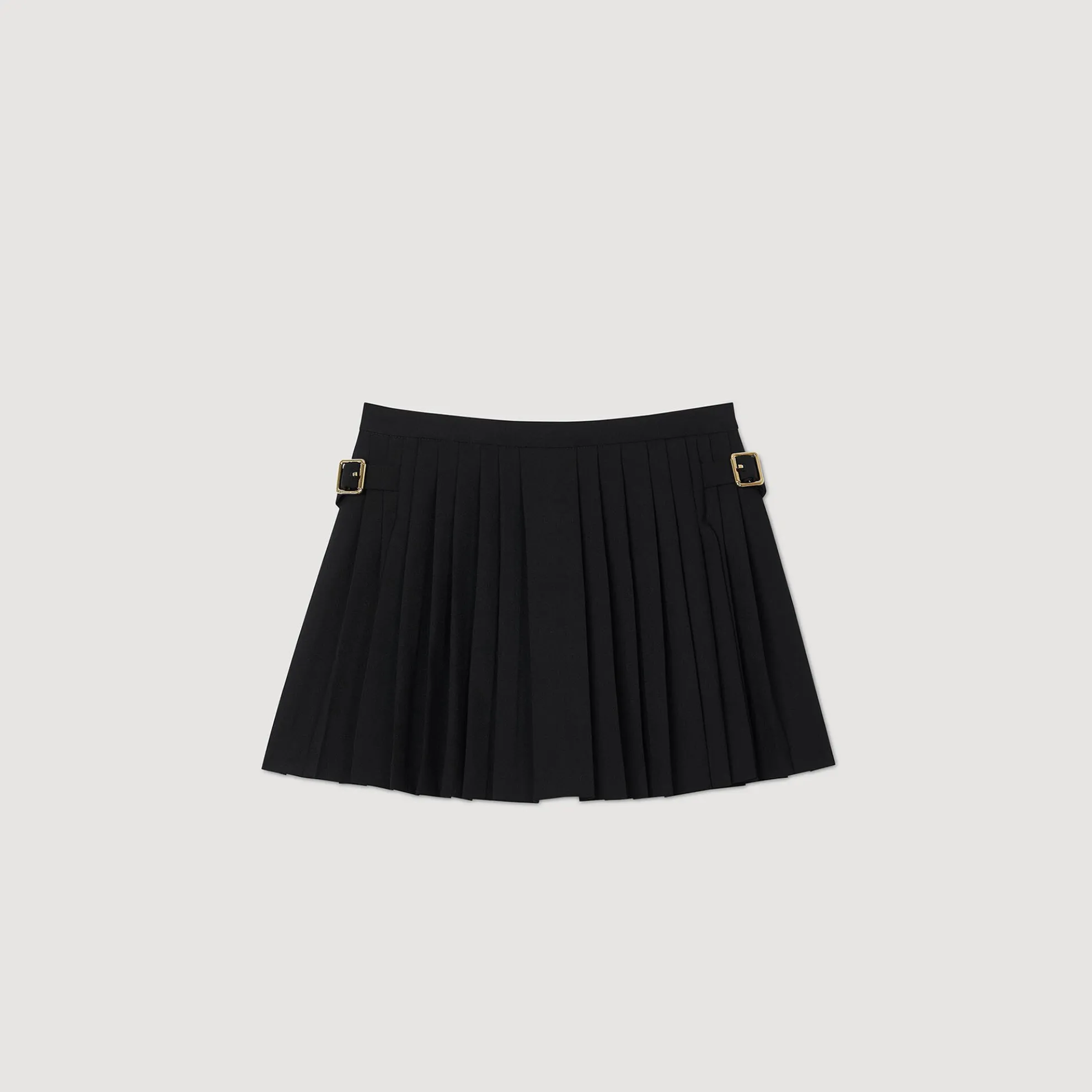 Geplooide skort met metalen gesp aan de zijkant en ritssluiting.