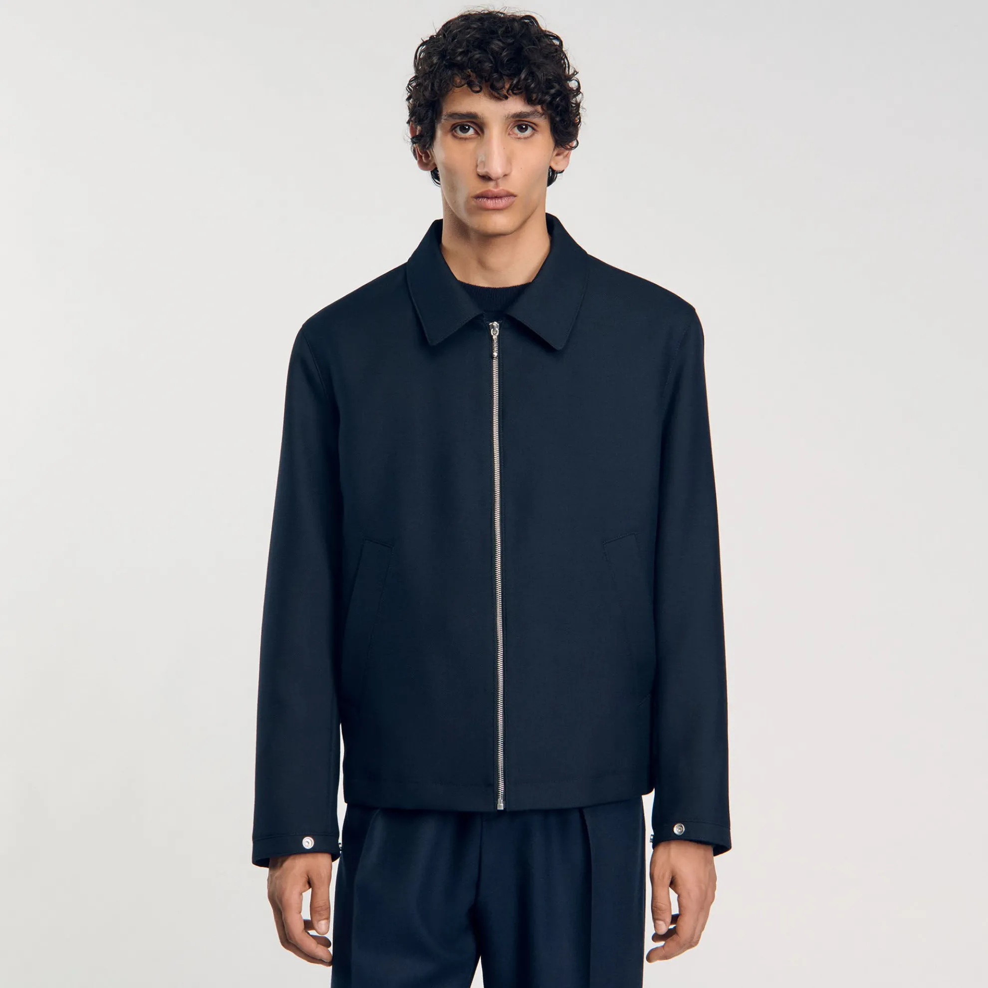 Jack met overhemdkraag, lange mouwen en ritssluiting.