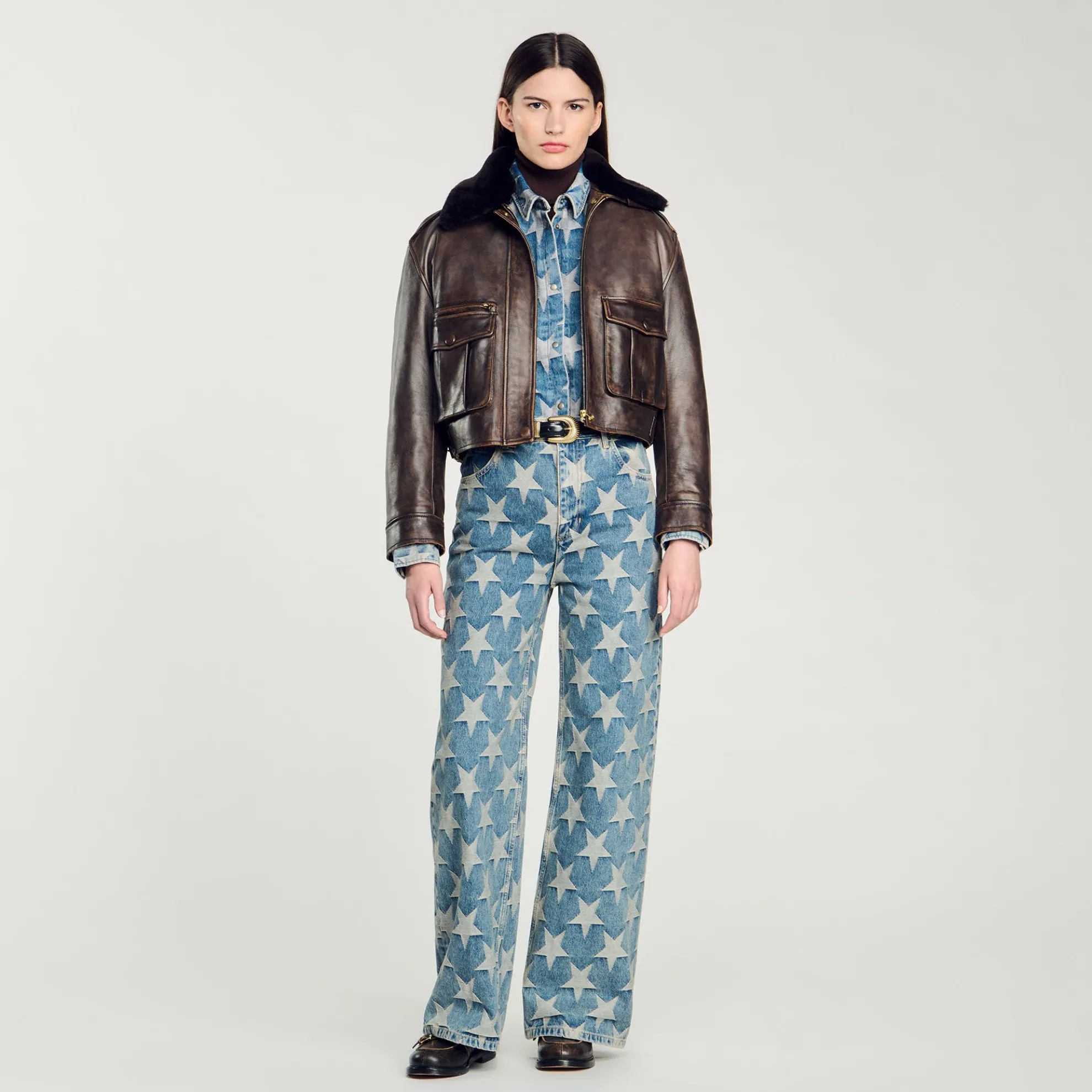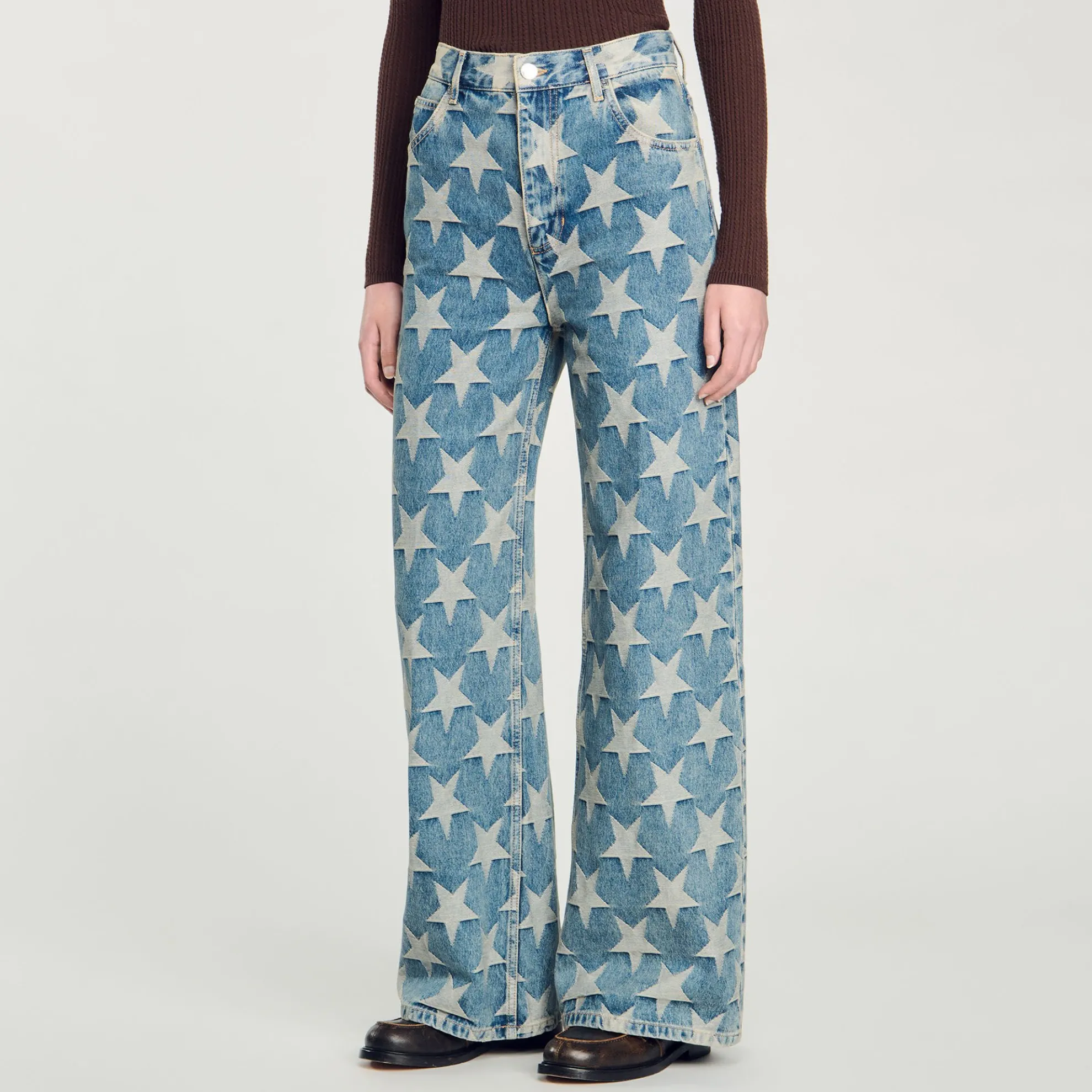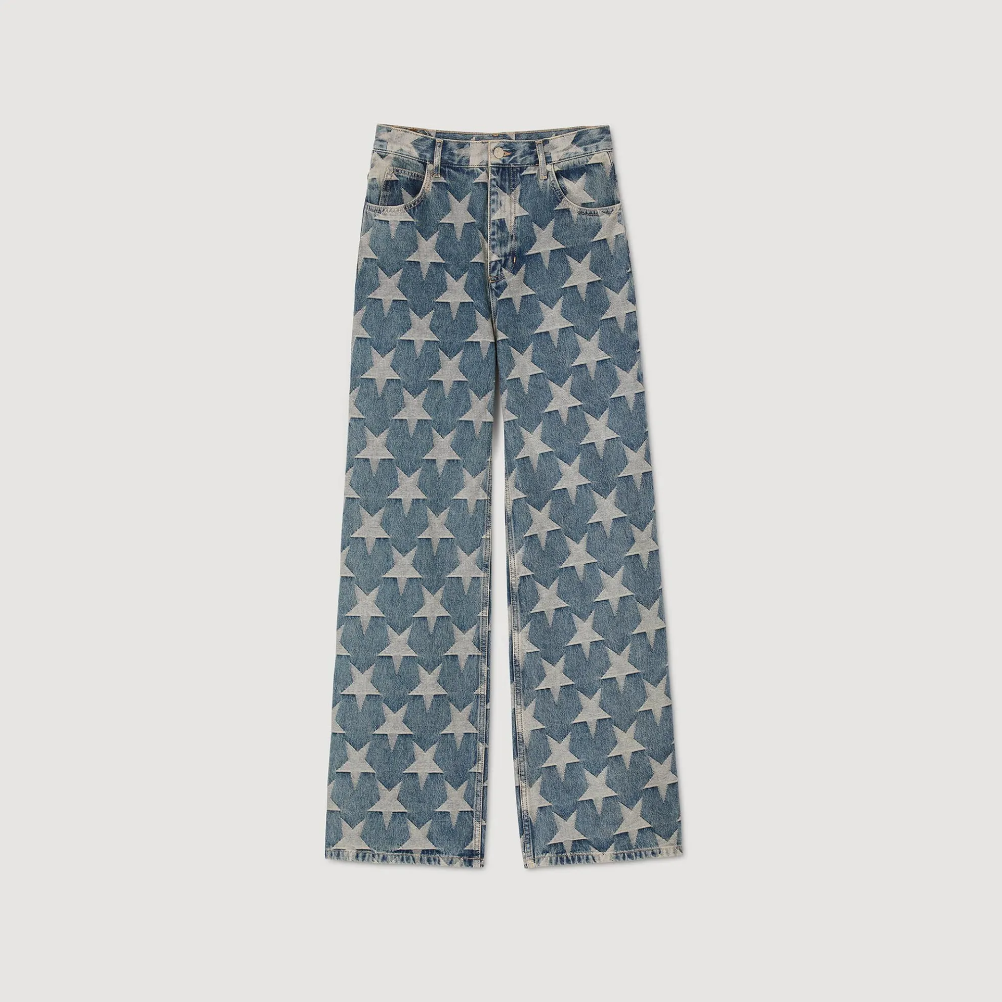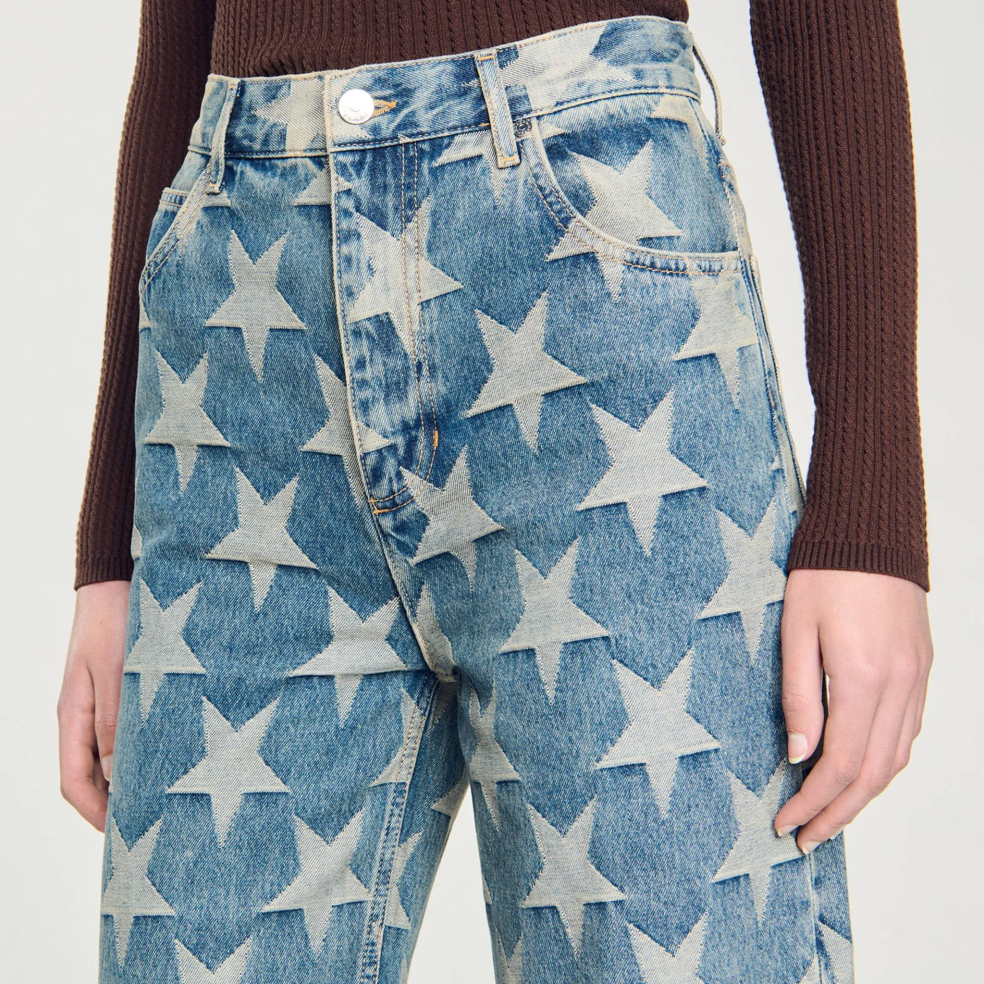 Straight fit jeans met verwassen sterren jacquard, 5 zakken en riemlussen.