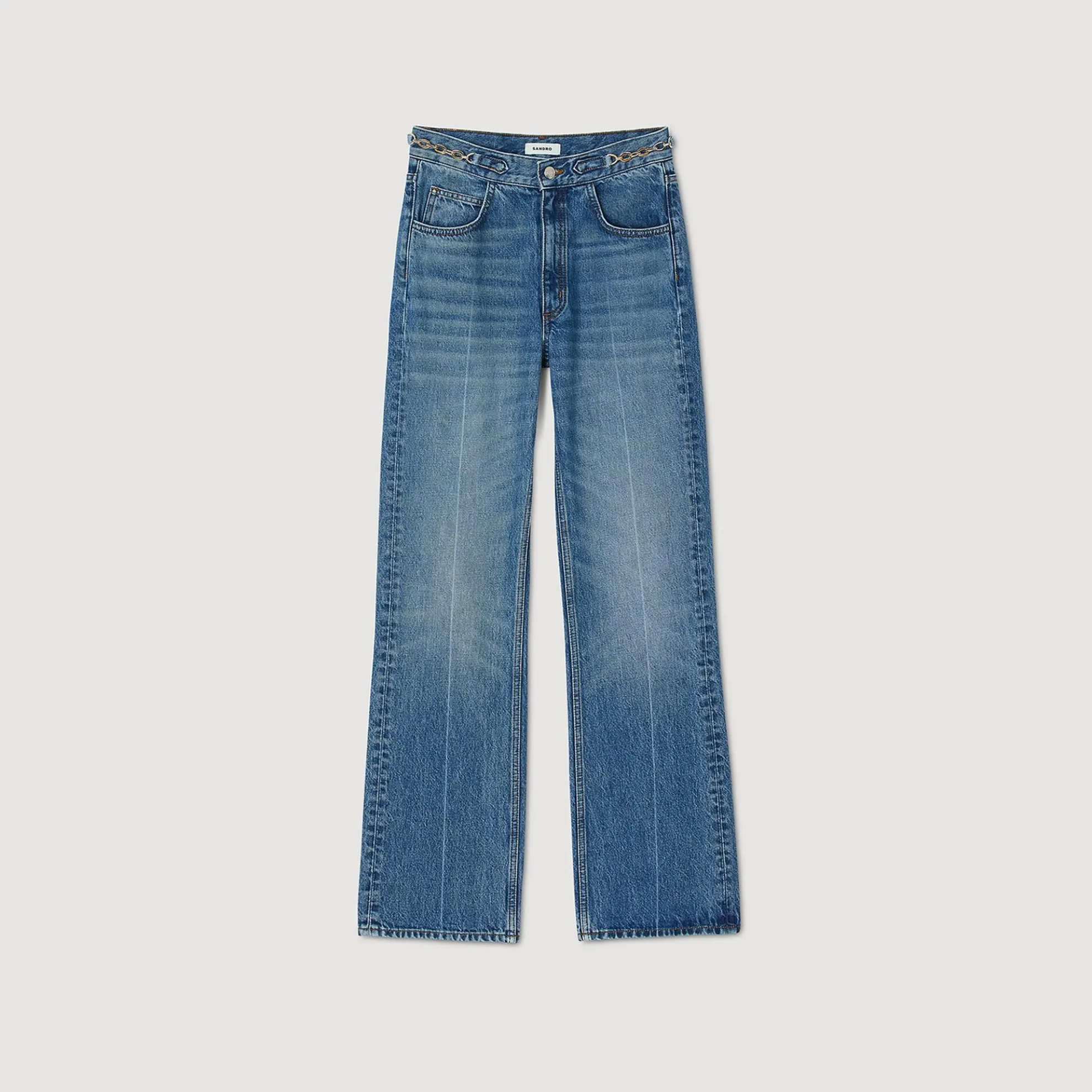 Wijdvallende jeans van verwassen denim met vijf zakken, riemlussen en kettingdetails aan de zijkanten.