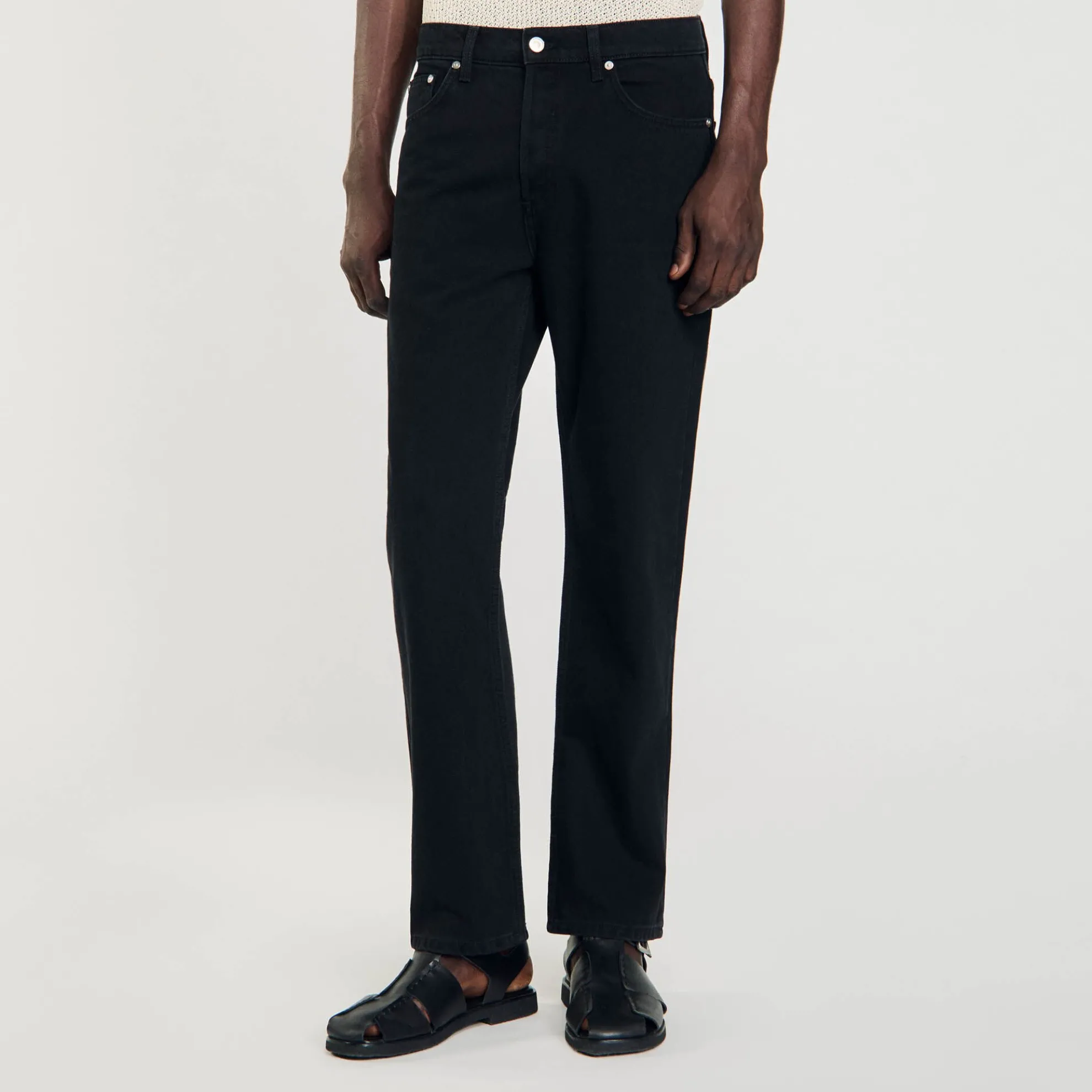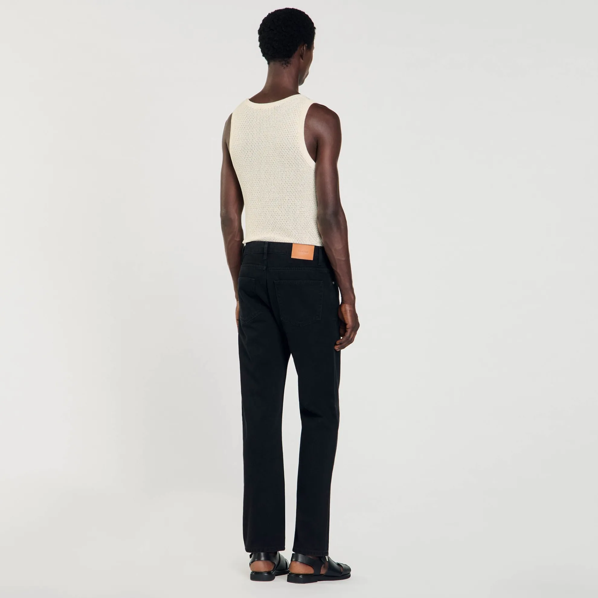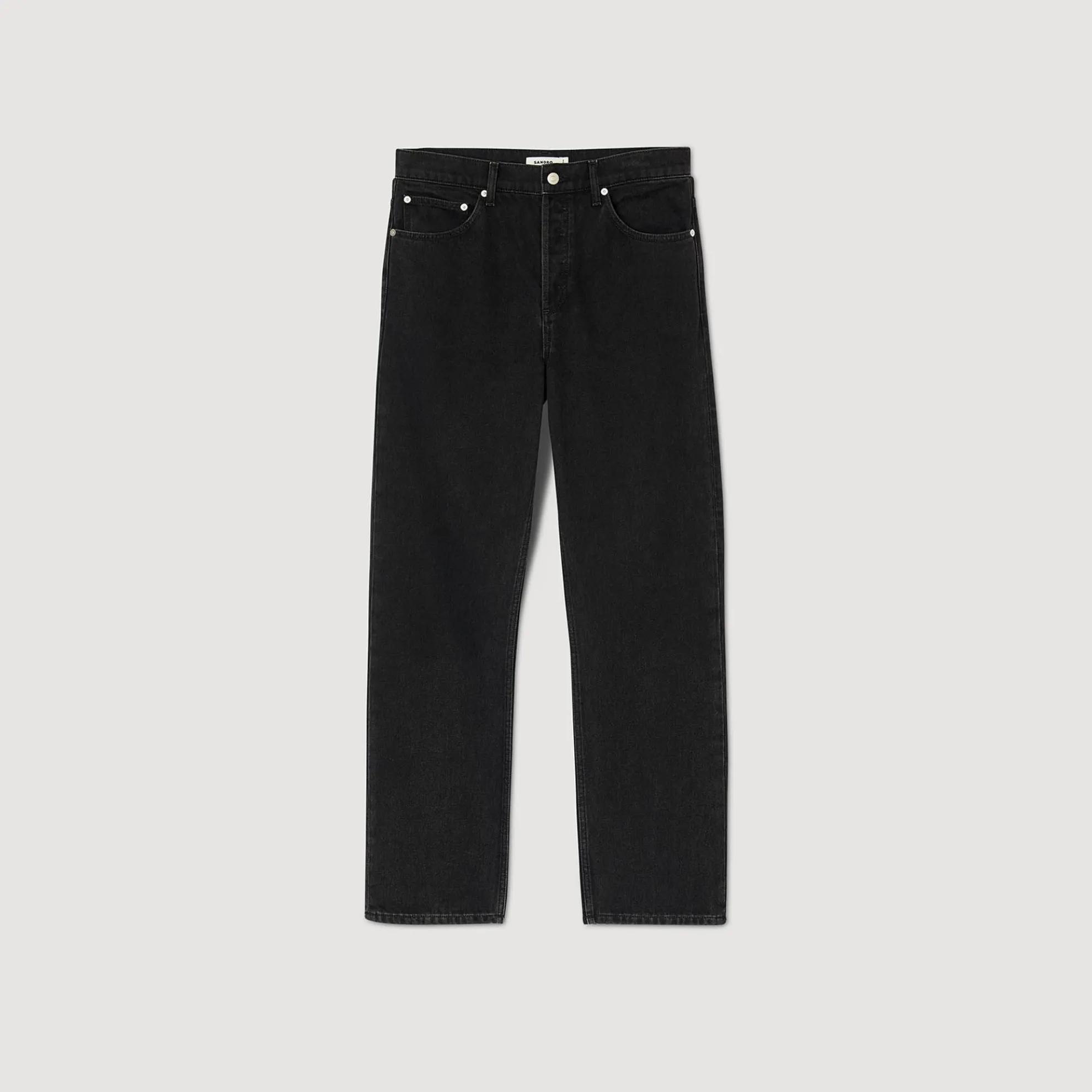 Jeans straight fit met vijf zakken en een leren jacron patch op de achterkant.