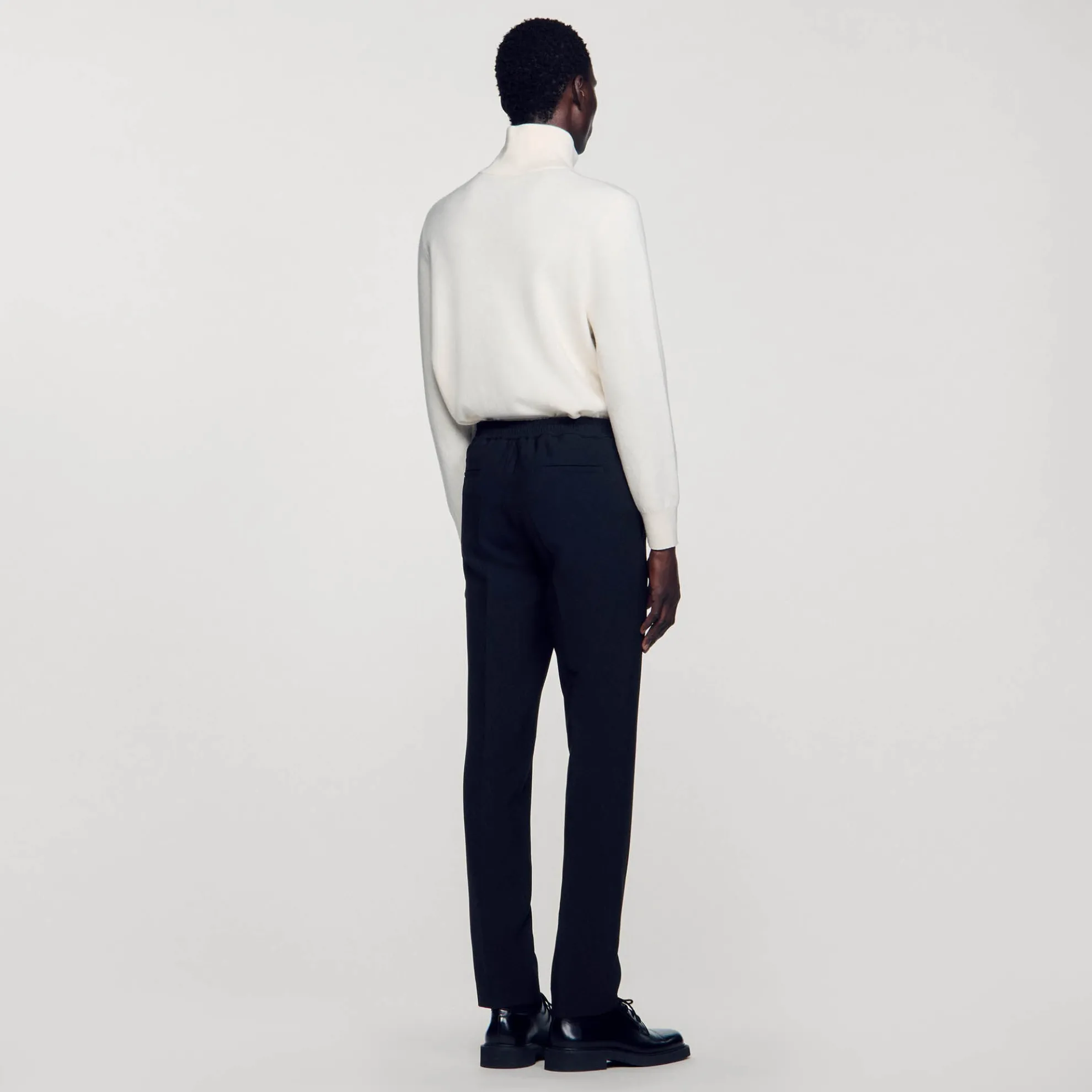 Sandro herenbroek • Jersey broek • Knoopsluiting aan de voorkant • Elastische tailleband aan de achterkant • Schuine zakken aan de voorkant • Twee paspelzakken aan de achterkant