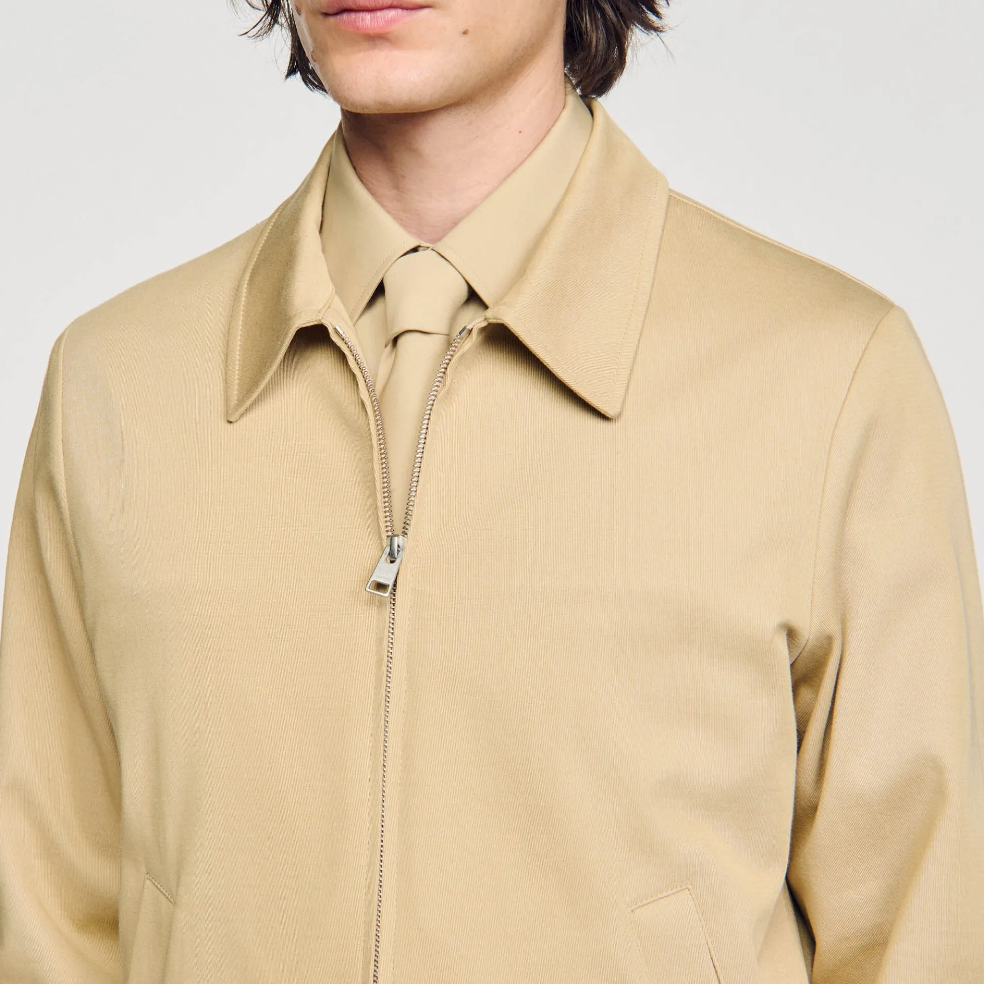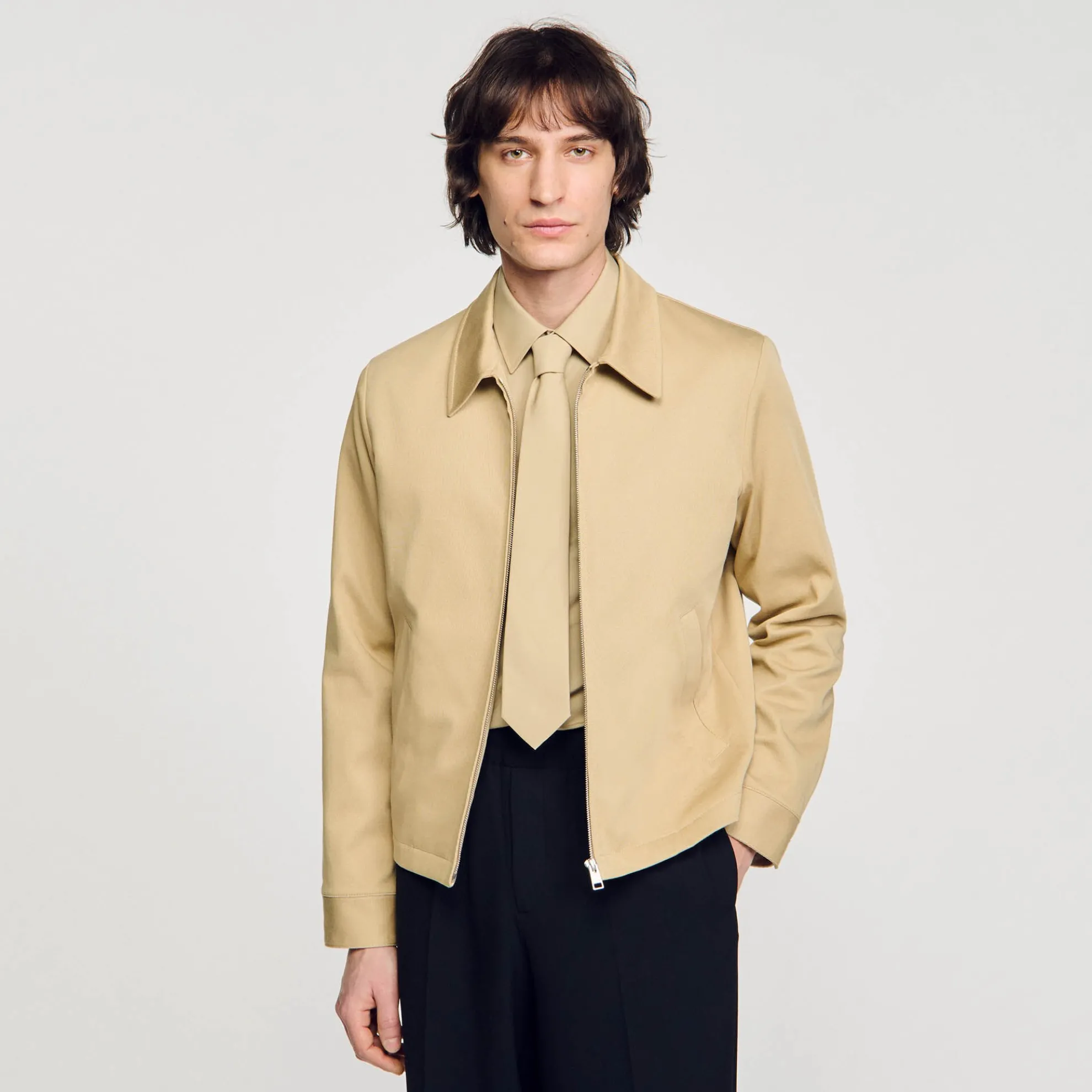 Katoenen jack met een kraag, een ritssluiting, lange mouwen met manchetten met knopen en paspelzakken.