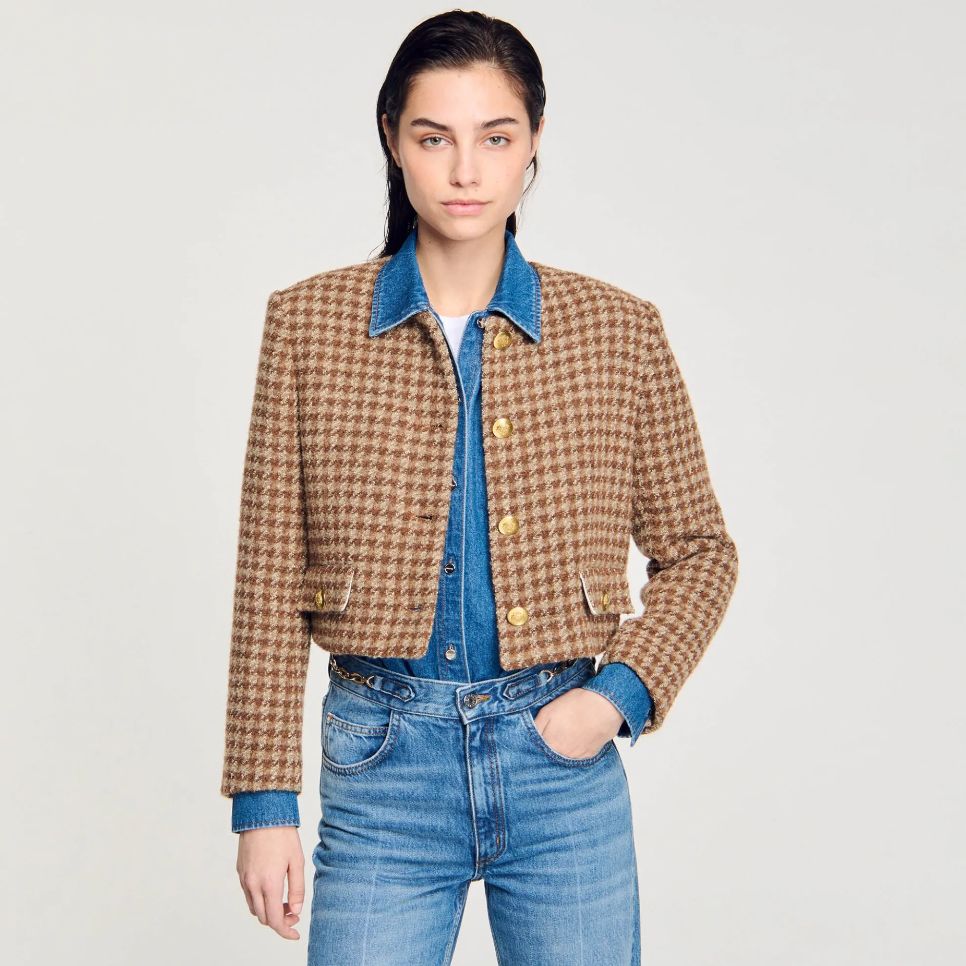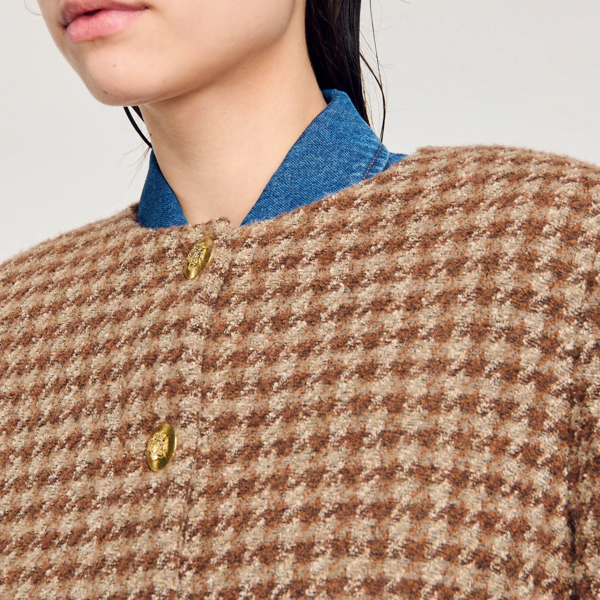 Kort, gestructureerd geruit jasje met sierknoopsluiting, lange mouwen en klepzakken aan de zijkanten.