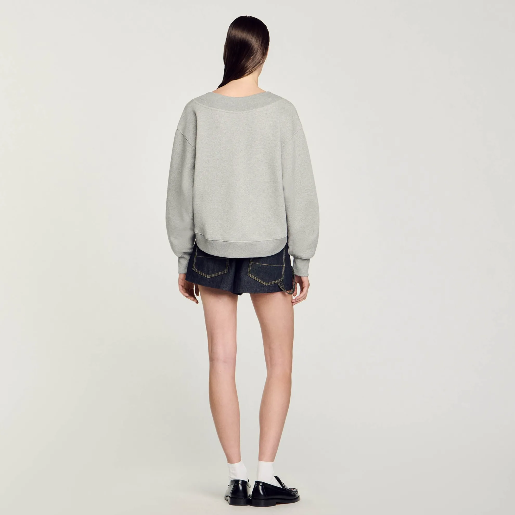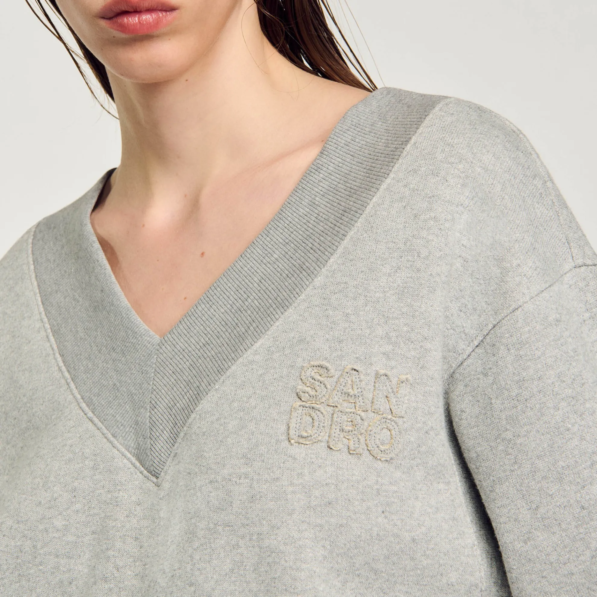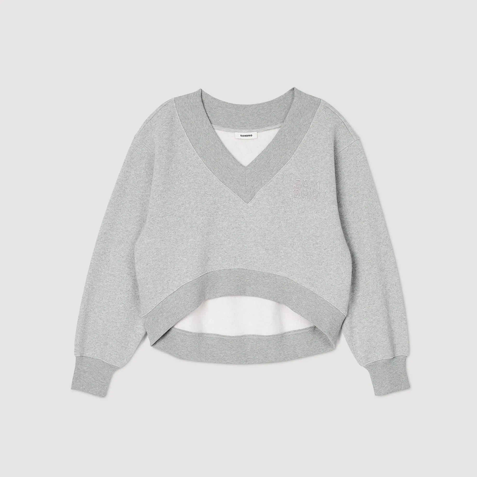 Kort, wijd sweatshirt met diepe V-hals, lange mouwen en geribde zoom.
