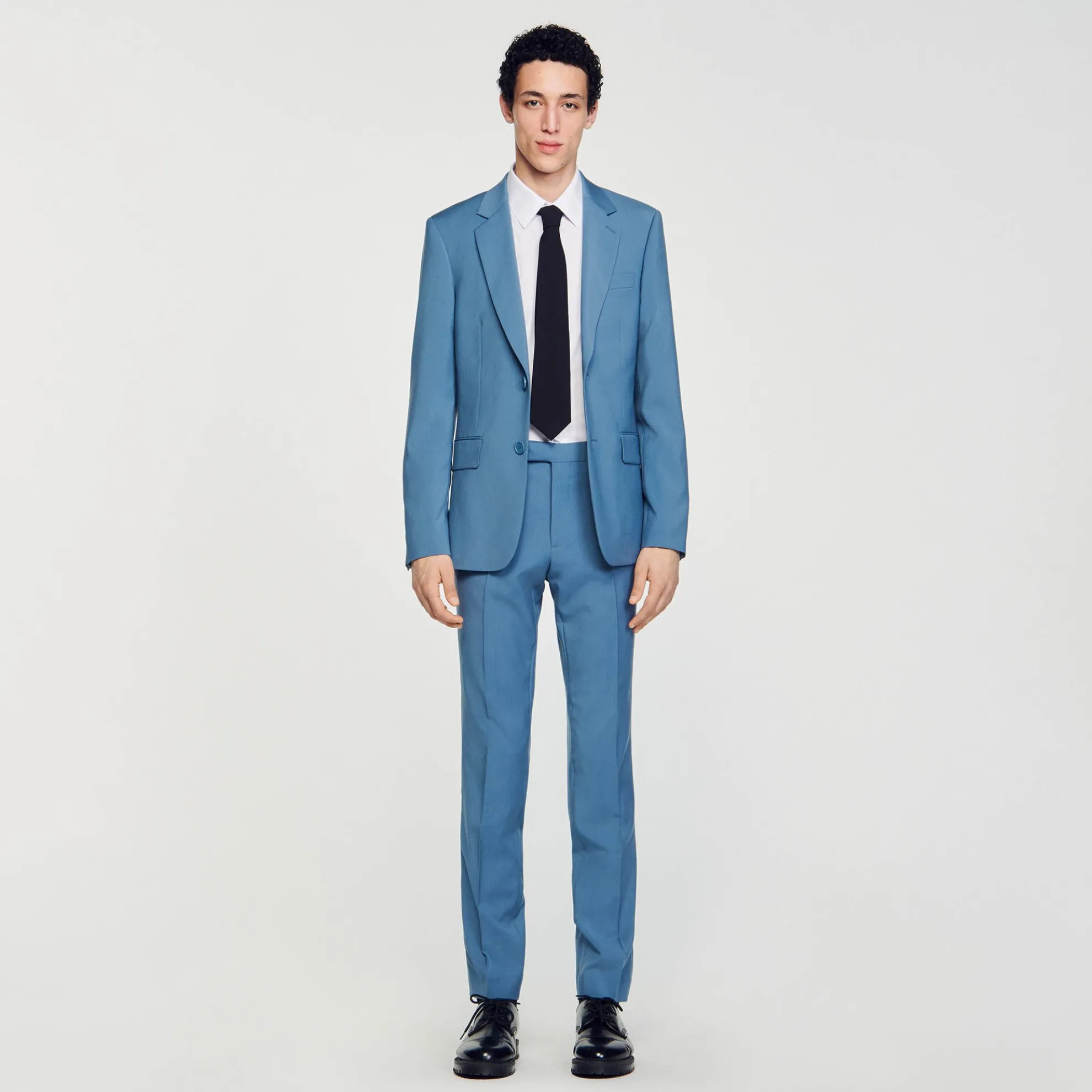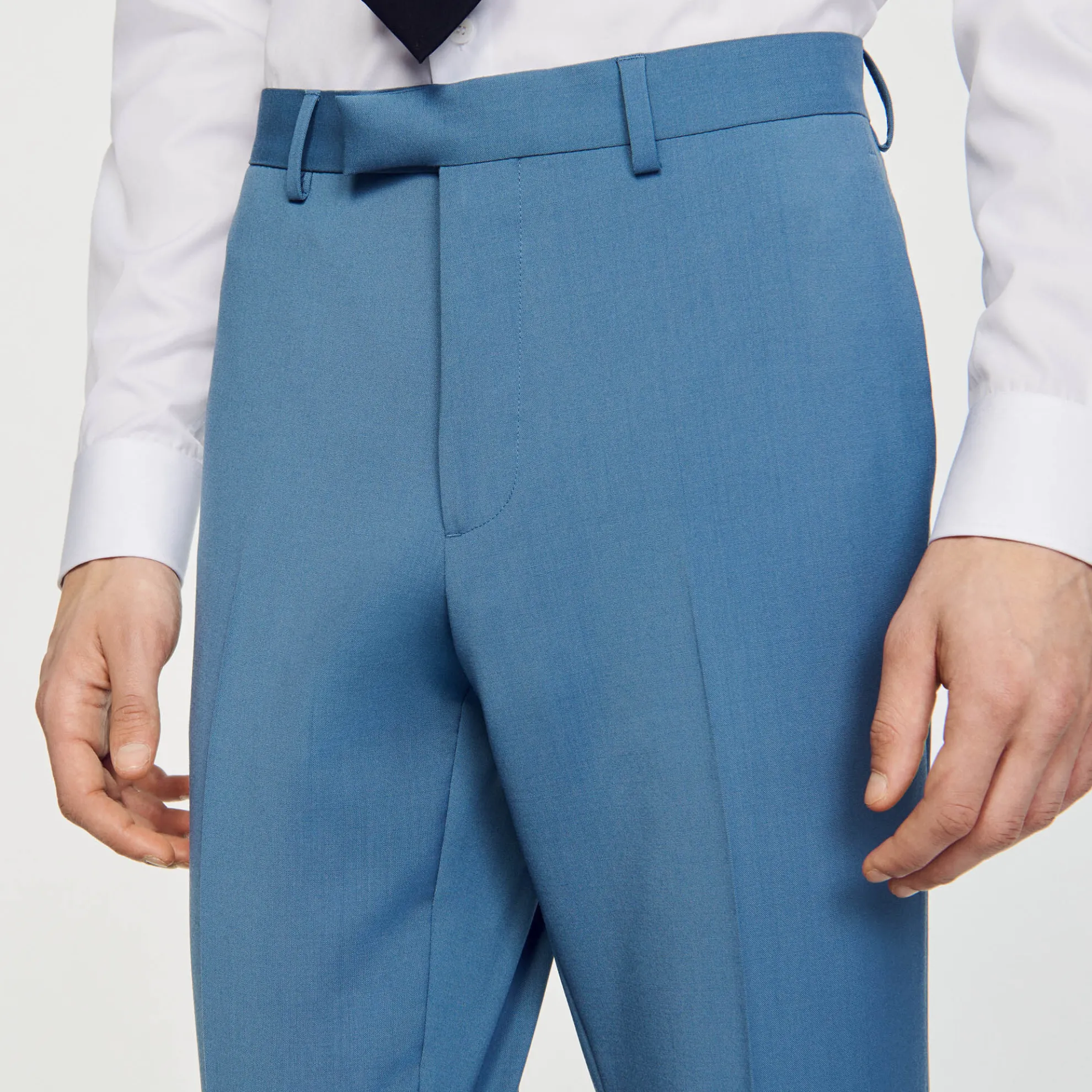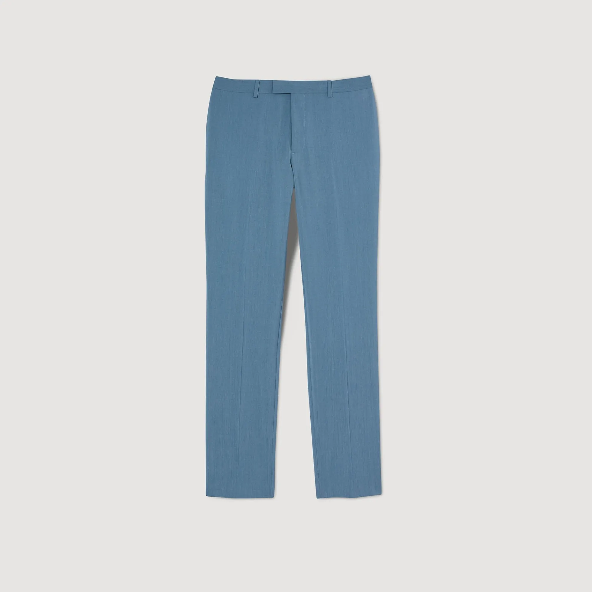 Rechte wollen kostuumbroek met twee voorzakken en twee achterzakken.