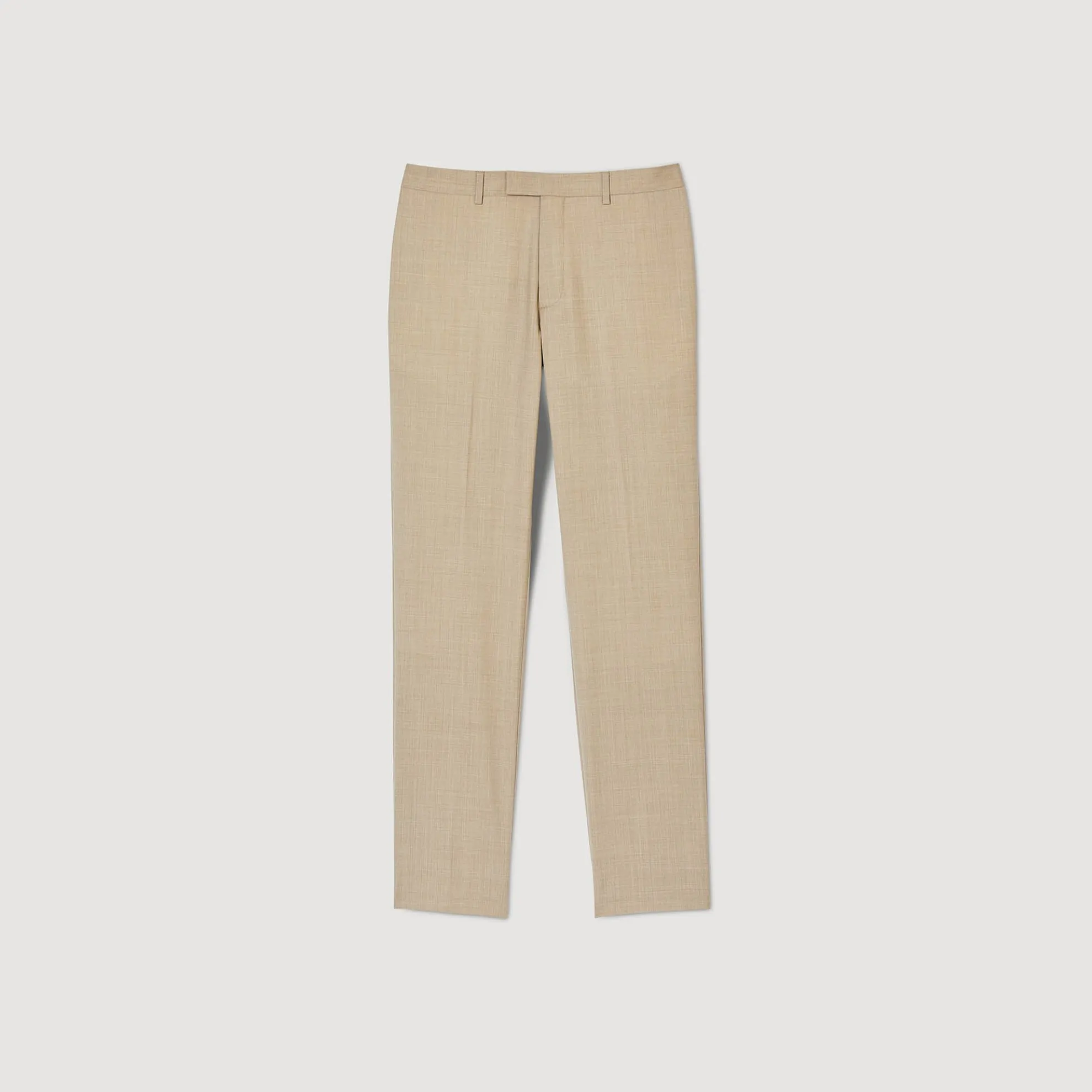 Wollen kostuumbroek met elastische tailleband met verstelkoord.