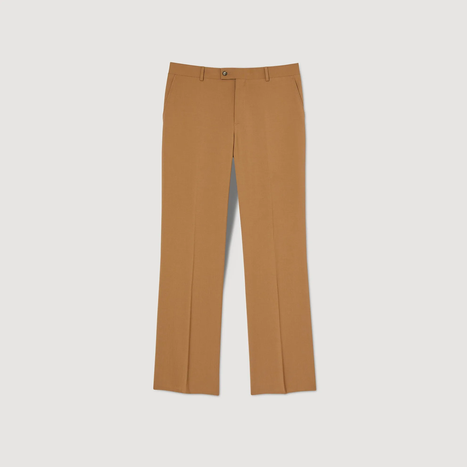 Ruimvallende kostuumbroek met hoge taille en voor- en achterzakken.