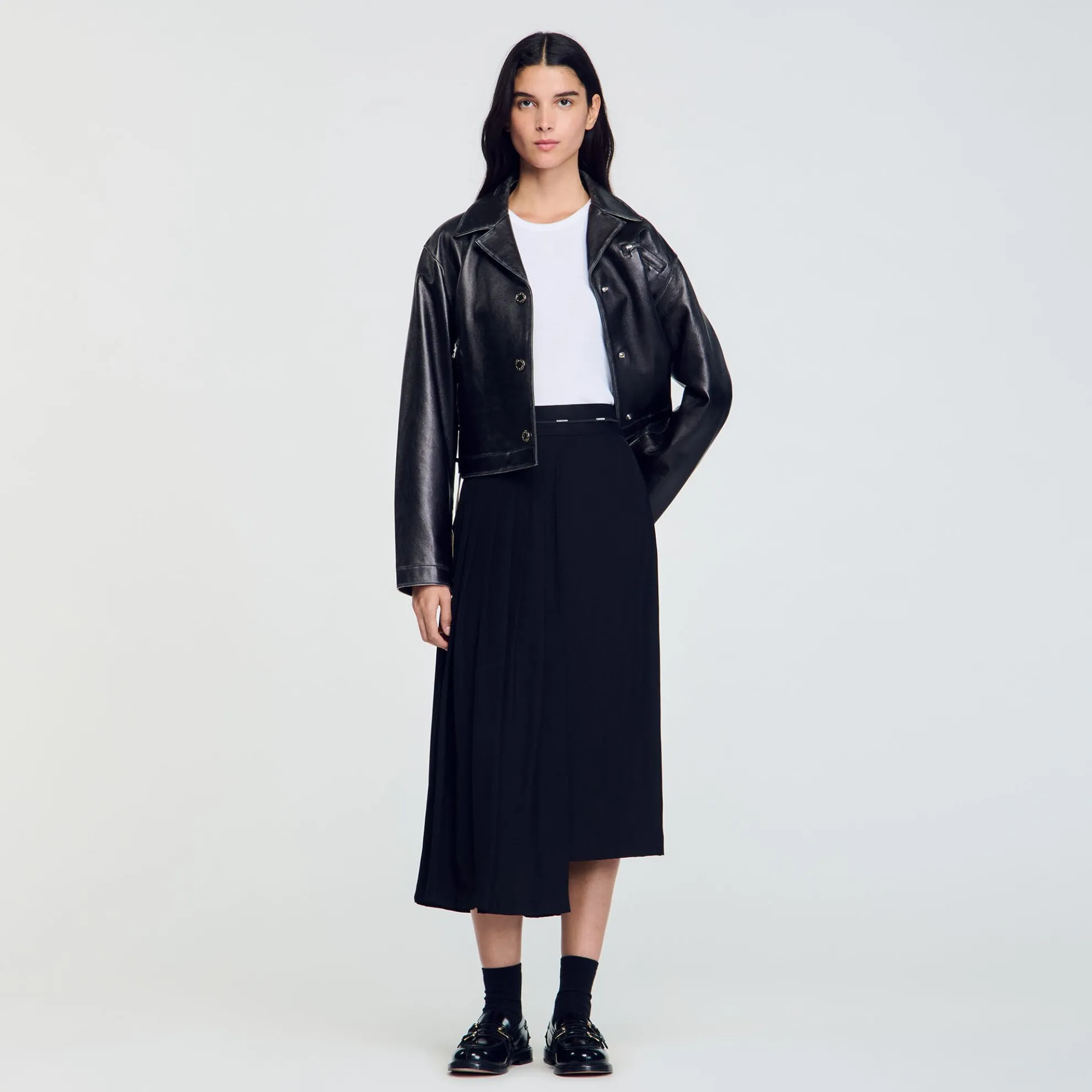 Asymmetrische lange rok met zijsplit en band in de taille met SANDRO galon.